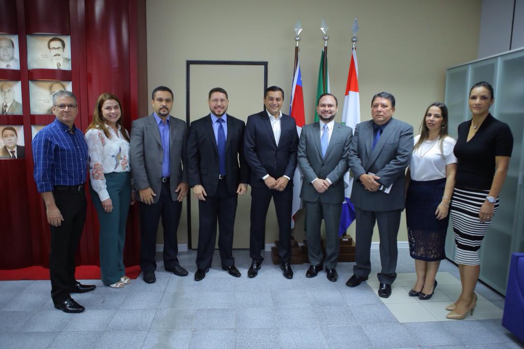 Após a reunião na presidência, Wilson Lima e Carlos Alberto Almeida Filho reuniram-se com os procuradores de contas na sede do MPC e depois, com a condução do coordenador-geral da ECP, conselheiro Ari Moutinho Júnior, conheceram as instalações da Escola de Contas Públicas.