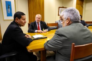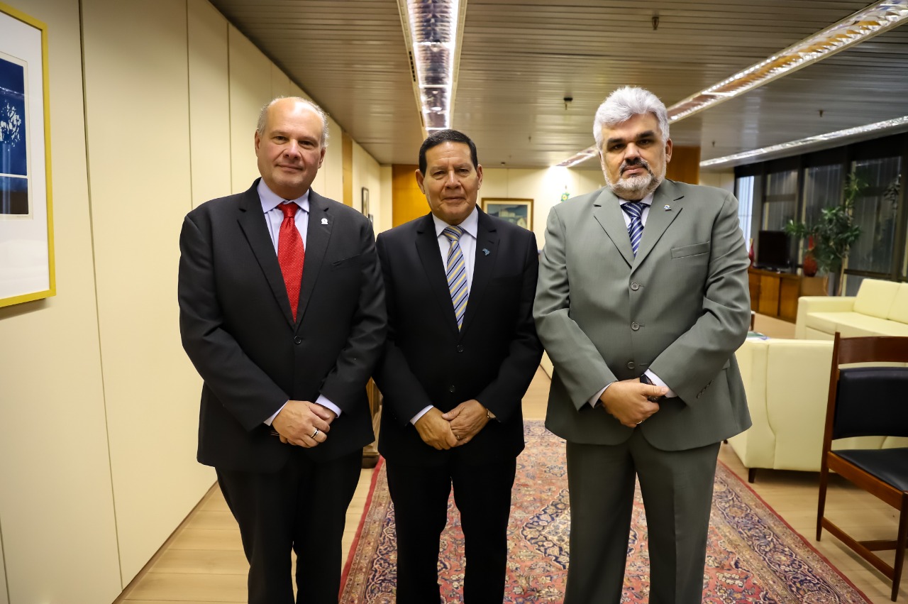 BRASÍLIA (DF) — O vice-presidente da República, Antônio Hamilton Martins Mourão, será uma das autoridades presentes no 2º Simpósio Internacional sobre Gestão Ambiental e Controle de Contas Públicas, que acontece em Manaus nos dias 17, 18 e 19 de outubro deste ano, no Centro de Convenções Vasco Vasques. O convite foi formalizado na tarde desta quinta-feira (11), em reunião reservada no Palácio do Planalto, entre o general, o presidente em exercício do Tribunal de Contas do Amazonas (TCE-AM), conselhe