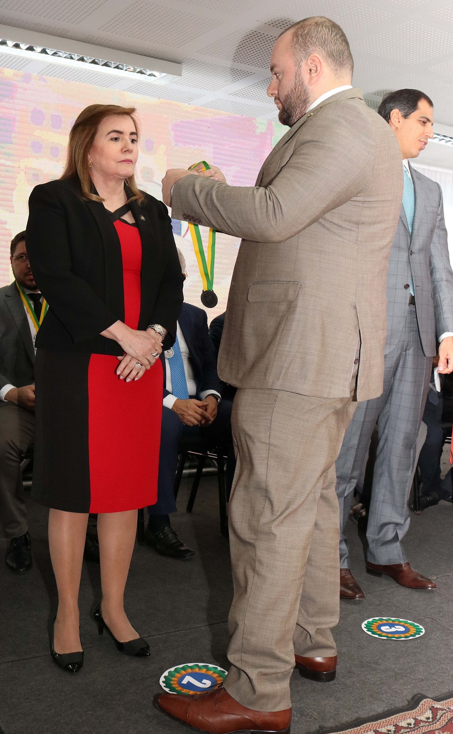 Reconhecimento – A medalha entregue à presidente do TCE é uma forma de reconhecer o trabalho da conselheira Yara Lins dos Santos à frente da Corte de Contas ao proporcionar mais transparência às ações do TCE, a modernização dos sistemas com redução de custos e eficiência no julgamento das contas públicas e aproximação do Tribunal de Contas com a sociedade. O paraninfo que entregou a medalha à conselheira foi o deputado estadual Fausto Júnior.