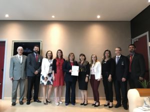 “Encontrei um Tribunal de Contas vibrante, que está olhando para o futuro e que cuida das pessoas. Vejo com muita satisfação o que está sendo feito no TCE Amazonas”, ressaltou a presidente da Comissão, conselheira Soraia Victor, ao entregar o certificado de garantia à presidente do TCE-AM. O conselheiro Érico Desterro participou da reunião de entrega do certificado.