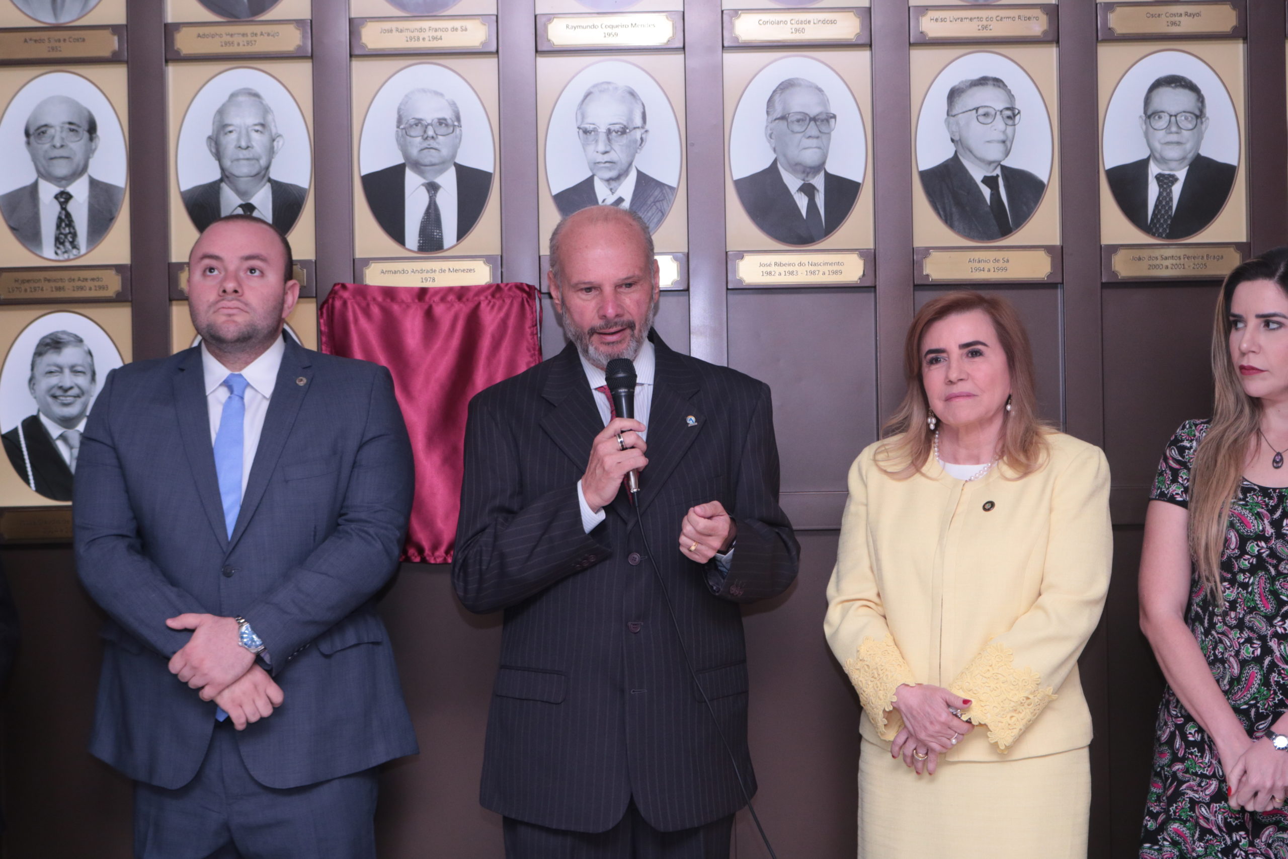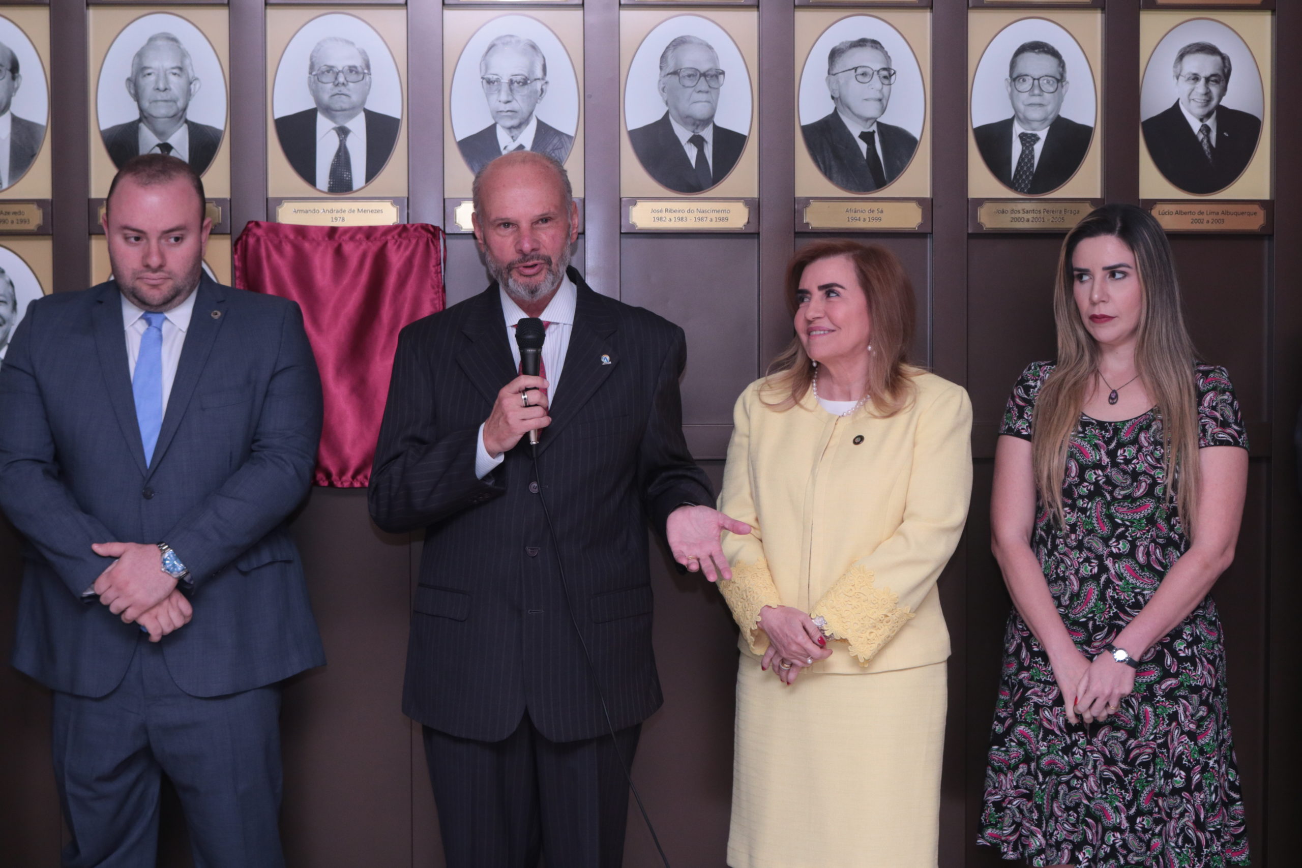 A foto foi descerrada pelo presidente Mario de Mello e pela conselheira Yara Lins dos Santos, seus filhos Fausto Júnior e Tereza Cristina, pelos demais membros do Pleno, e os procuradores João Barroso e Carlos Alberto.