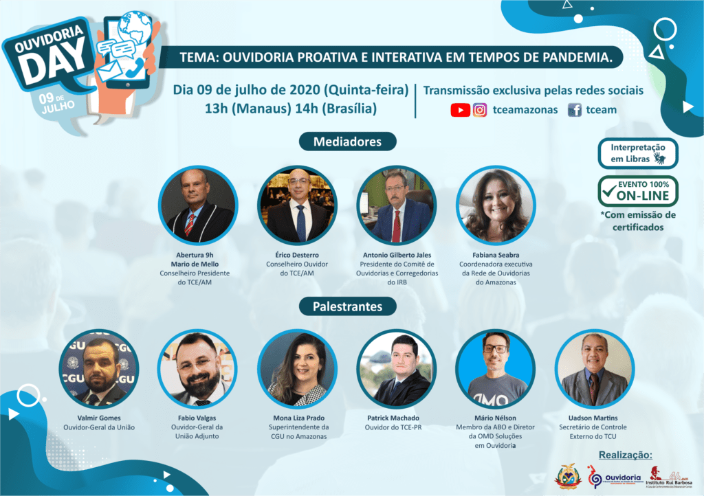 Com o tema “Ouvidoria Proativa e Interativa em tempos de pandemia”, o evento totalmente virtual é uma iniciativa do Instituto Ruy Barbosa (IRB) e coordenado pela Ouvidoria do TCE-AM.