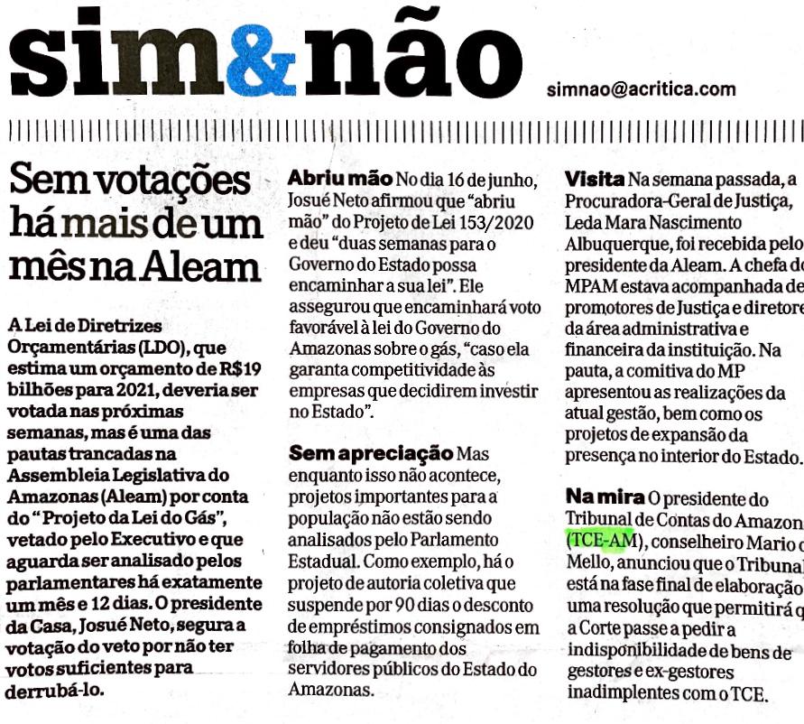 06/07/2020 Diário do Amazonas Zenaldo Mota