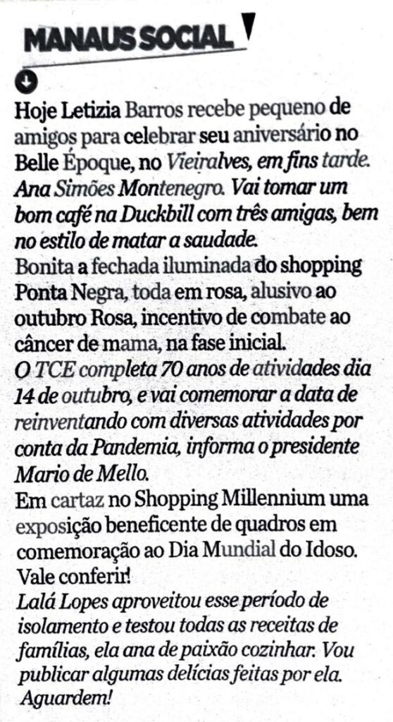 24/10/2020 Jornal do Commercio Aniversário de Manaus