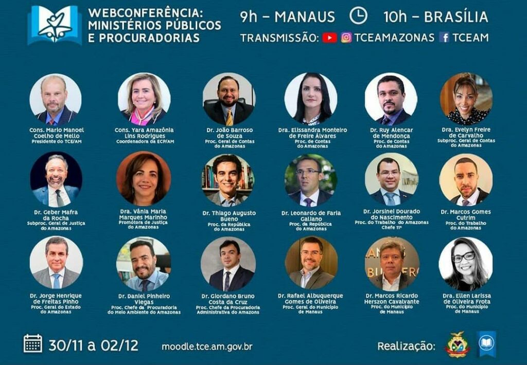 A partir da próxima segunda-feira (30), a Escola de Contas Públicas do Tribunal de Contas do Amazonas (TCE-AM) promoverá a Webconferência: Ministérios Públicos e Procuradorias – evento 100% virtual, com transmissão ao vivo pelas redes sociais (Youtube, Facebook e Instagram) do TCE-AM.