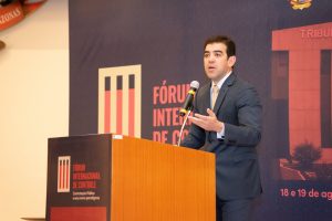 A palestra de abertura do primeiro dia foi realizada pelo presidente em exercício do TCU, ministro Bruno Dantas. O ministro fez uma análise crítica da transformação do controle externo a cargo do TCU, relacionando-o com o paradigma constitucional de 1988.