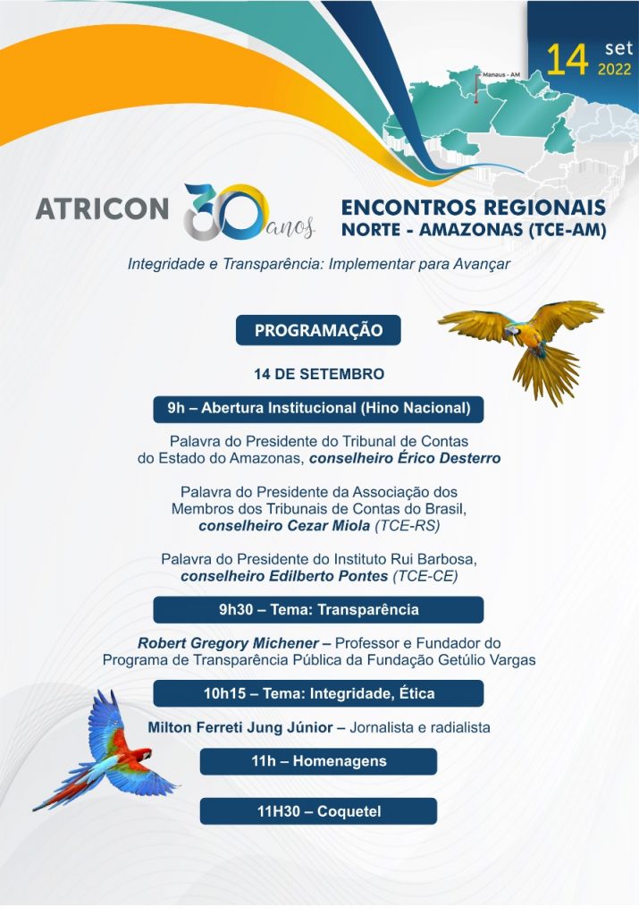 “Os encontros regionais iniciaram em Brasília e irão ser realizados em todas as regiões do país, sendo Manaus a sede da região norte. Esse evento proporcionará, além de discussões conforme as necessidades locais, mas também instigar os servidores dos Tribunais de Contas quanto o controle externo, controle social e muito mais.”, declarou o presidente da Atricon, Cezar Miola.