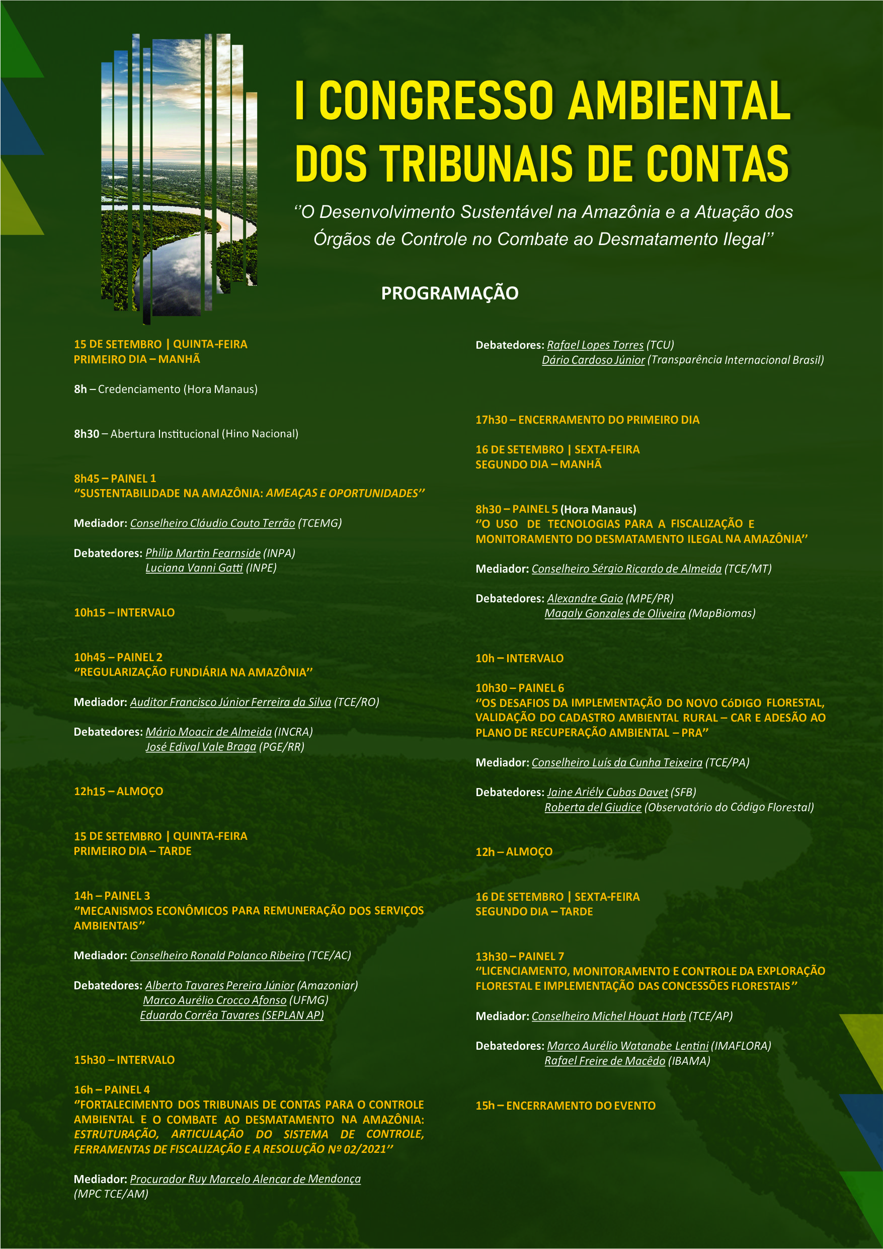 Para esta edição, a programação contará com 14 debatedores e sete representantes de diversos tribunais de contas do Brasil que estarão divididos em painéis direcionados para o público-alvo, formado especialmente por servidores do TCE-AM, jurisdicionados e sociedade civil.