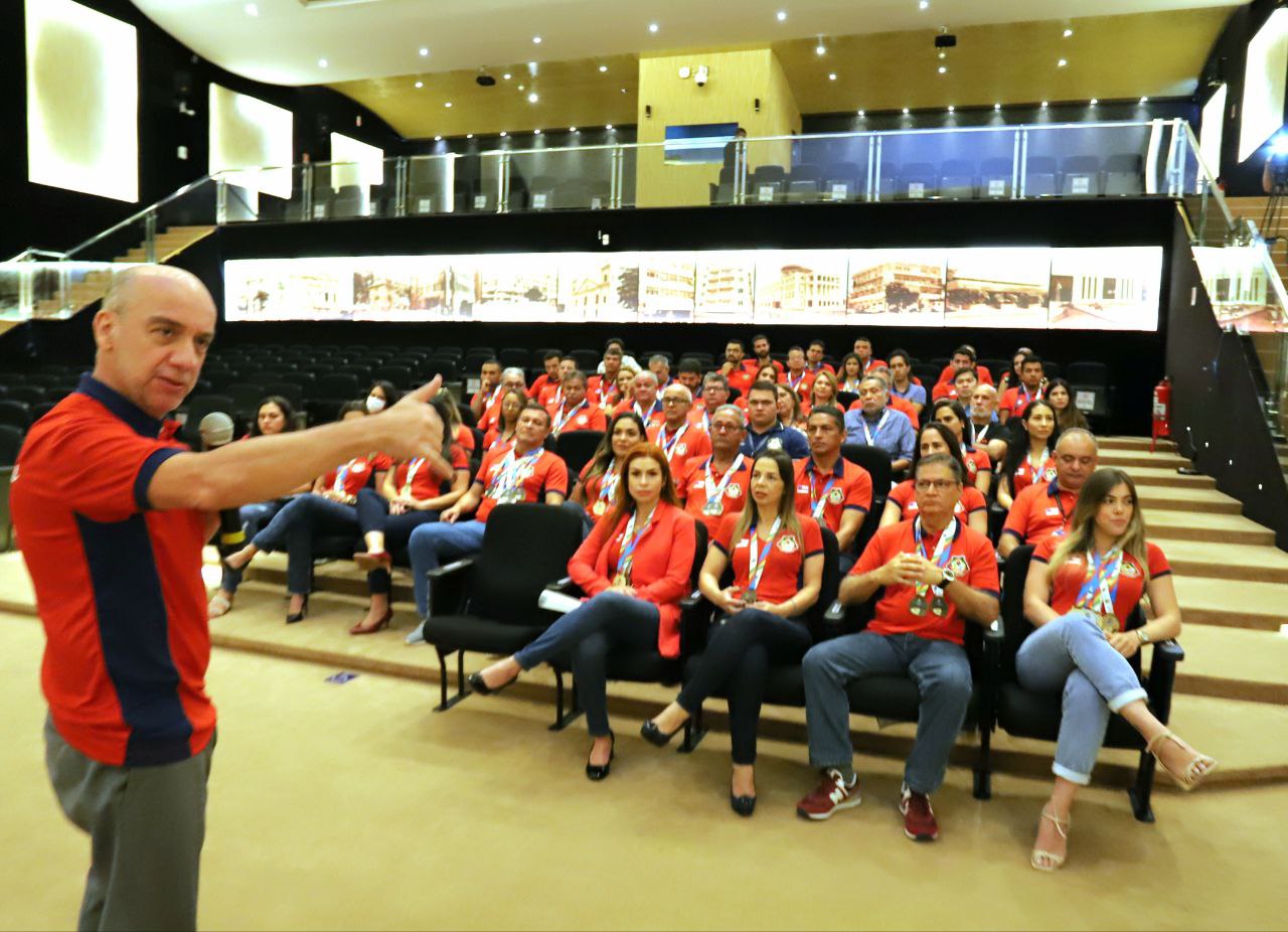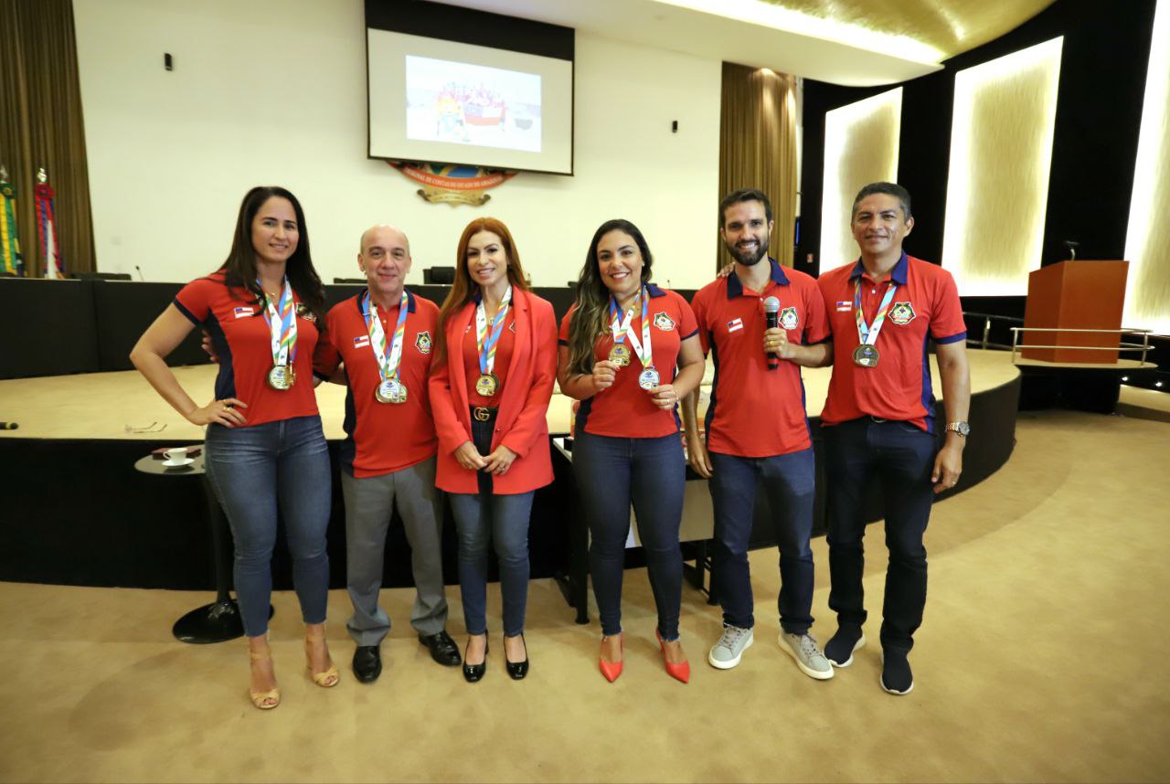 Os servidores-atletas que representaram o Tribunal de Contas do Amazonas (TCE-AM) durante a Olimpíadas dos Tribunais de Contas (OTC), realizada de 22 a 27 de agosto, em Natal (RN), foram homenageados em solenidade especial conduzida pelo conselheiro-presidente Érico Desterro, na manhã desta segunda-feira (12), no auditório da Corte de Contas amazonense.
