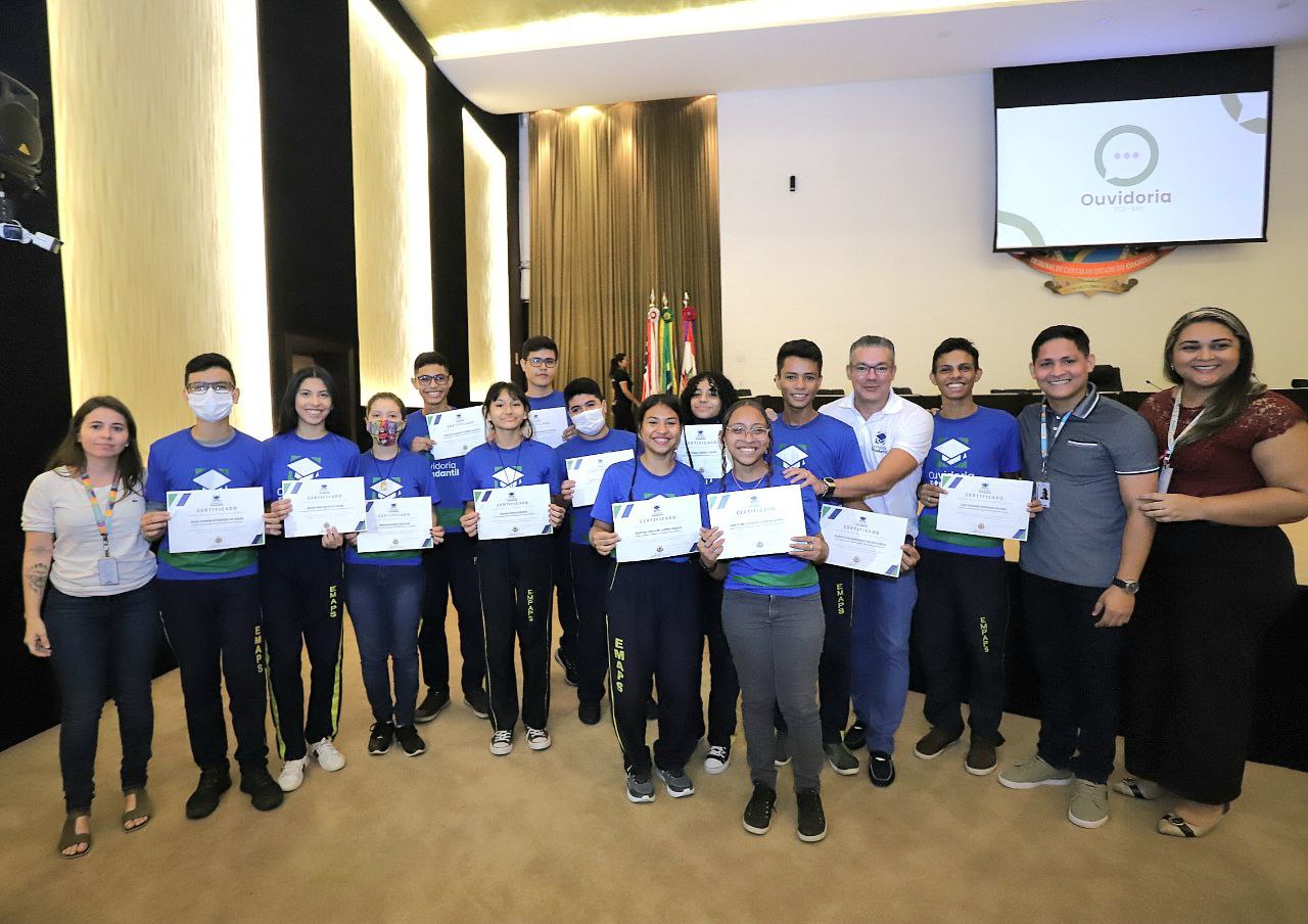Para coroar a maratona de aprendizado em cidadania e ações controle social realizadas durante todo o ano letivo de 2022 no âmbito do programa “Ouvidoria Estudantil”, ao menos 110 estudantes de nove escolas da rede municipal de ensino de Manaus receberam, na manhã desta quarta-feira (19), no Tribunal de Contas do Amazonas (TCE-AM), certificados que conferem a eles o título de ‘aluno ouvidor’ de suas respectivas instituições de ensino.