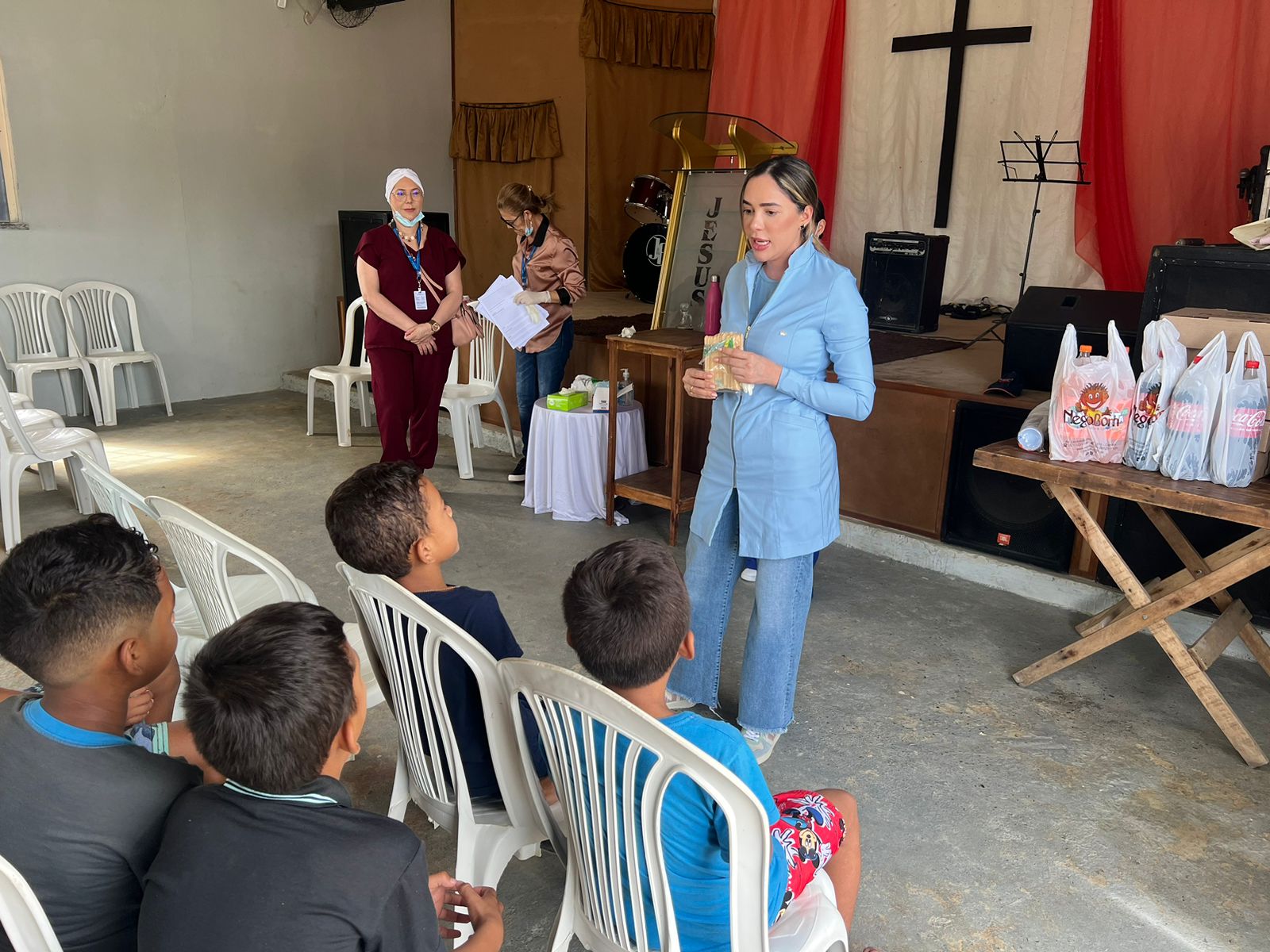 No primeiro dia de programação, todas as crianças participam de uma palestra sobre prevenção e cuidados bucais com a chefe do Deodont, Ádria Gomes. Após, a triagem para selecionar os casos mais urgentes é estabelecida.