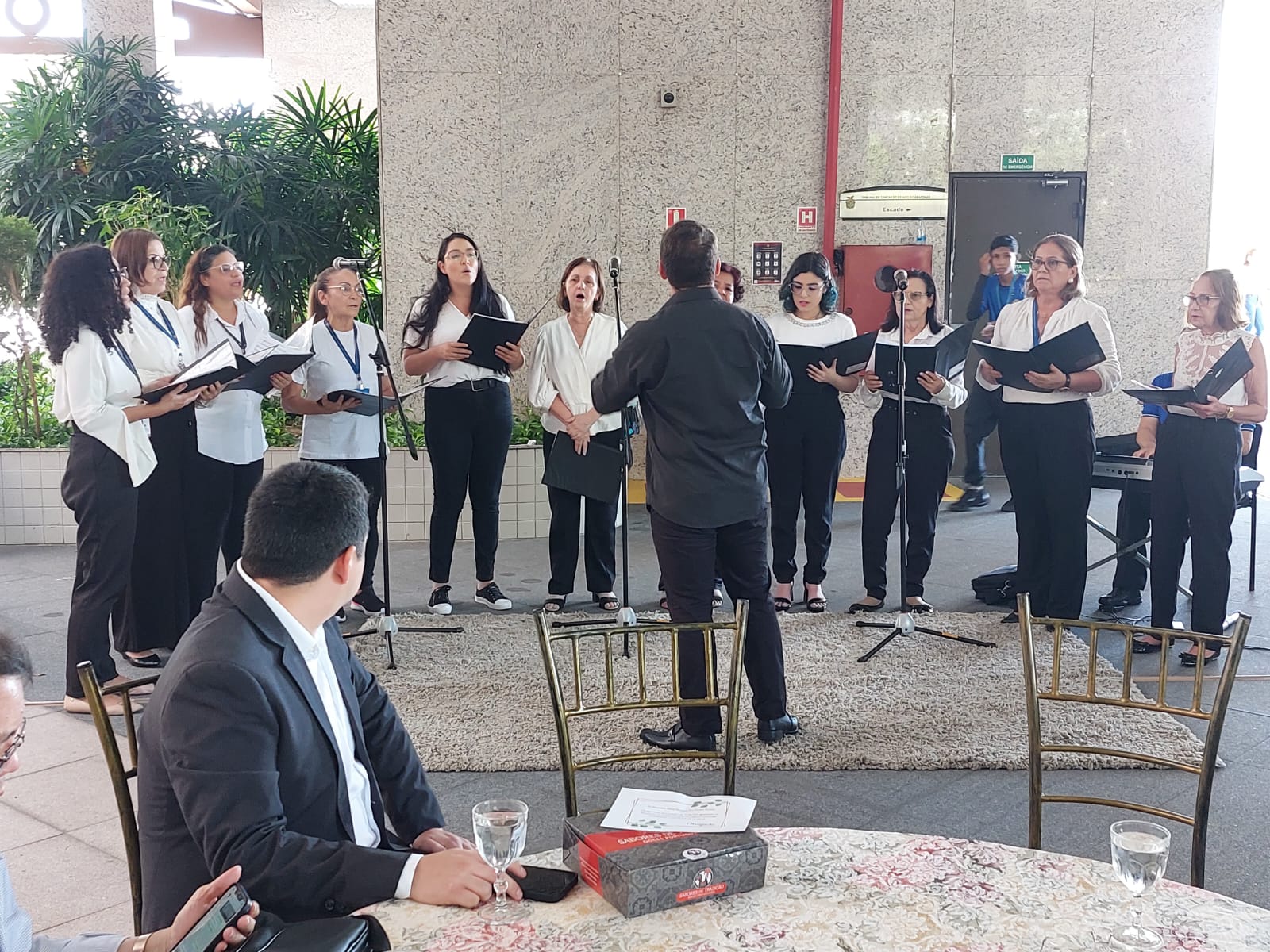 Ainda durante o café de confraternização, o Coral do TCE-AM e o maestro Timóteo, acompanhado de Tito Esteves e Elis Esteves, se apresentaram. Além das apresentações musicais, foi realizada uma palestra sobre longevidade, ministrada pela médica integrativa e ginecologista obstétrica, Cristiane Valente.