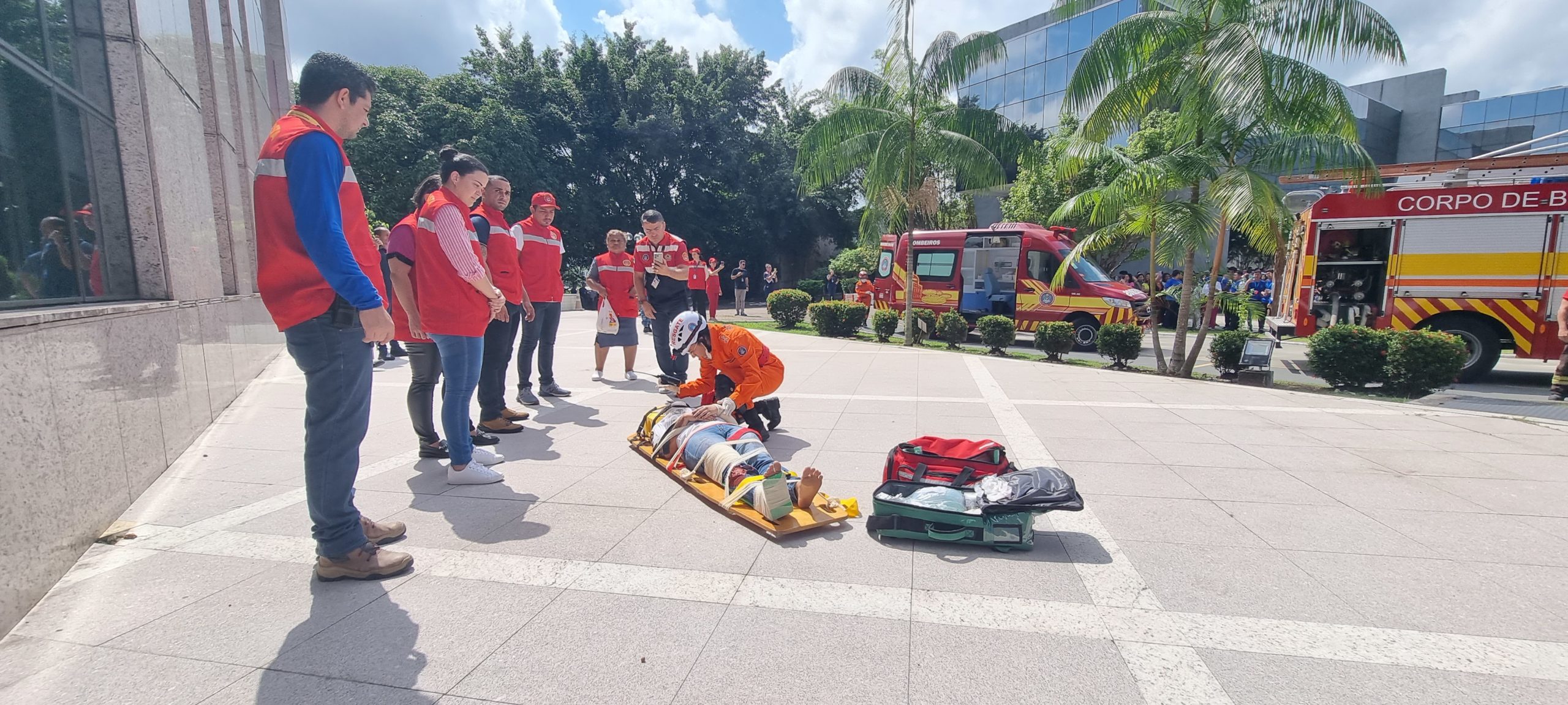 Com cenários de risco e até a simulação de um servidor acidentado no sinistro, a atividade visa capacitar para uma ação eficiente em situações reais de emergência para que técnicas e recomendações sejam postas em prática pelos servidores para o aprimoramento da segurança de todos no órgão.