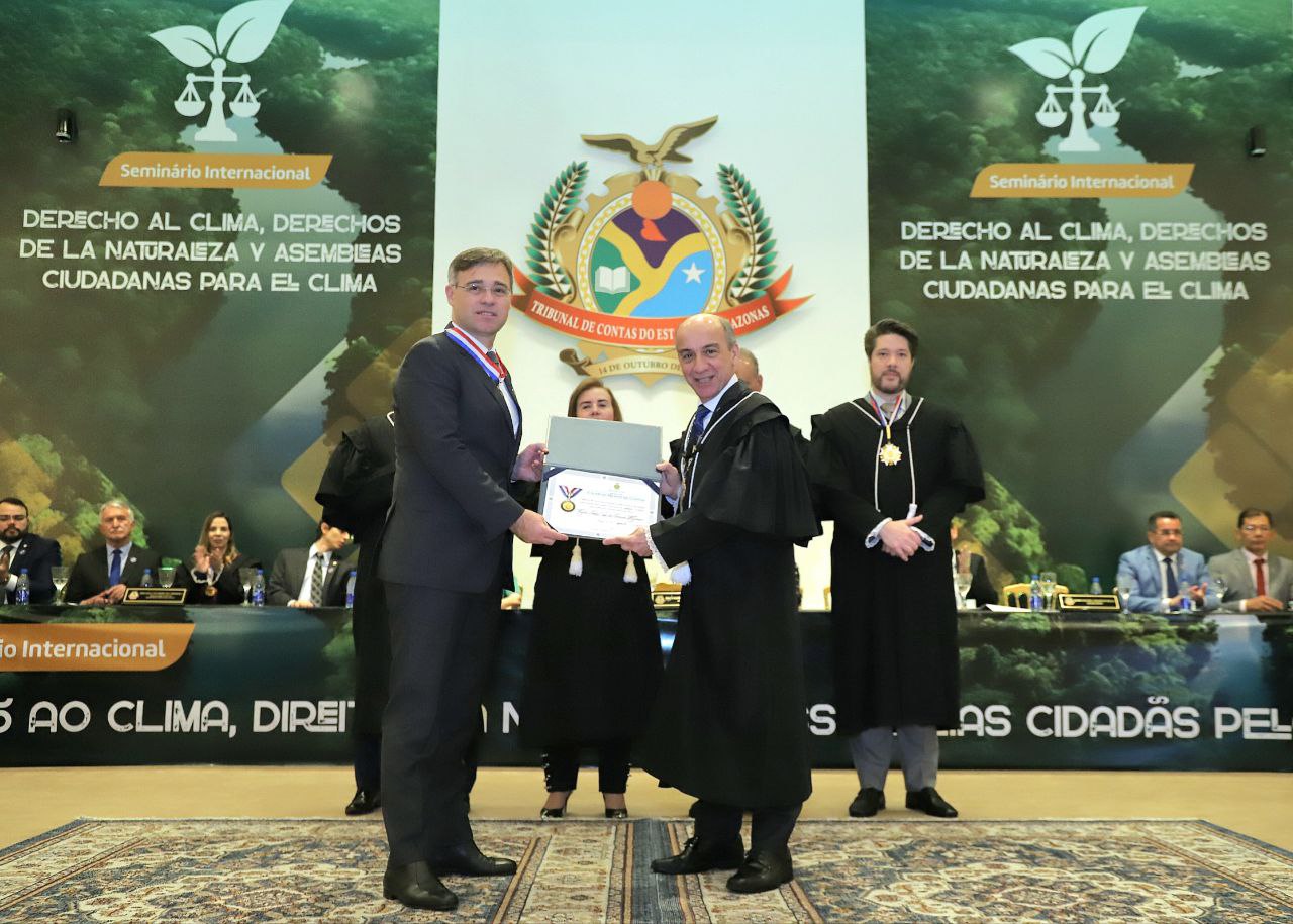 Durante o seminário, os ministros foram condecorados pelo TCE-AM e pela Assembleia Legislativa do Amazonas (Aleam). A Corte de Contas amazonense entregou ao ministro André Mendonça o Colar do Mérito de Contas, homenagem tradicionalmente concedida a membros públicos e da sociedade civil que ganharam notoriedade no serviço à sociedade amazonense.