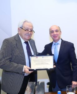 Recebendo homenagens de diversas autoridades que estiveram compondo a mesa de honra, o Prof. Dr. Edmir Netto de Araújo agradeceu pelas palavras discorridas por seus admiradores e ex-alunos, rememorando sua trajetória e vislumbrando a melhoria contínua das instituições públicas.