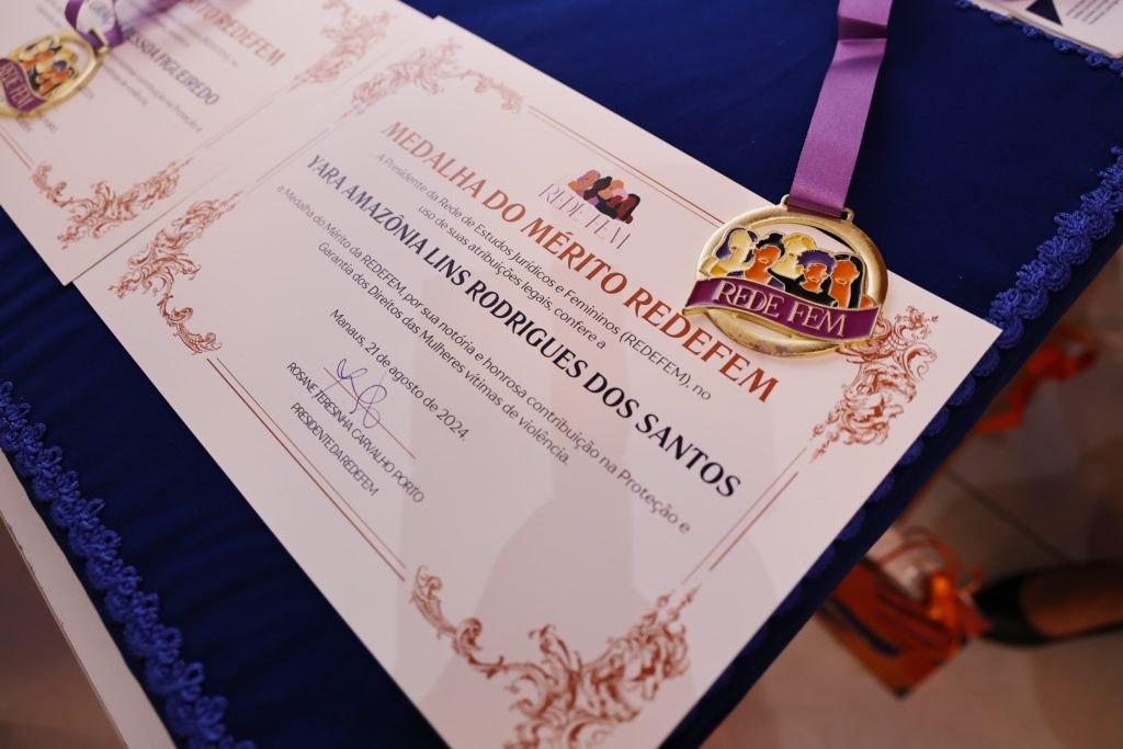 A presidente do Tribunal de Contas do Amazonas (TCE-AM), conselheira Yara Amazônia Lins, foi homenageada nesta quarta-feira (21) durante o 1º Encontro Nacional Ouvir e Enfrentar – Não se cale, fale! (ENOE), em Manaus. A conselheira recebeu a Medalha de Mérito REDEFEM, em reconhecimento à sua contribuição no enfrentamento à violência contra a mulher.