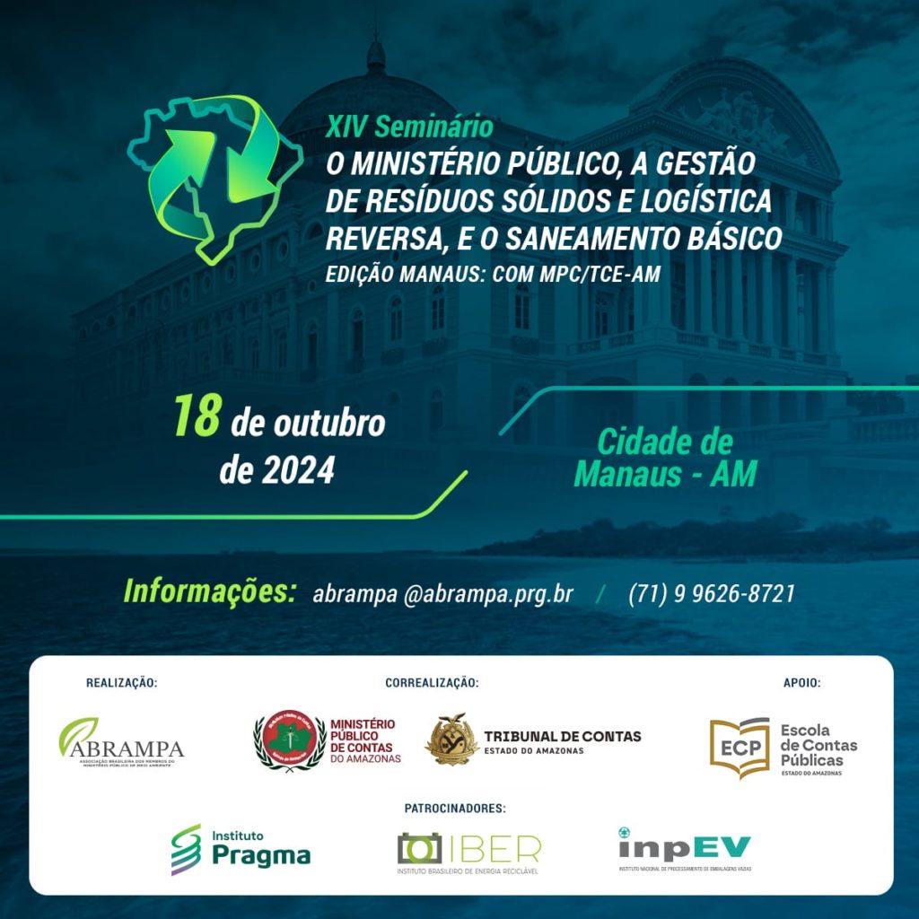 No dia 18 de outubro, o Tribunal de Contas do Amazonas (TCE-AM), por meio do Ministério Público de Contas do Amazonas (MPC-AM) e da Escola de Contas Públicas (ECP), sediará, no Auditório da Corte, o XIV Seminário “O Ministério Público, a Gestão de Resíduos Sólidos, a Logística Reversa e o Saneamento Básico” – edição Manaus. Realizado pela Associação Brasileira dos Membros do Ministério Público de Meio Ambiente (ABRAMPA), o evento promoverá debates sobre gestão de resíduos e sustentabilidade na região.