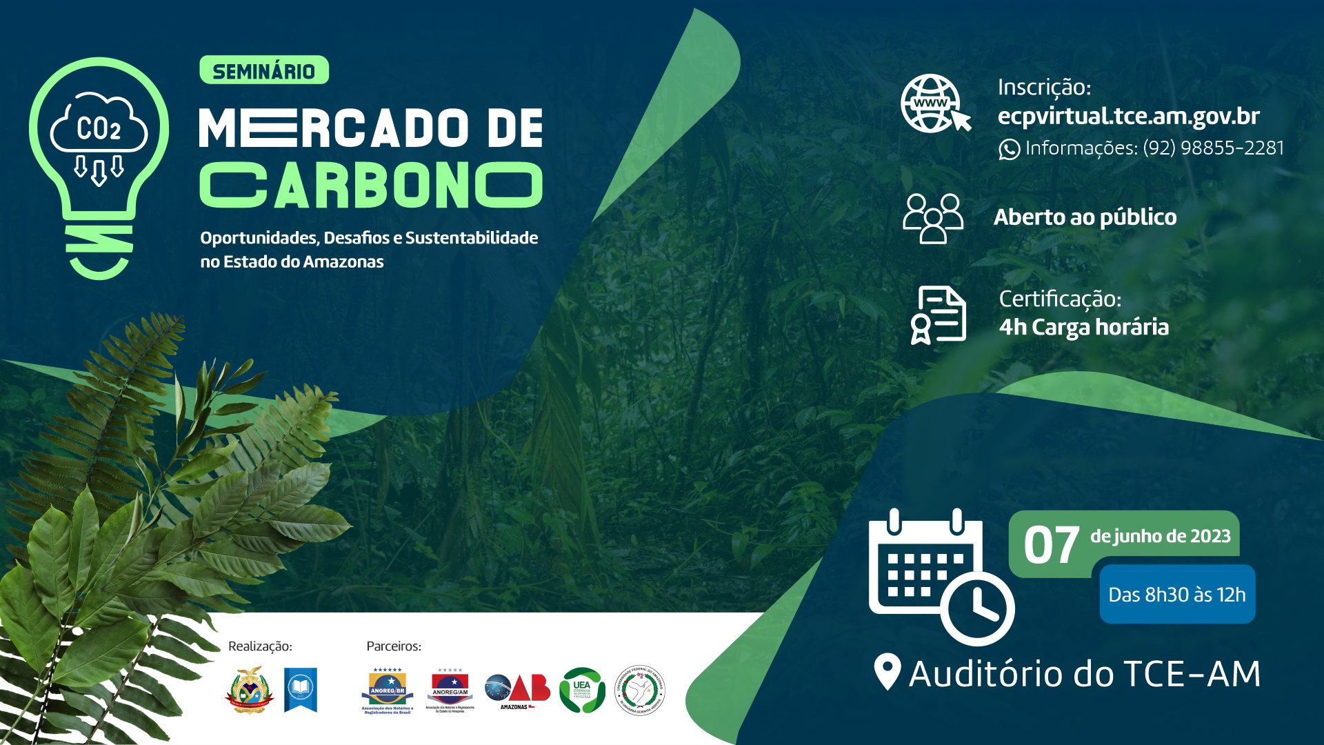 TCE-AM abre inscrições para o seminário “Mercado de Carbono – Oportunidades, Desafios e Sustentabilidade no Amazonas 22/5/2023