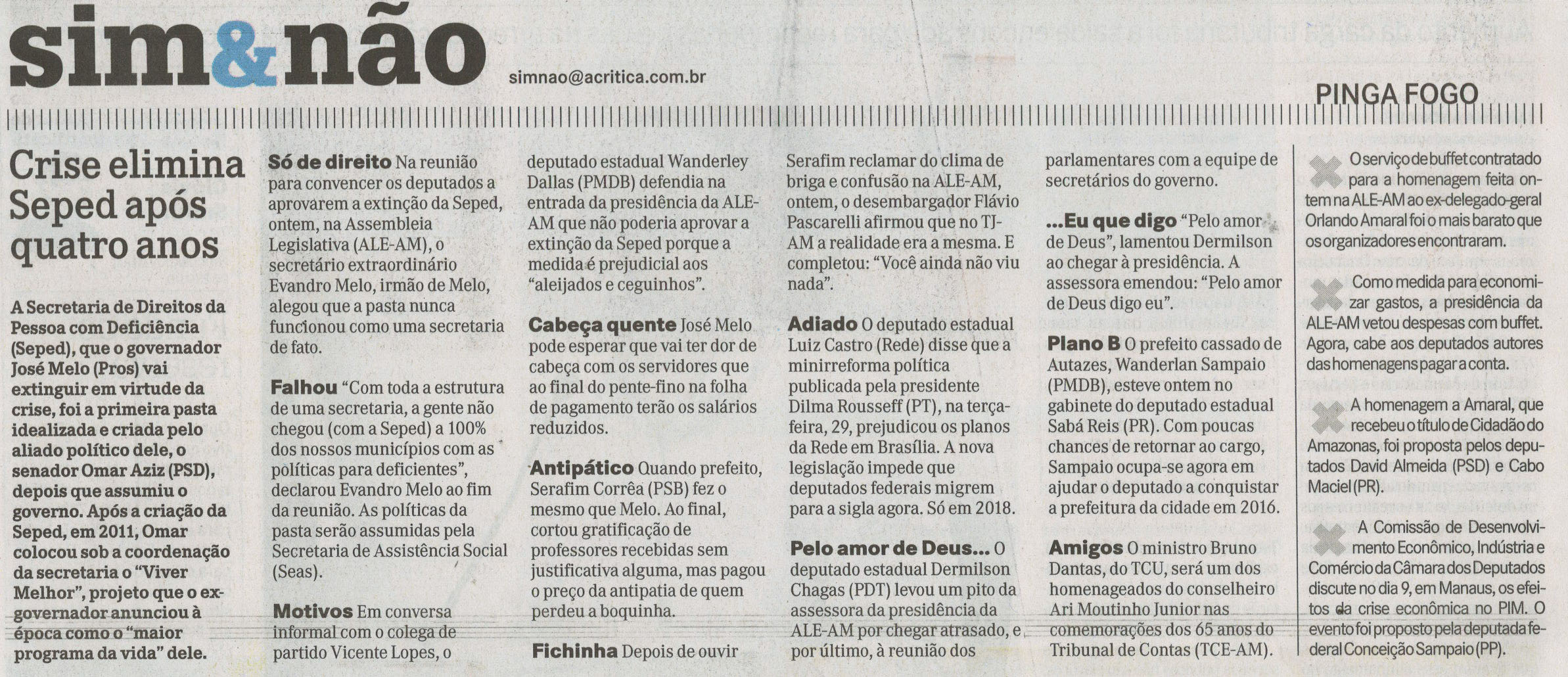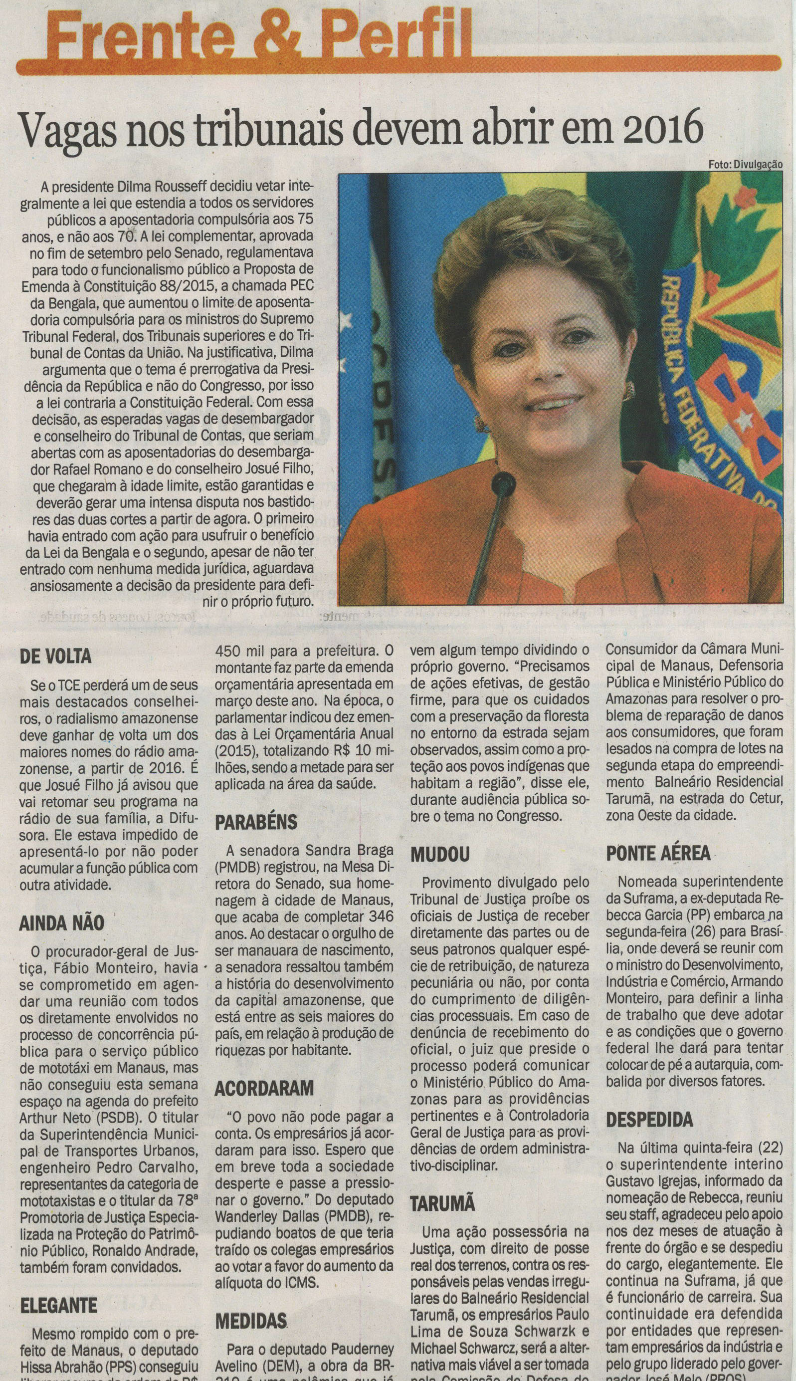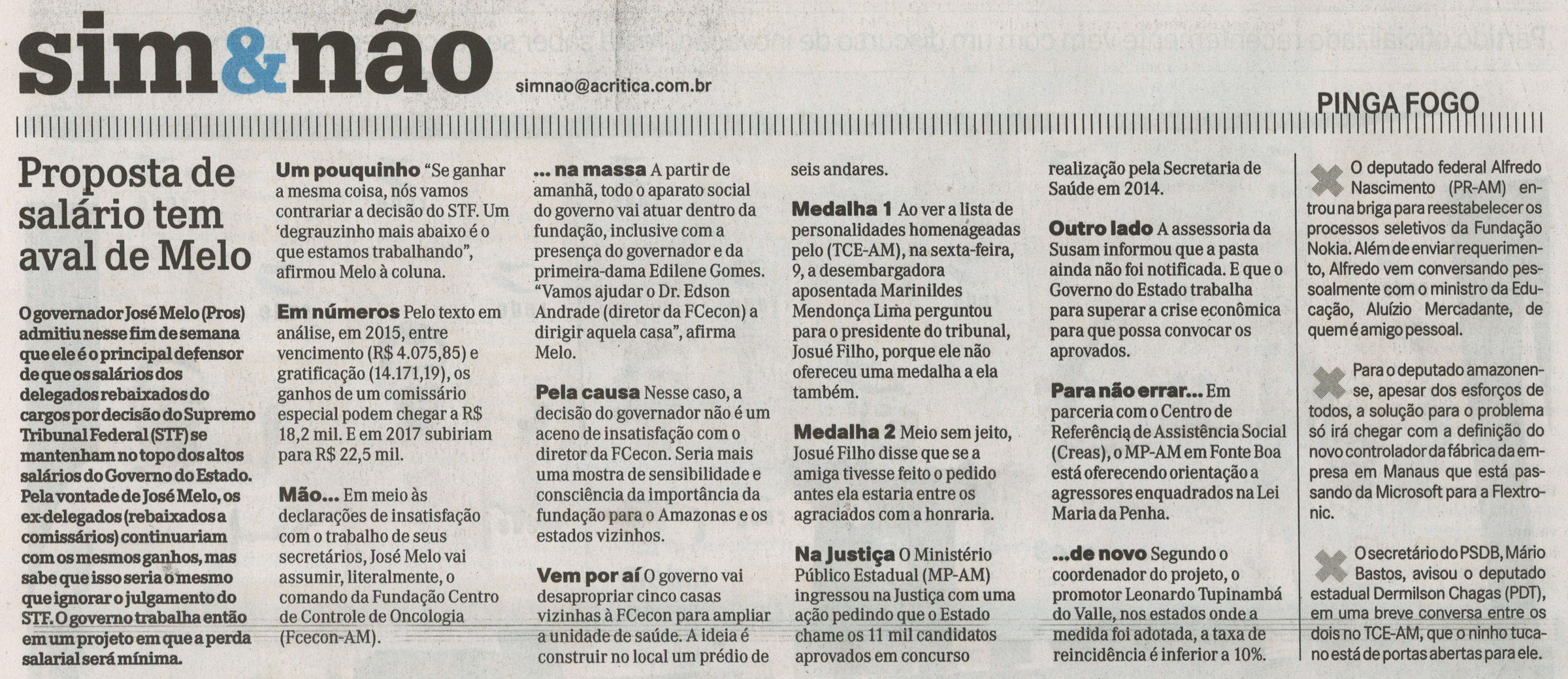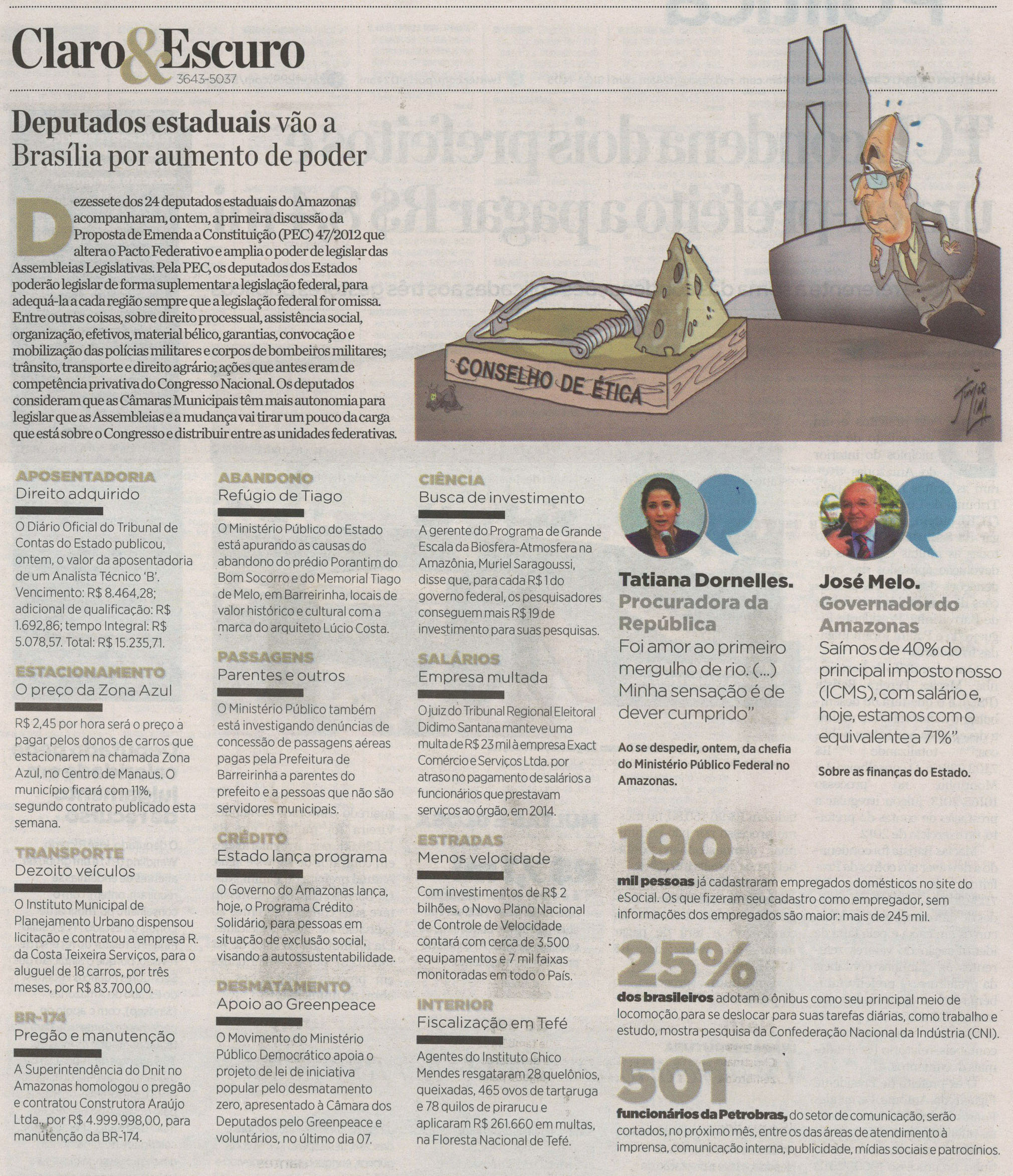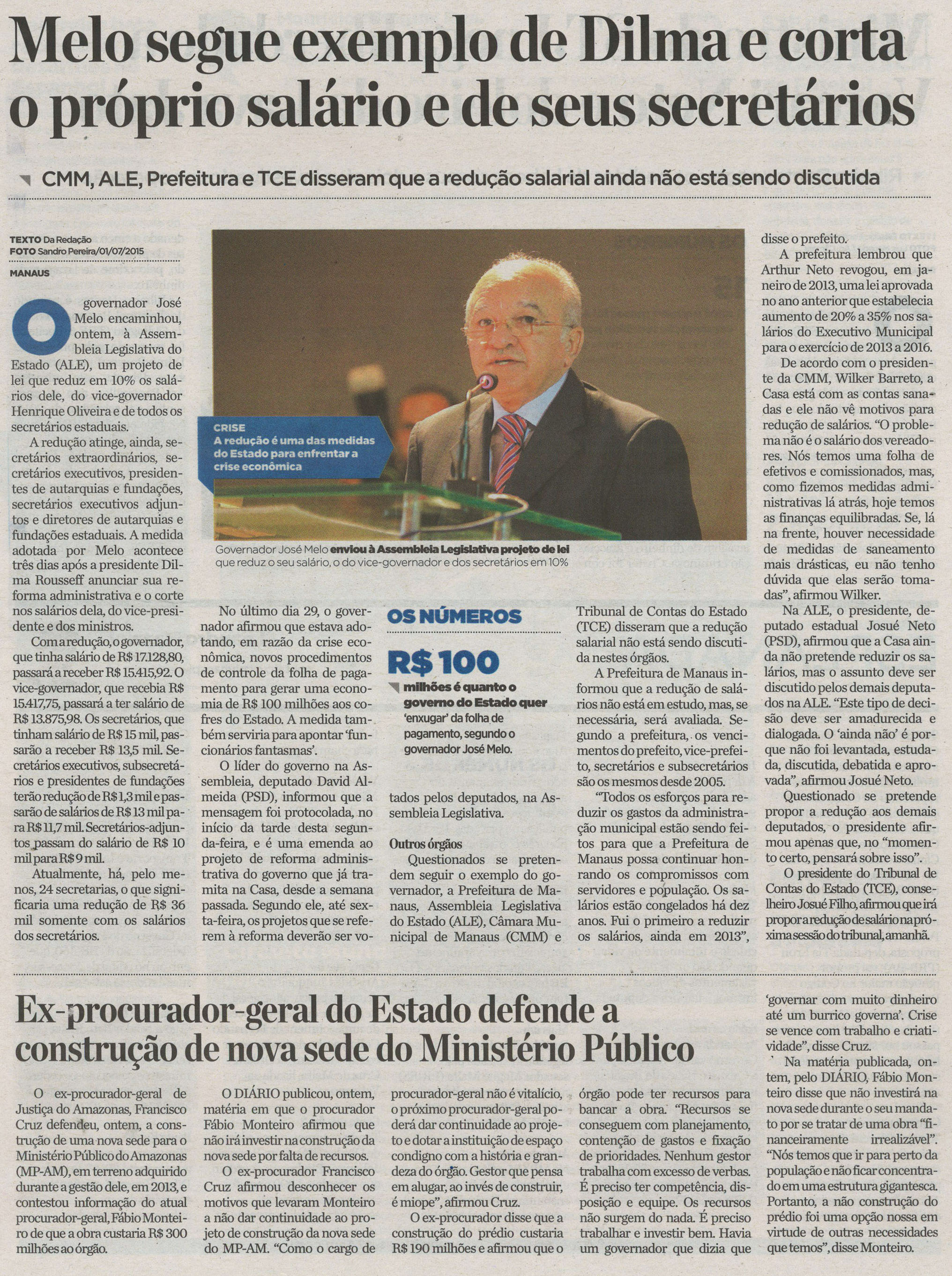 6/10/15 Diário do Amazonas Melo segue exemplo de Dilma e corta o próprio salário e de seus secretários