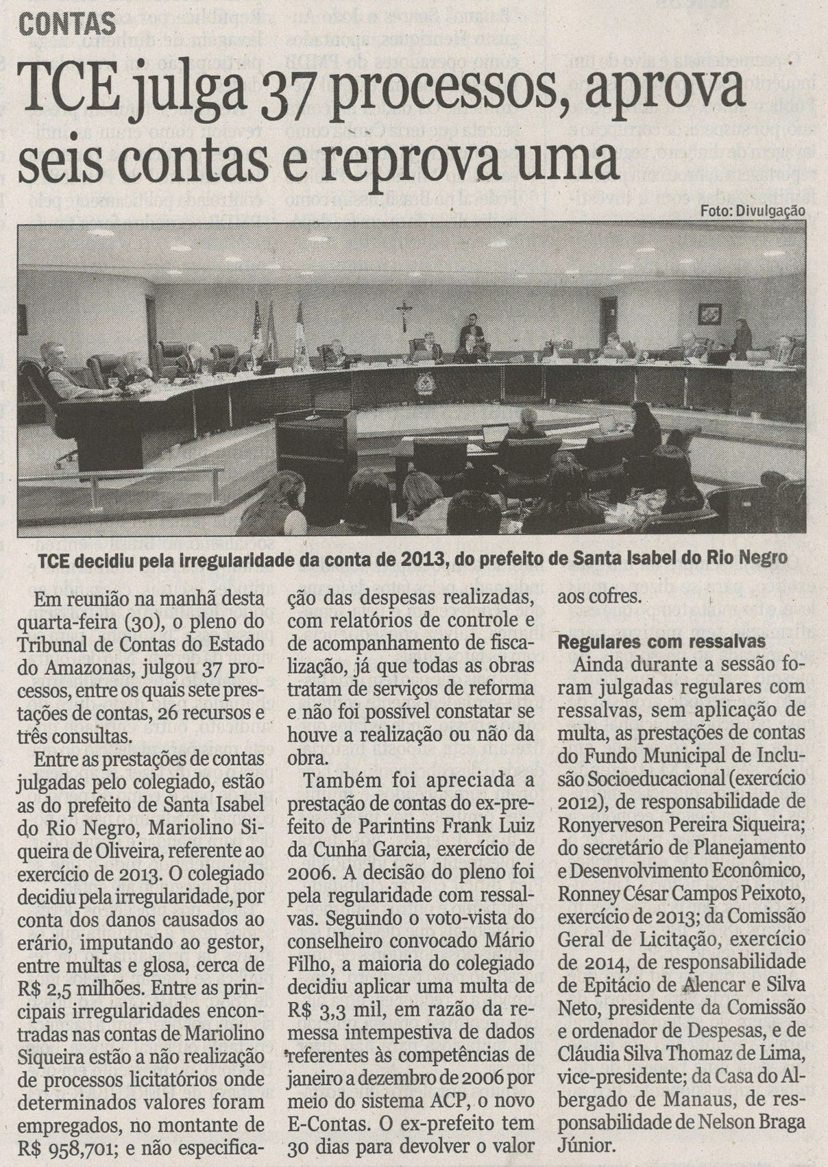 1°/10/15 Jornal do Commercio TCE julga 37 processos, aprova seis contas e reprova uma