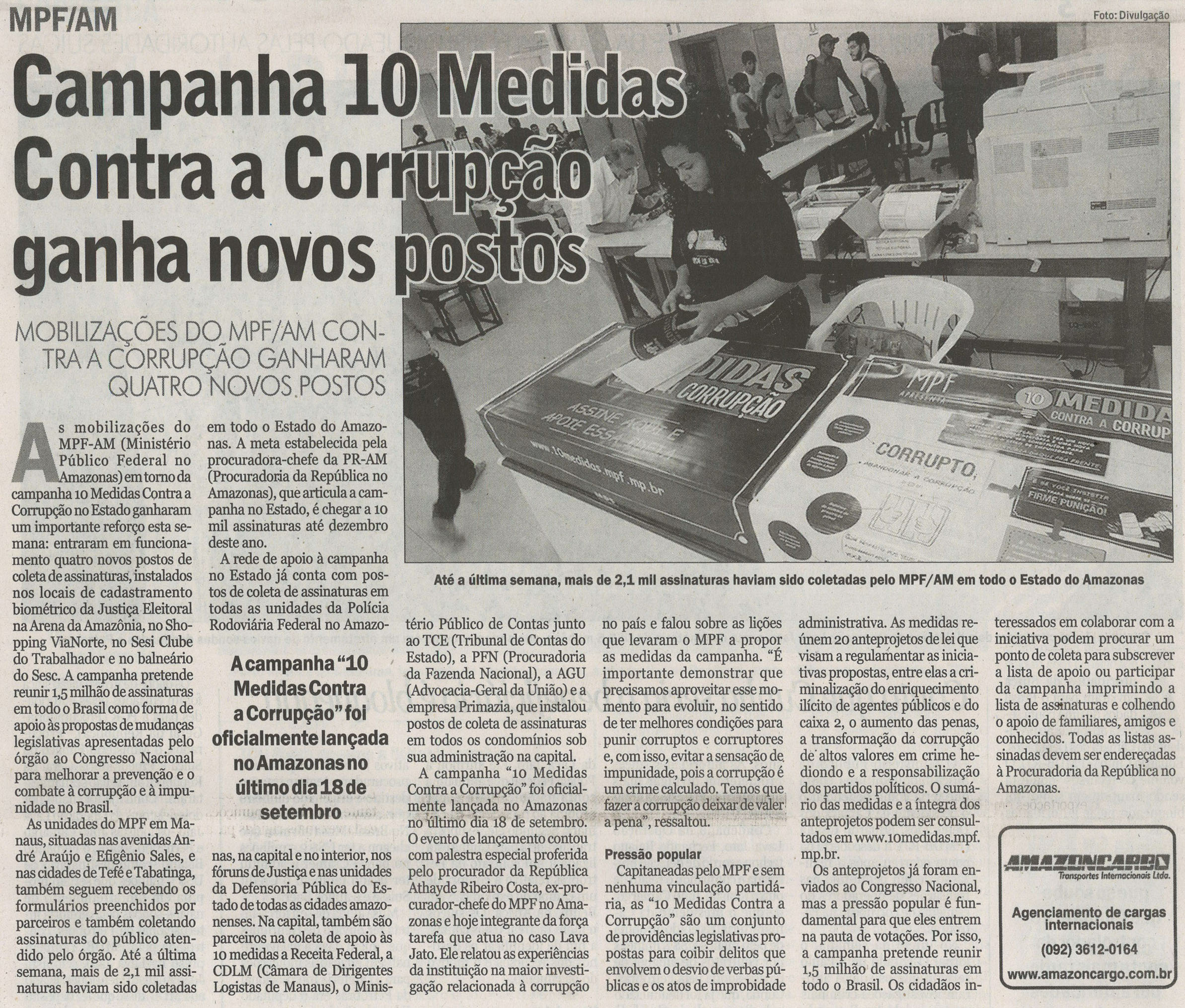 1°/10/15 Jornal do Commercio Campanha 10 Medidas Contra a Corrupção ganha novos postos