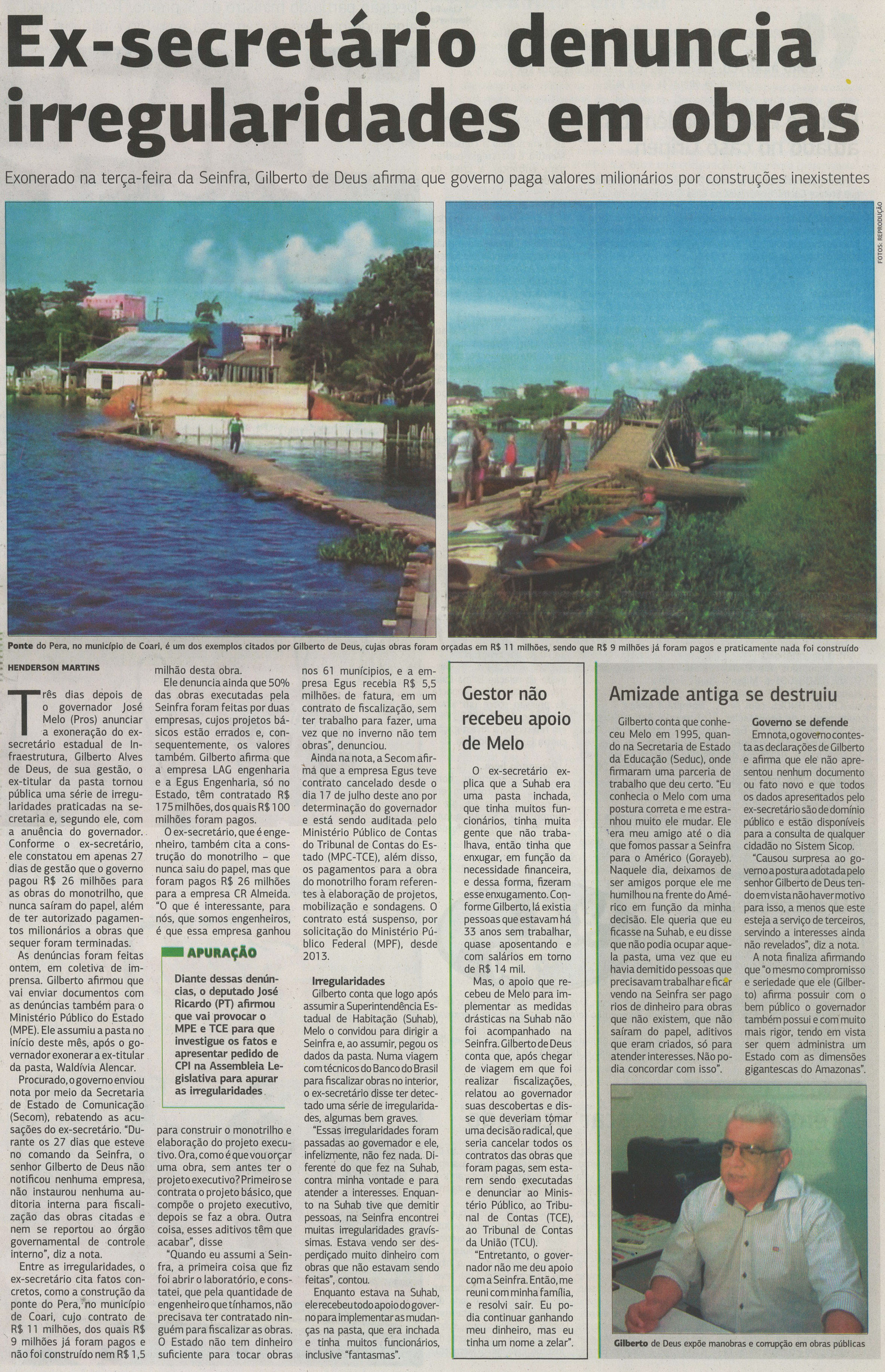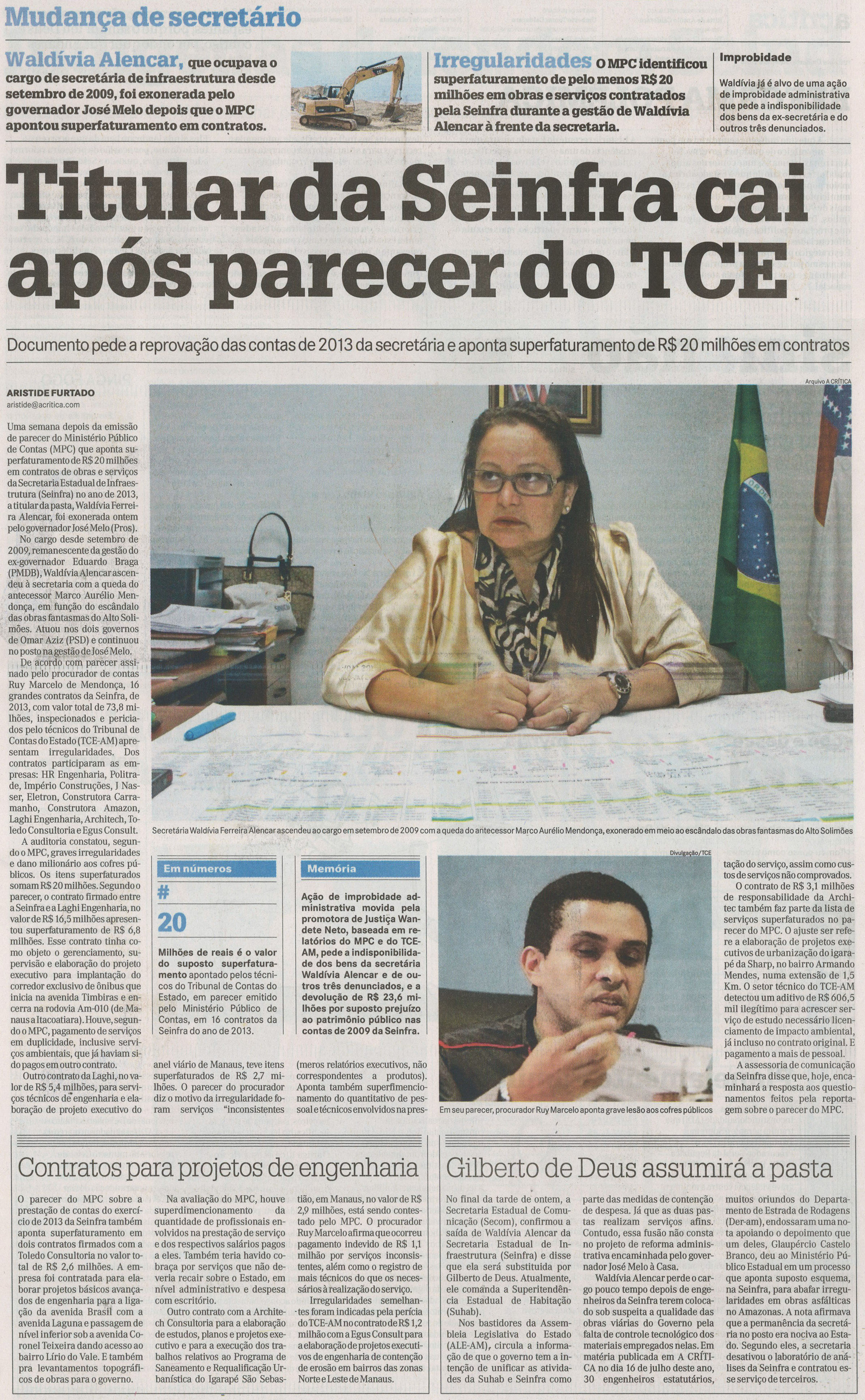 2/10/15 A Crítica Titular da Seinfra cai após parecer do TCE