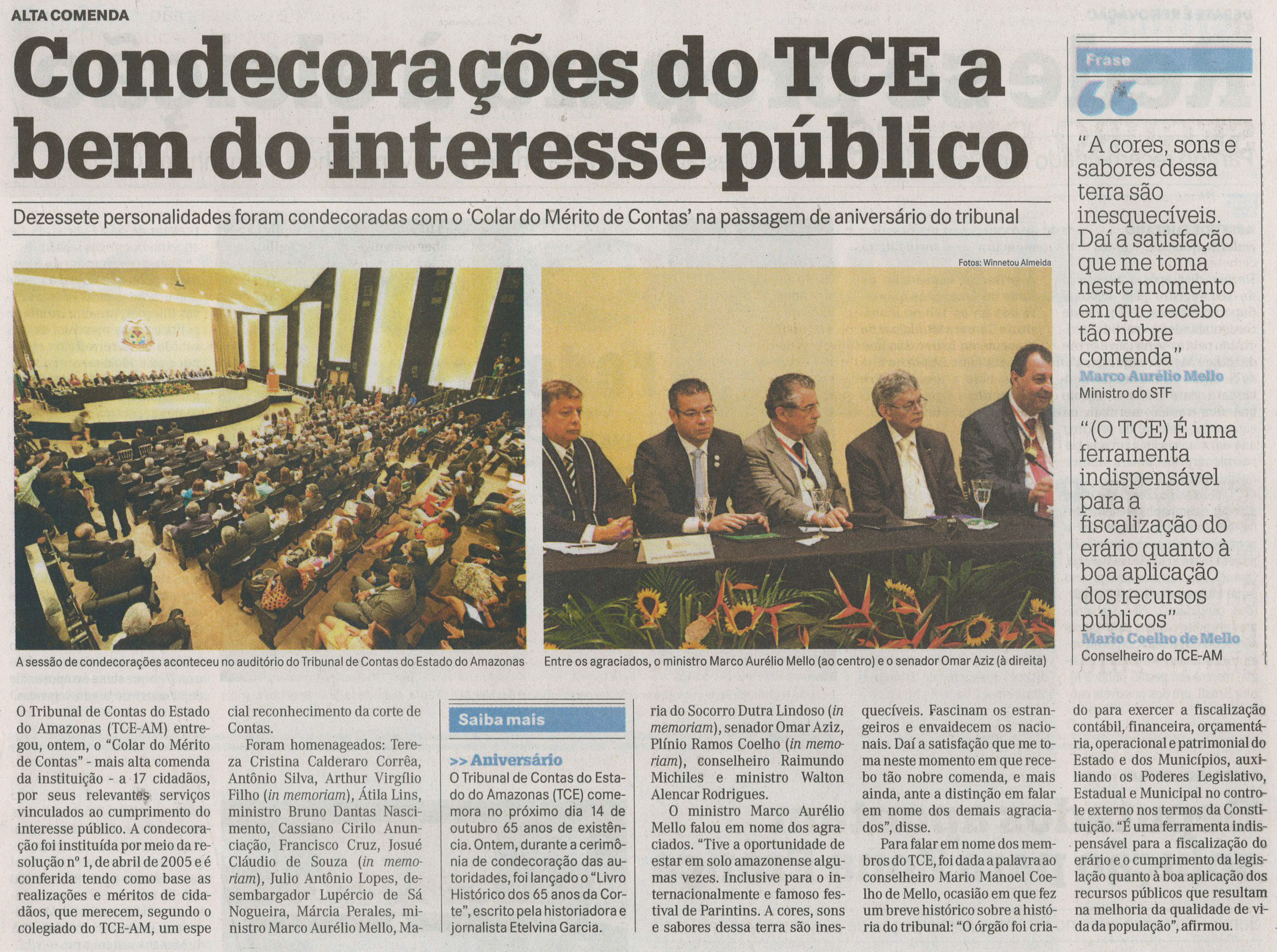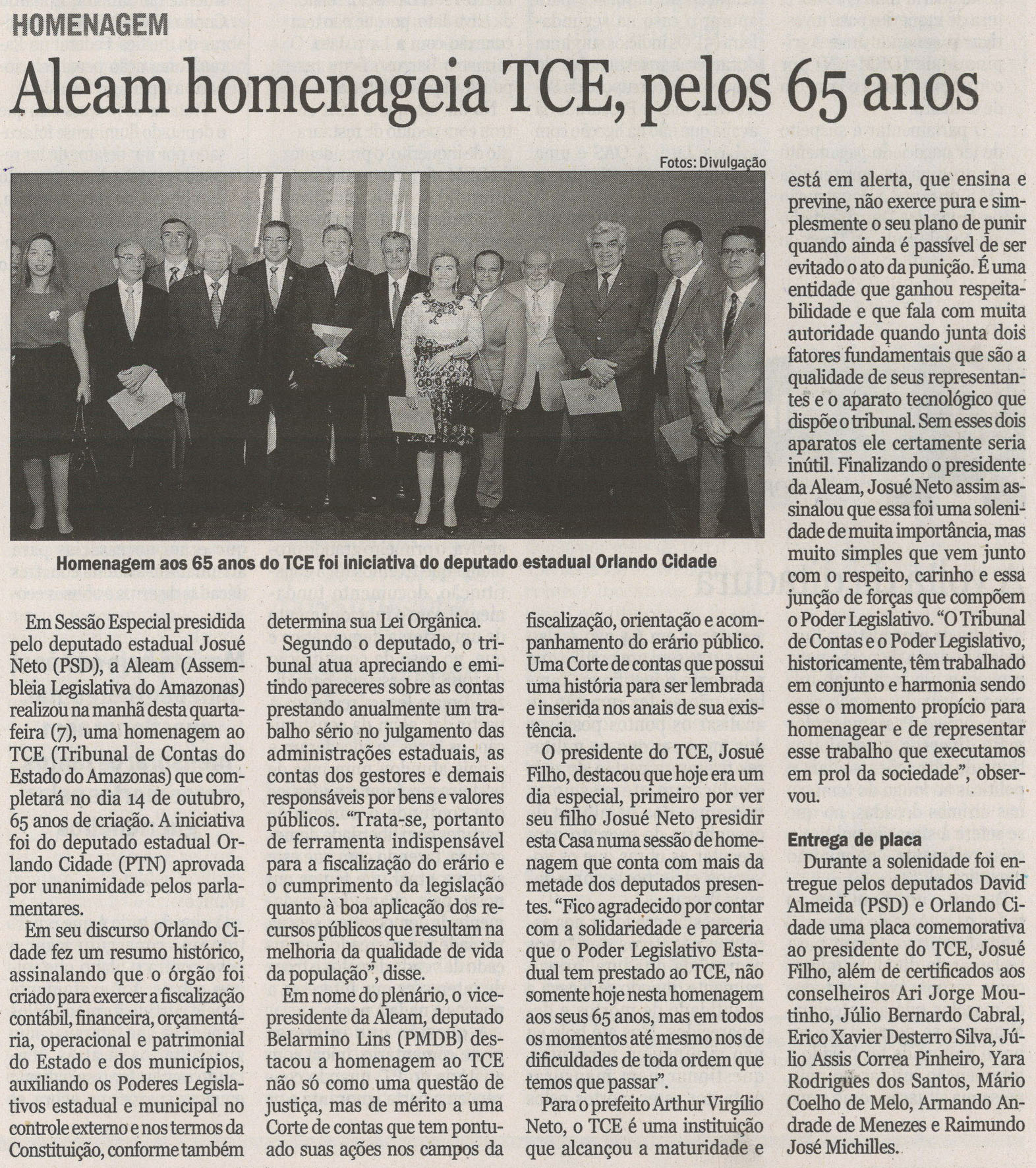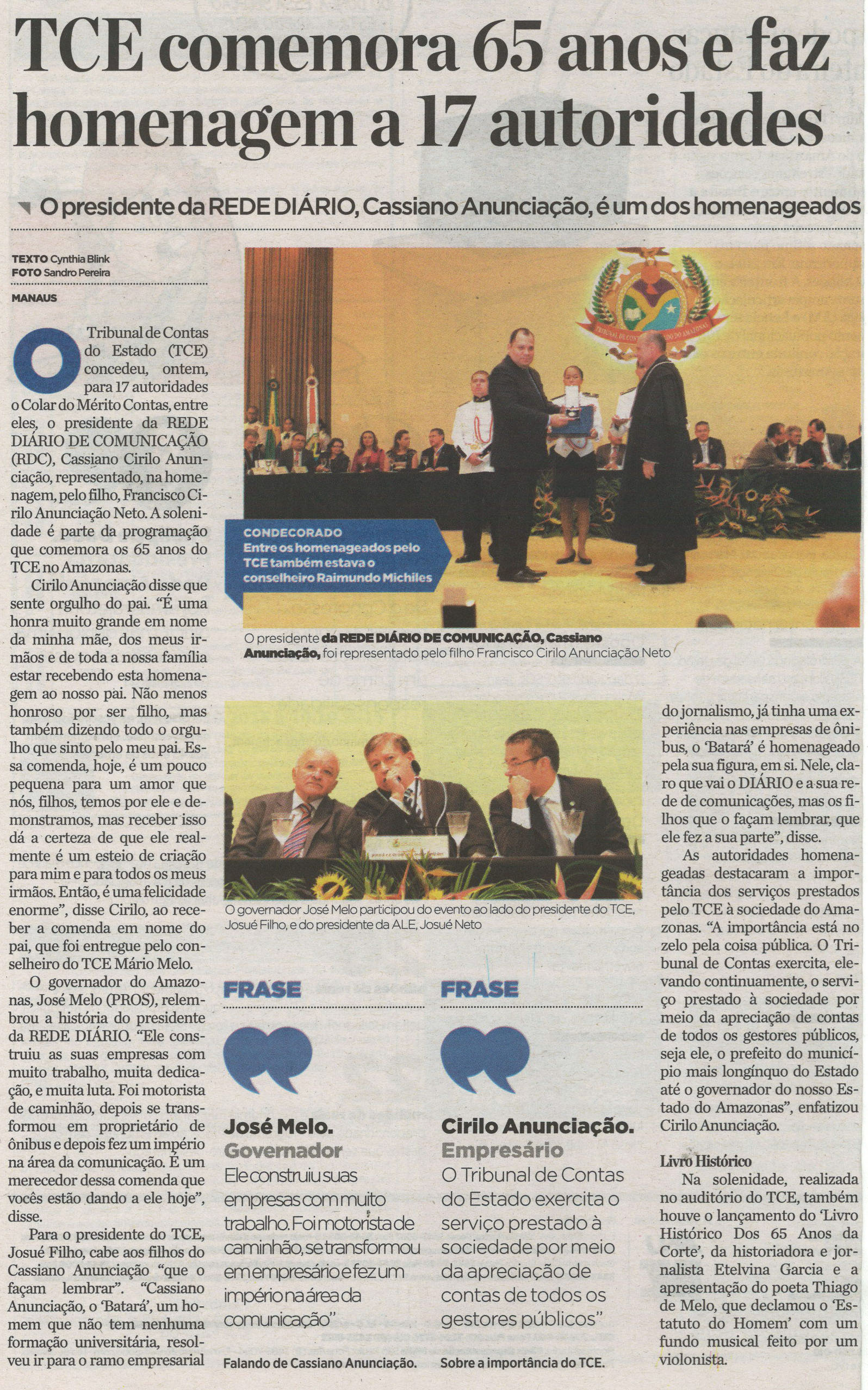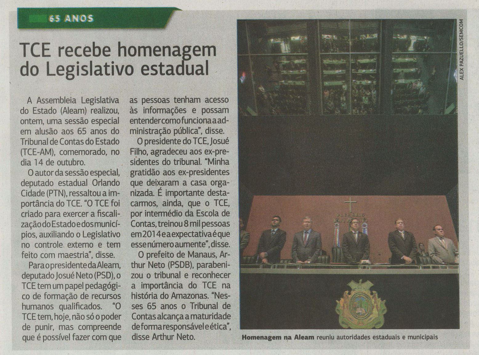 10/10/15 Diário do Amazonas TCE comemora 65 anos e faz homenagem a 17 autoridades