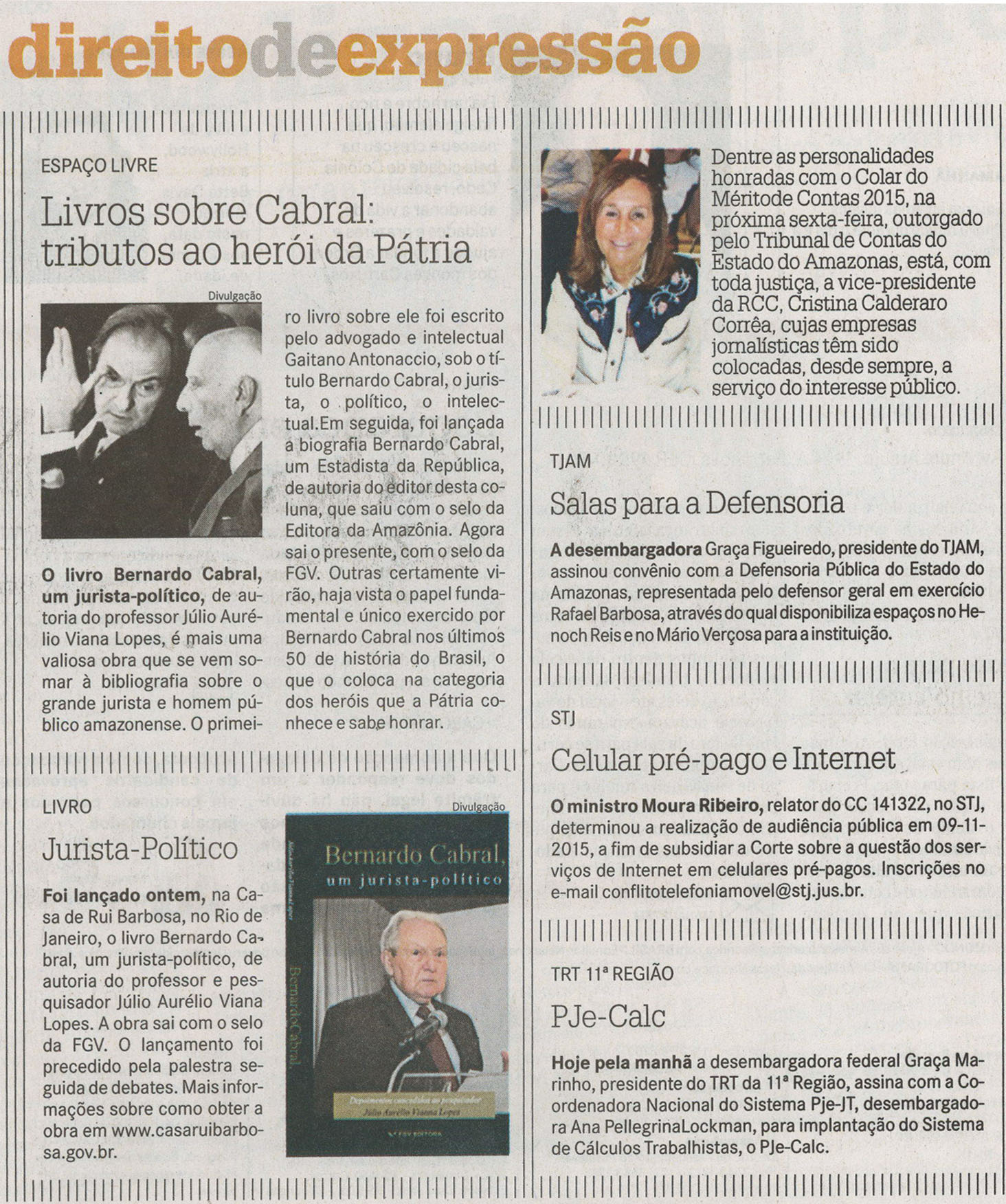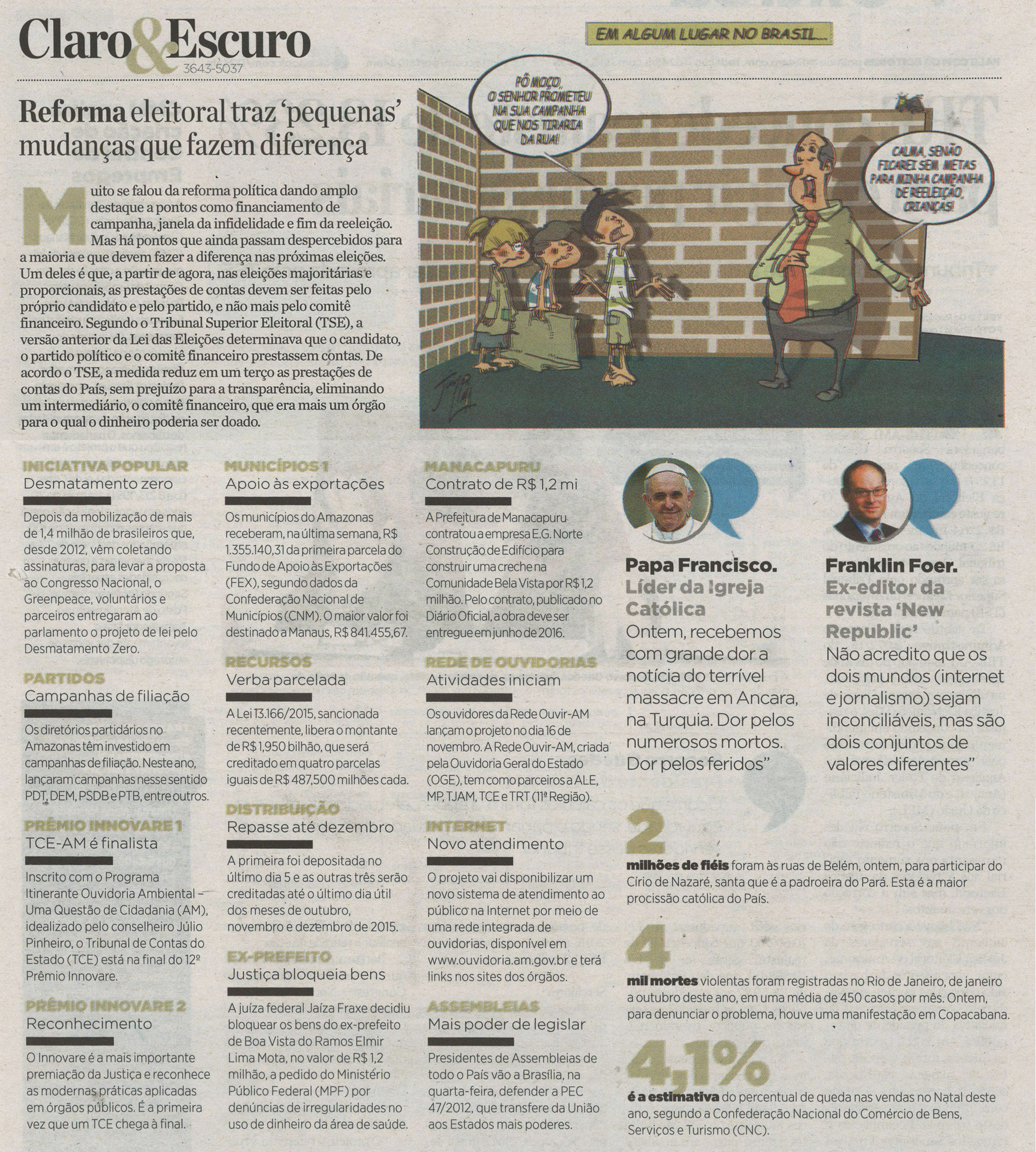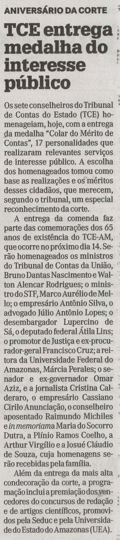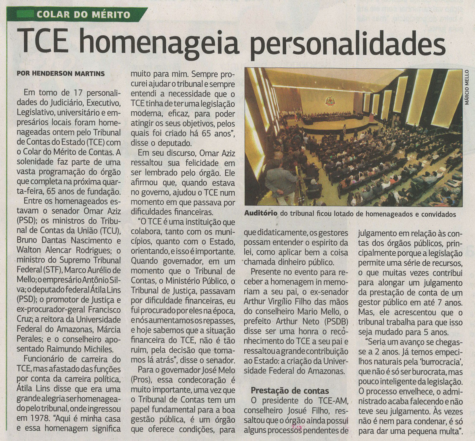 10/10/15 Diário do Amazonas TCE comemora 65 anos e faz homenagem a 17 autoridades