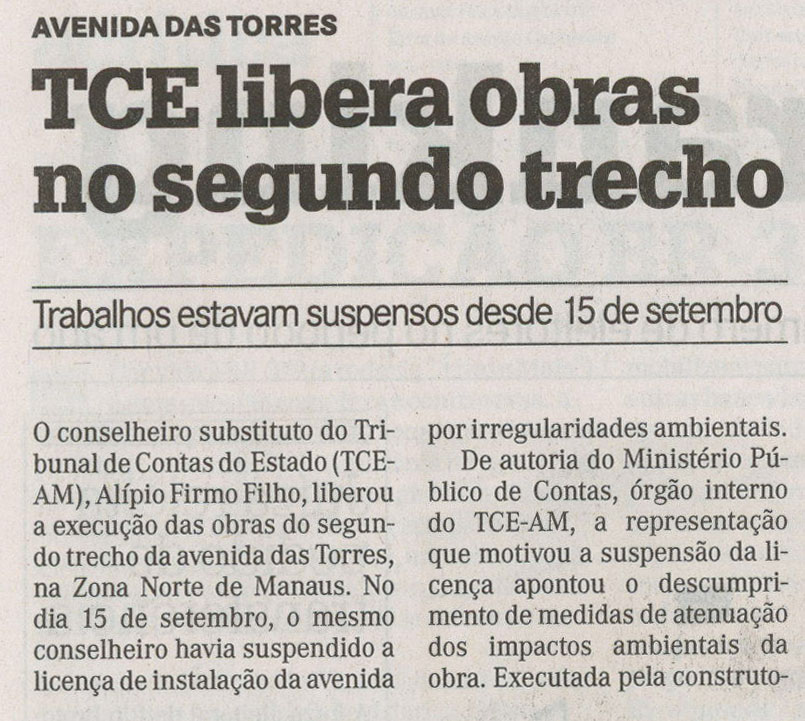 6/10/15 A Crítica TCE libera obras no segundo trecho