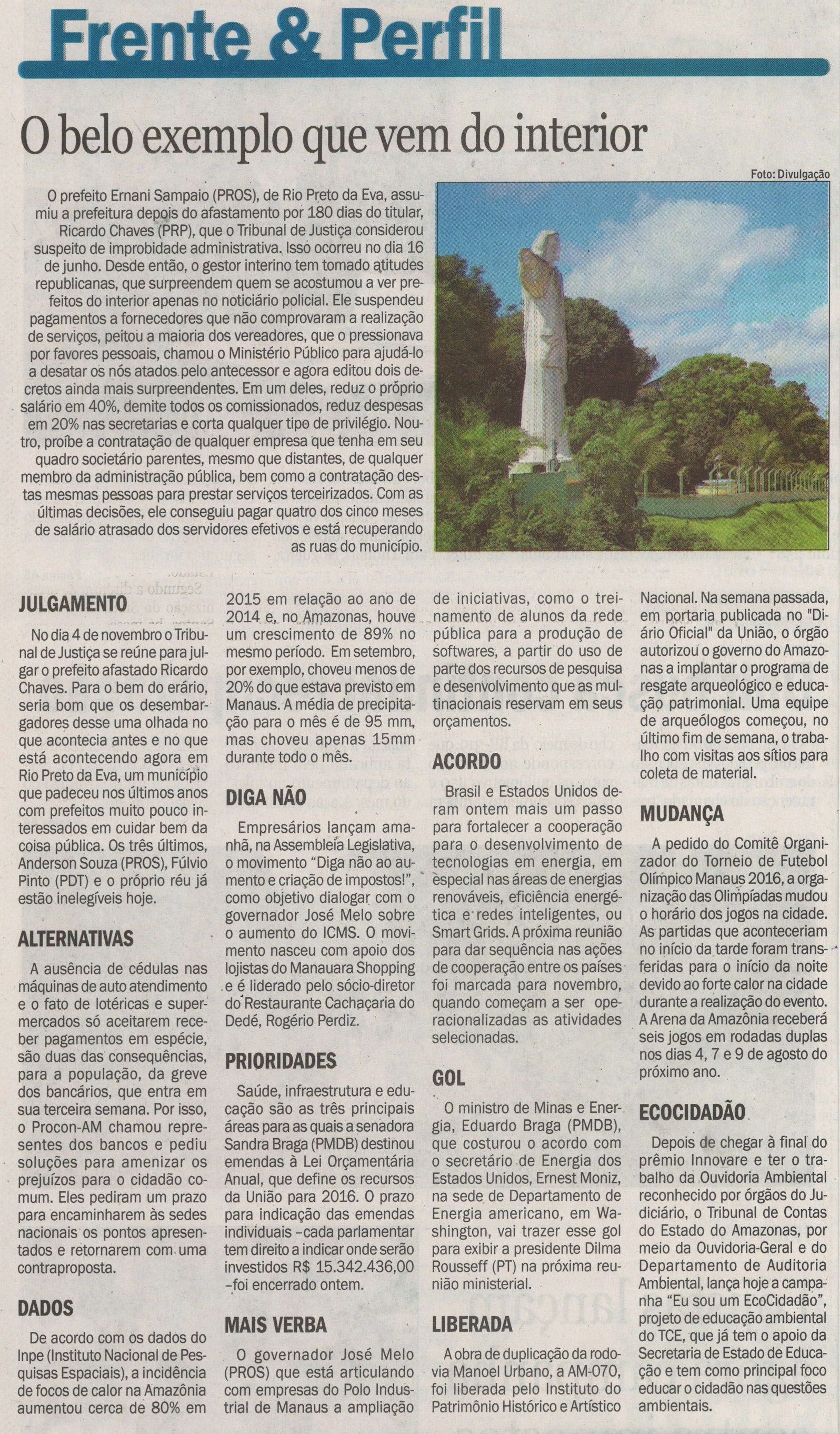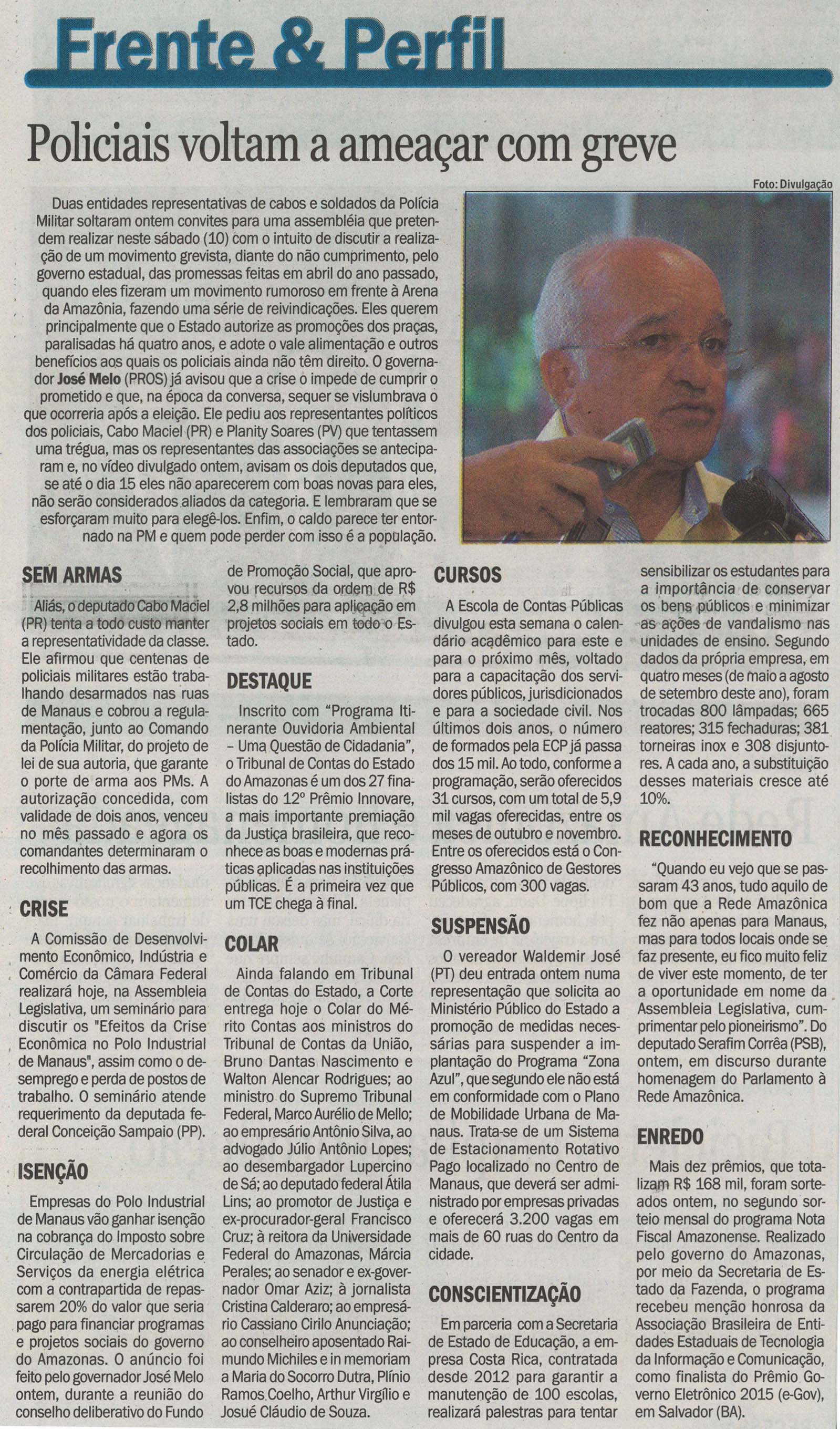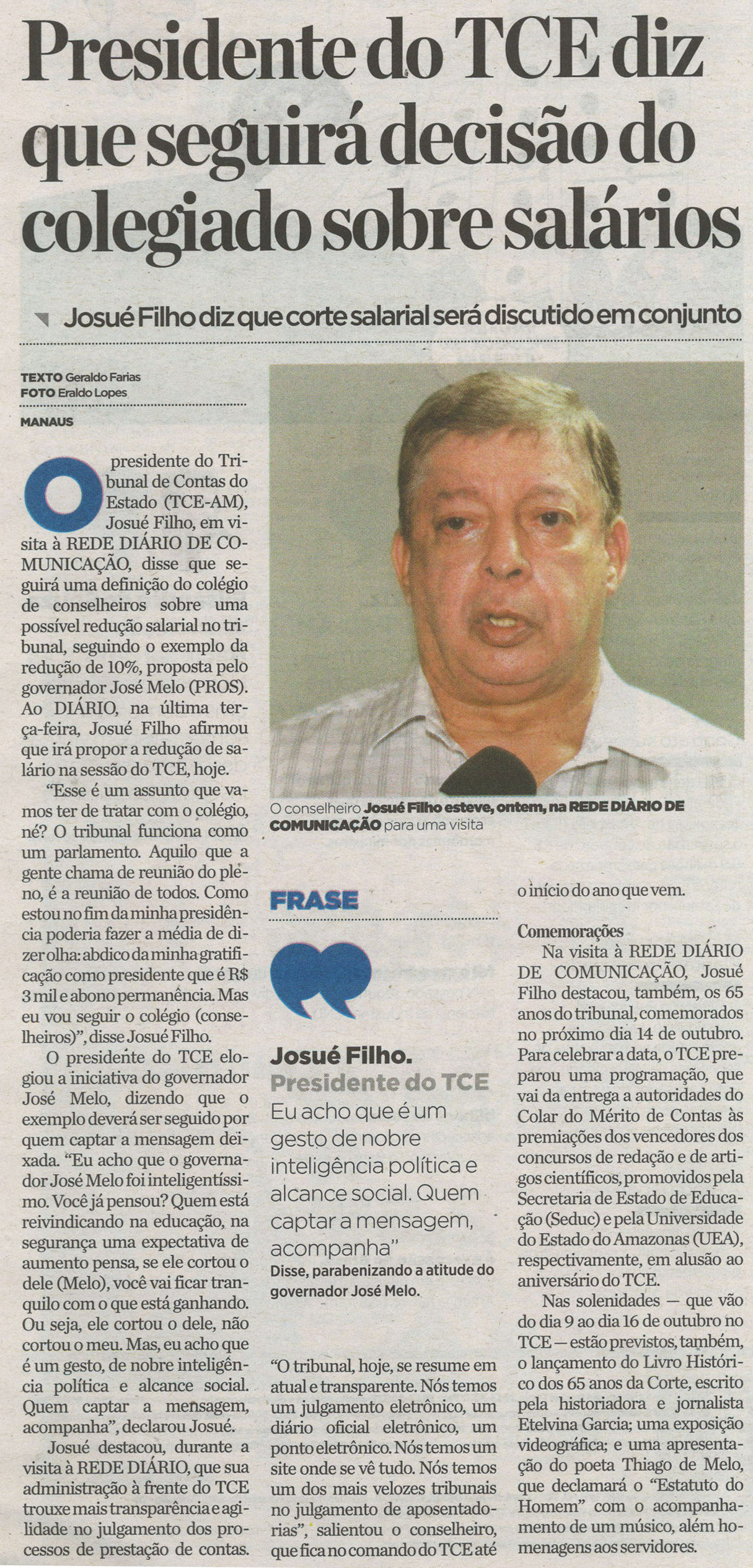 7/10/15 Diário do Amazonas Presidente do TCE diz que seguirá decisão do colegiado sobre salário
