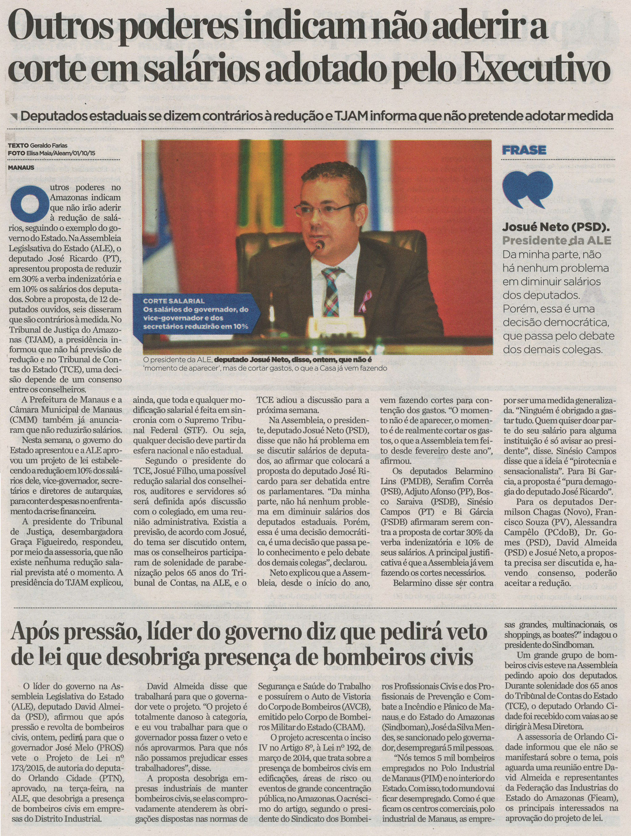8/10/15 Diário do Amazonas Outros poderes indicam não aderir a corte em salários adotado pelo Executivo