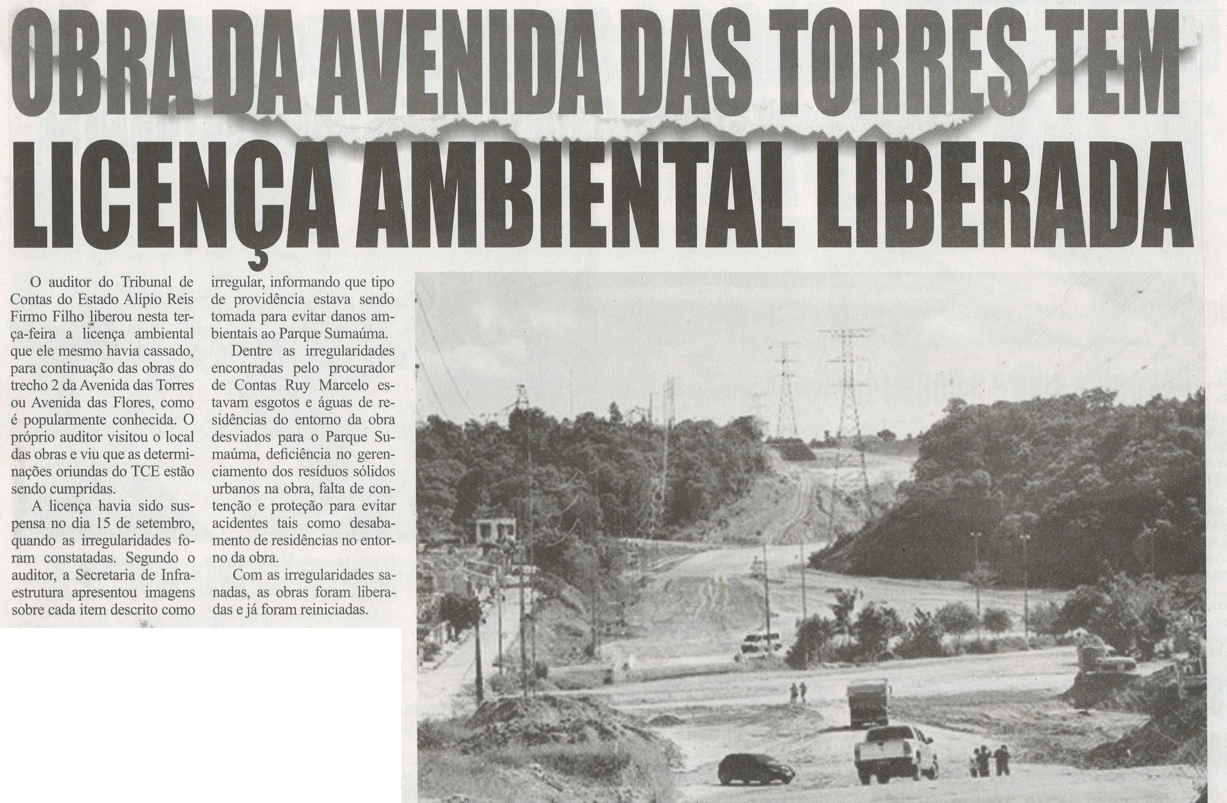 8/10/15 Maskate Obra da Avenida das Torres tem licença ambiental liberada