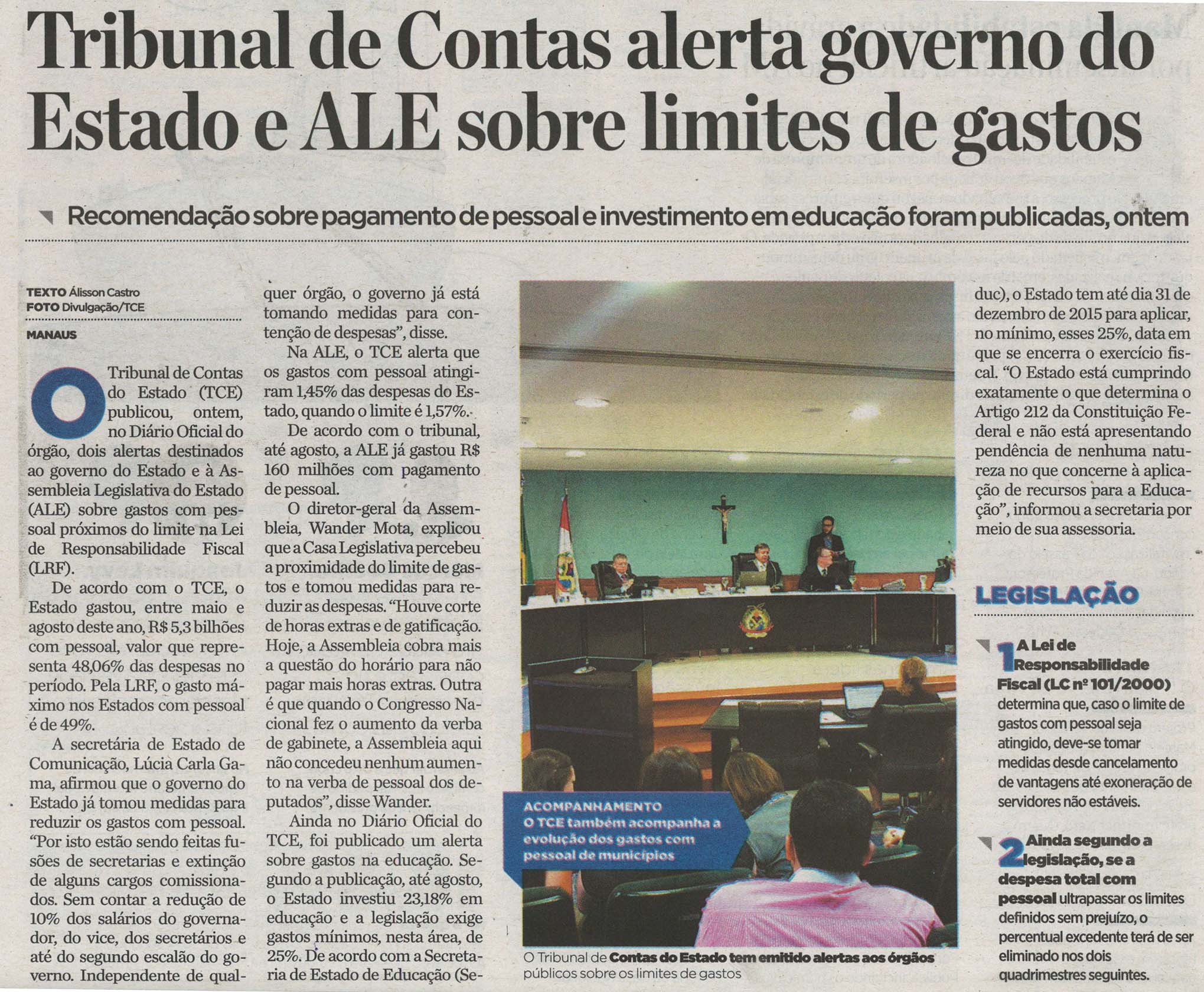 9/10/15 Diário do Amazonas Tribunal de Contas alerta governo do Estado e ALE sobre limites de gastos