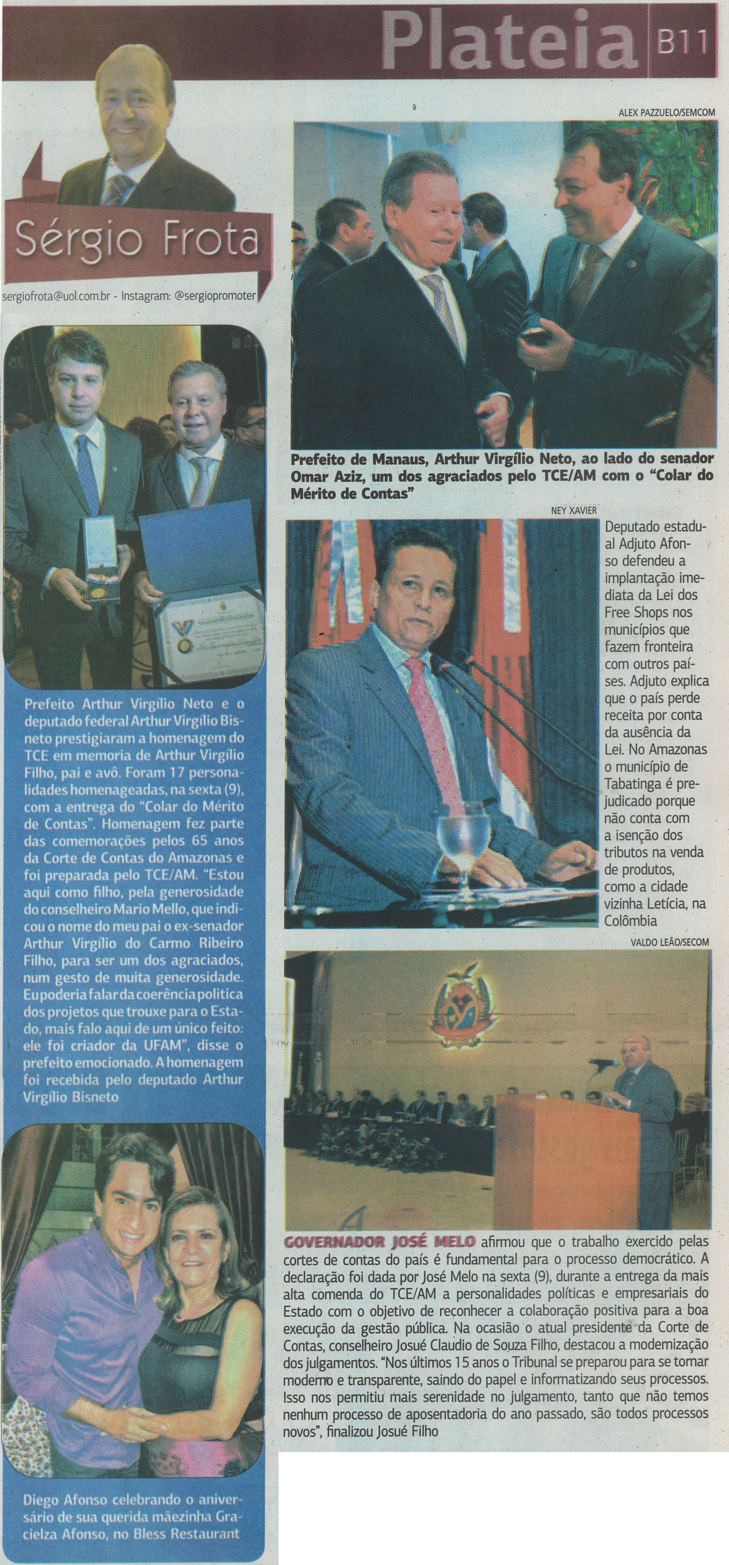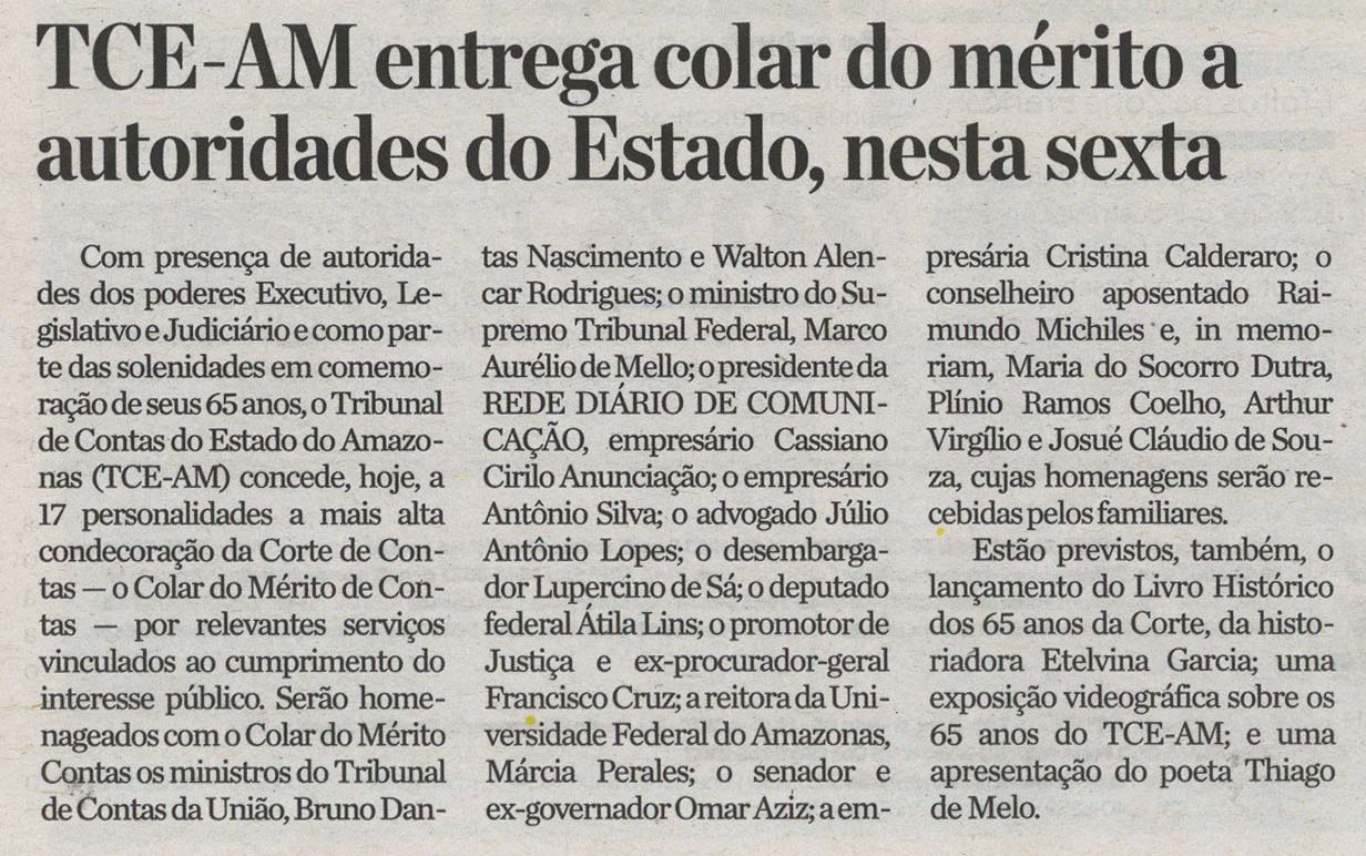 9/10/15 Diário do Amazonas TCE-AM entrega colar do mérito a autoridades do Estado, nesta sexta