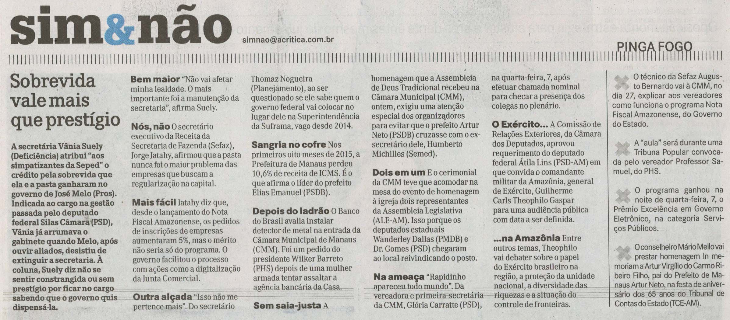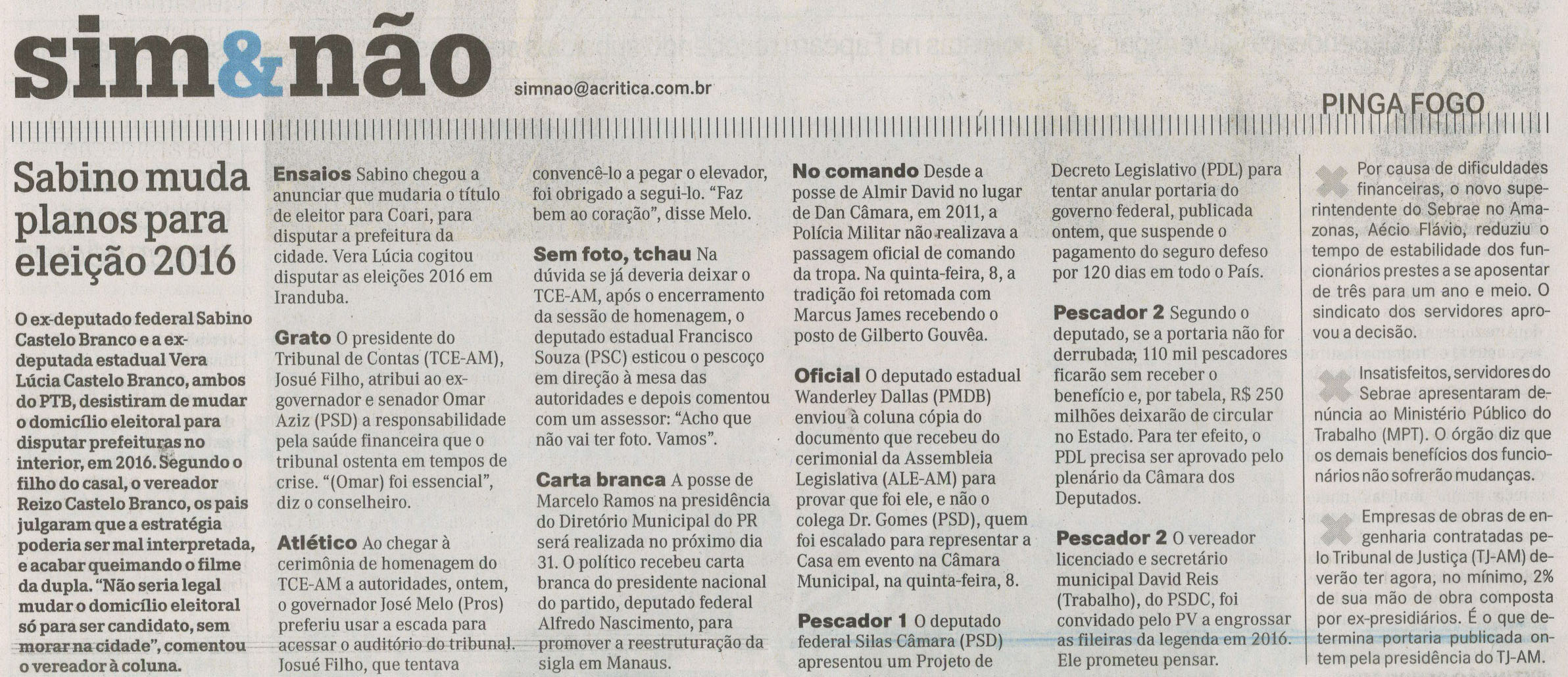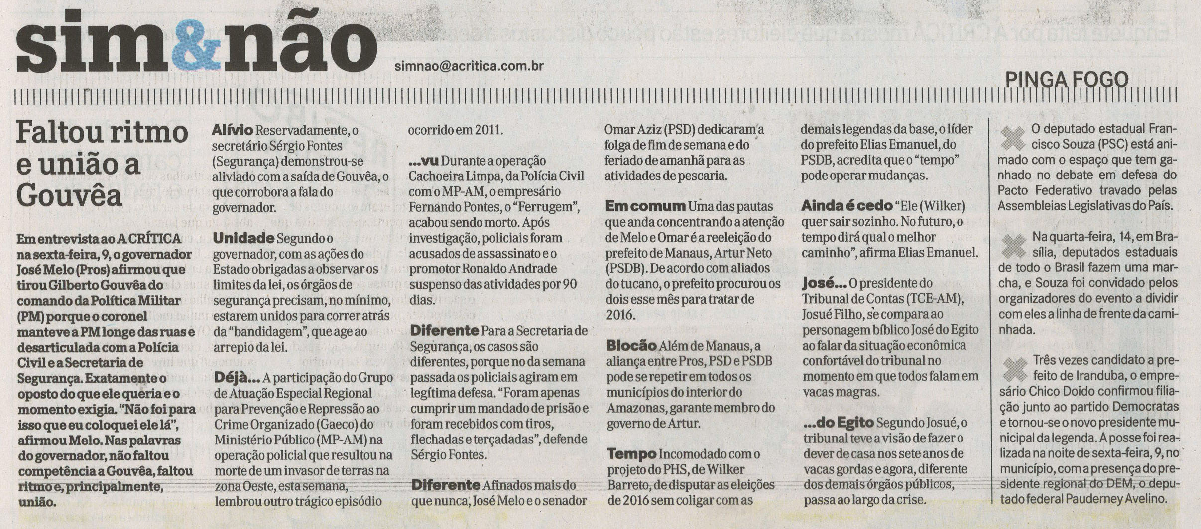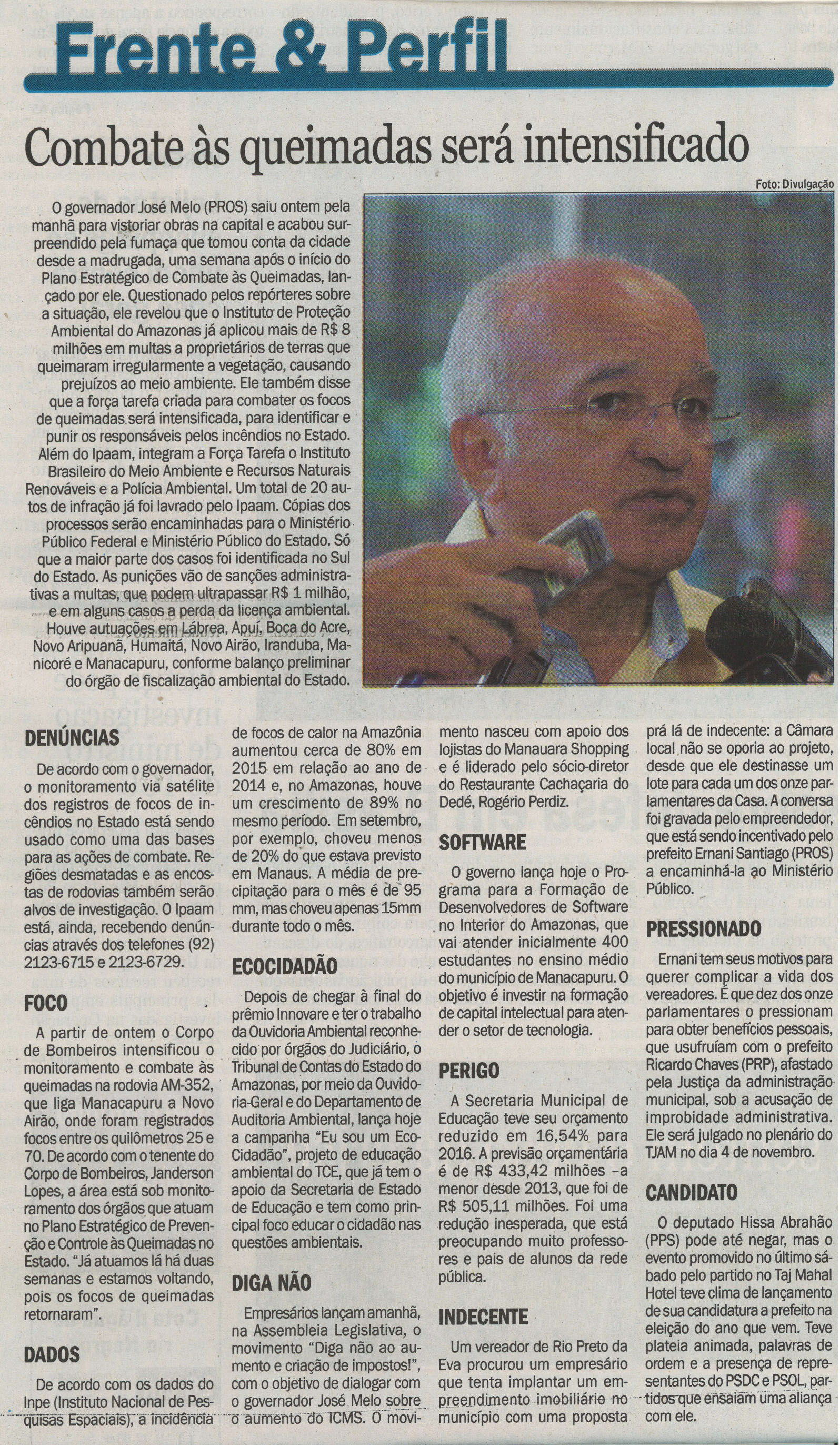 19/10/15 Amazonas em Tempo Coluna do Sérgio Frota