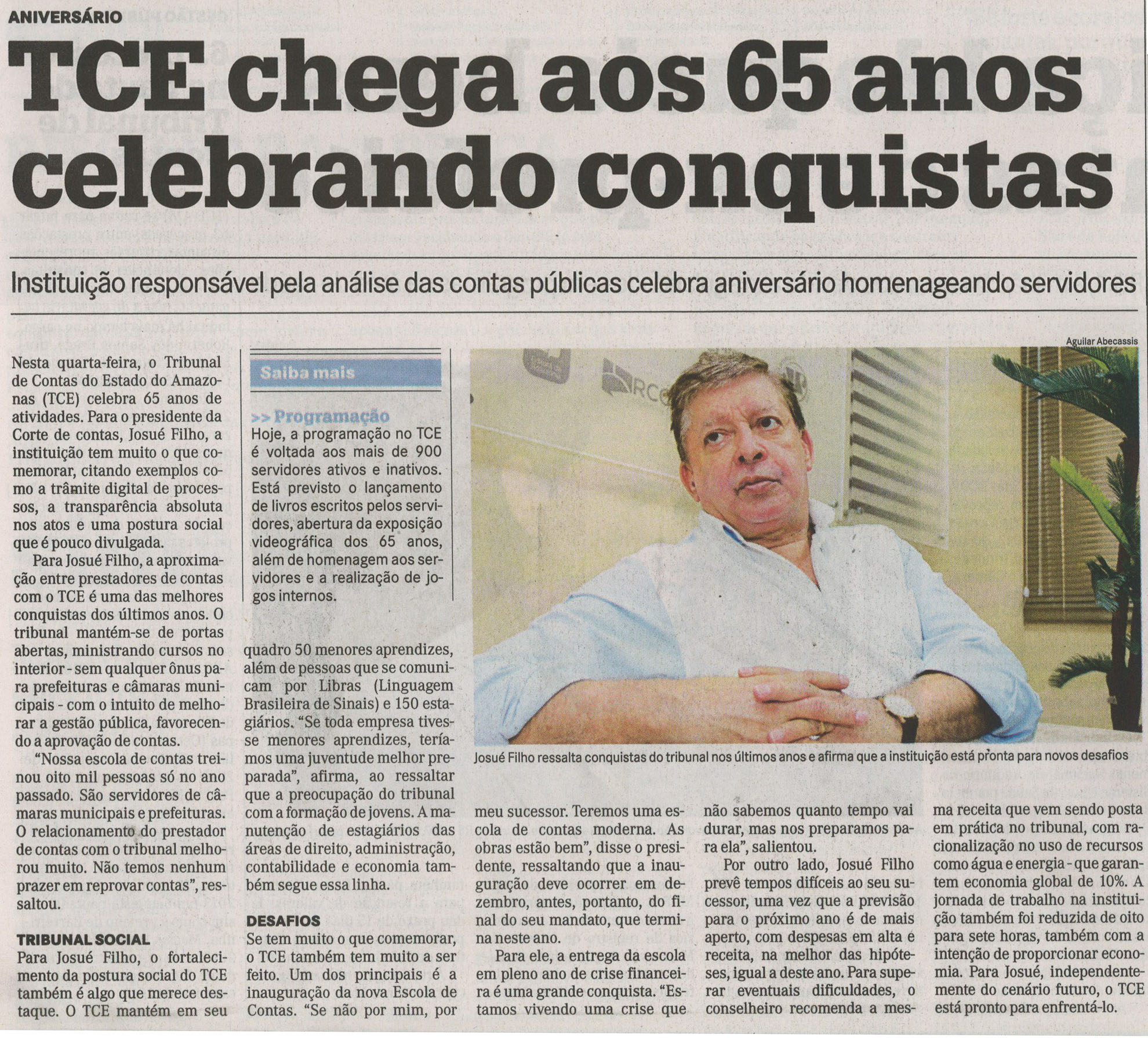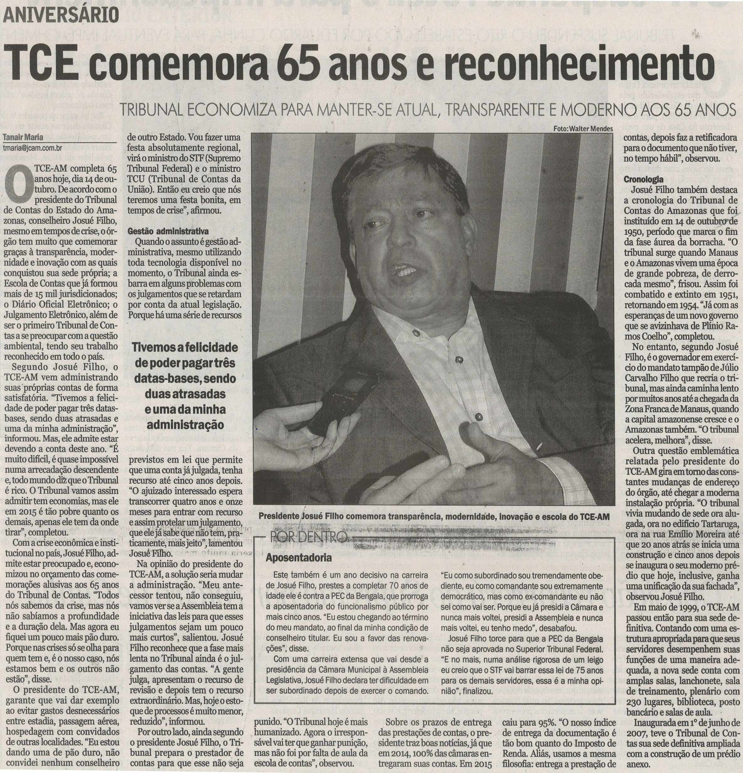 14/10/15 A Crítica TCE chega aos 65 anos celebrando conquistas