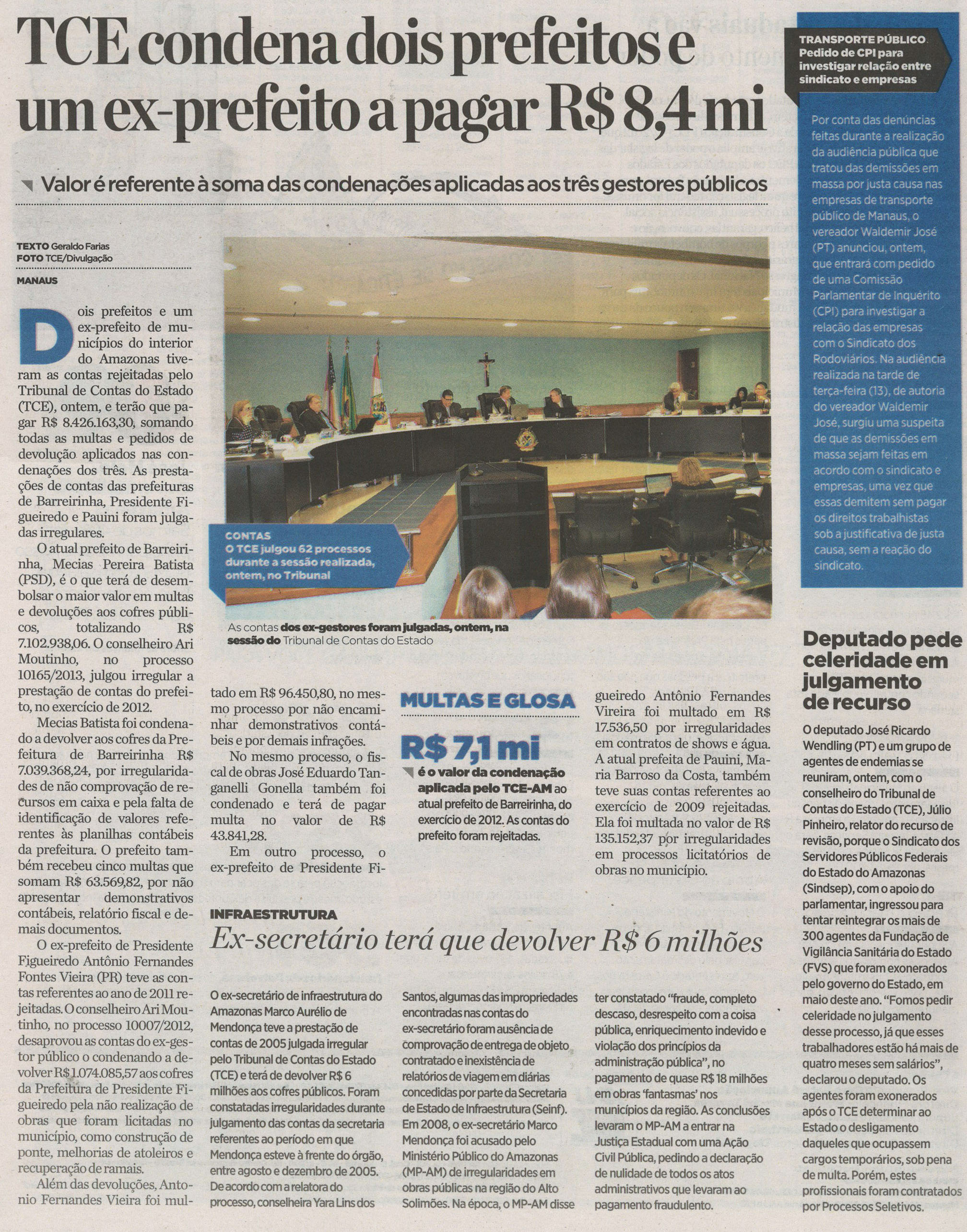 15/10/15 Diário do Amazonas TCE condena dois prefeitos e um ex-prefeito a pagar R$8,4mi