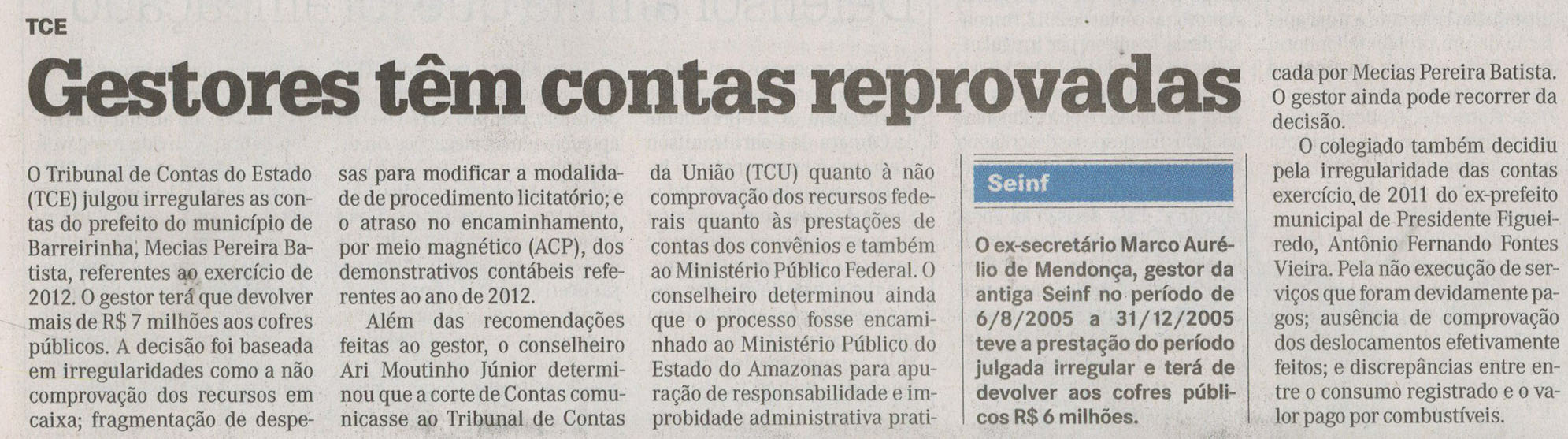 15/10/15 A Crítica Gestores têm contas reprovadas