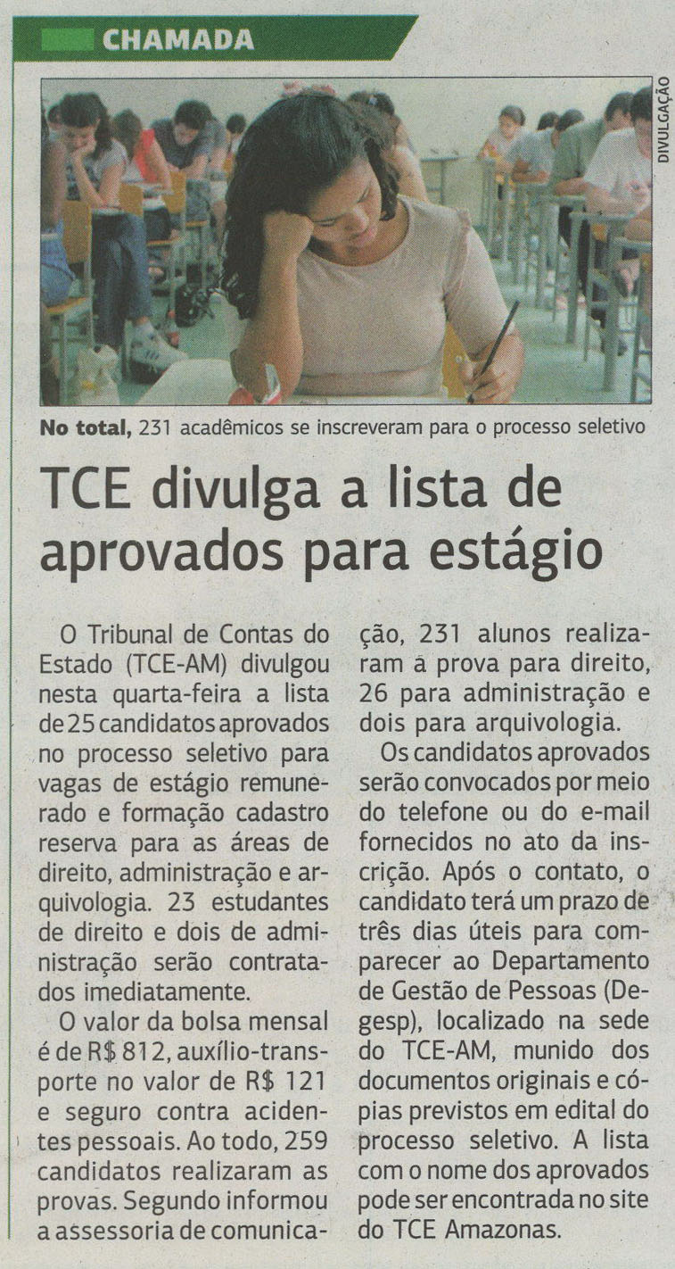 15/10/15 Amazonas em Tempo TCE divulga a lista de aprovados para estágio
