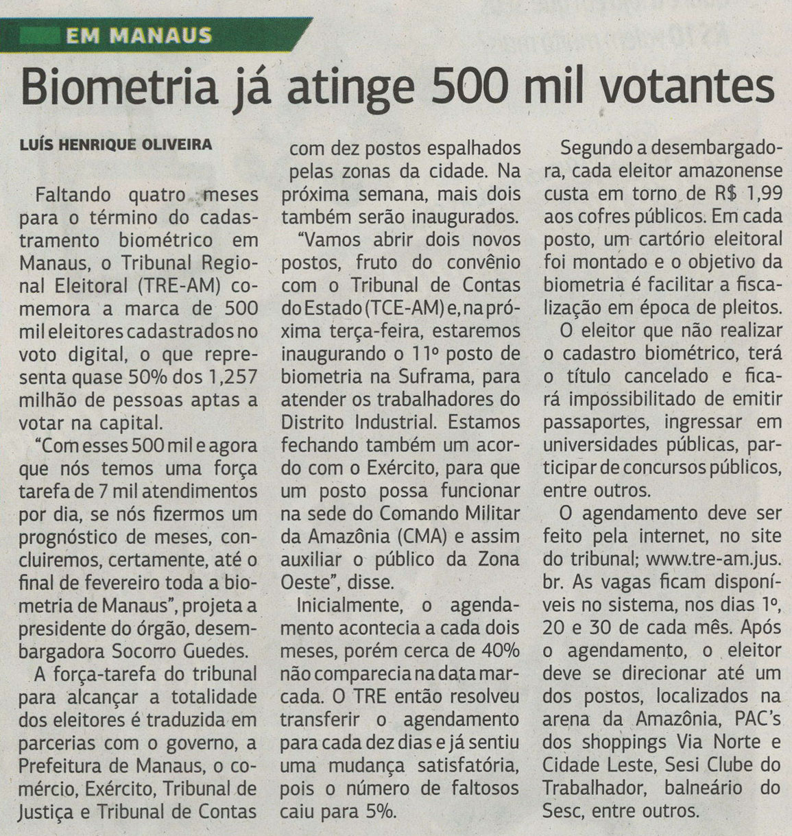 17/10/15 Amazonas em Tempo Biometria já atinge 500 mil votantes