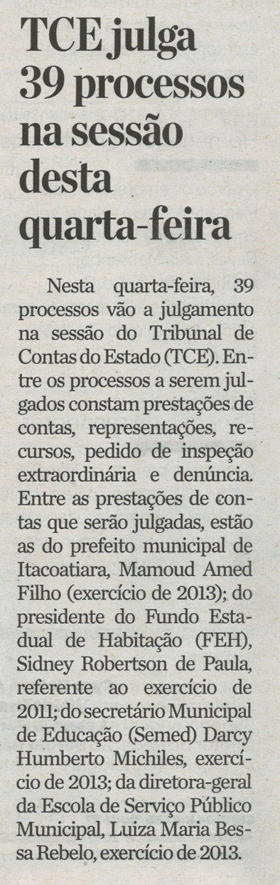 21/10/15 Diário do Amazonas TCE julga 39 processos na sessão desta quarta-feira