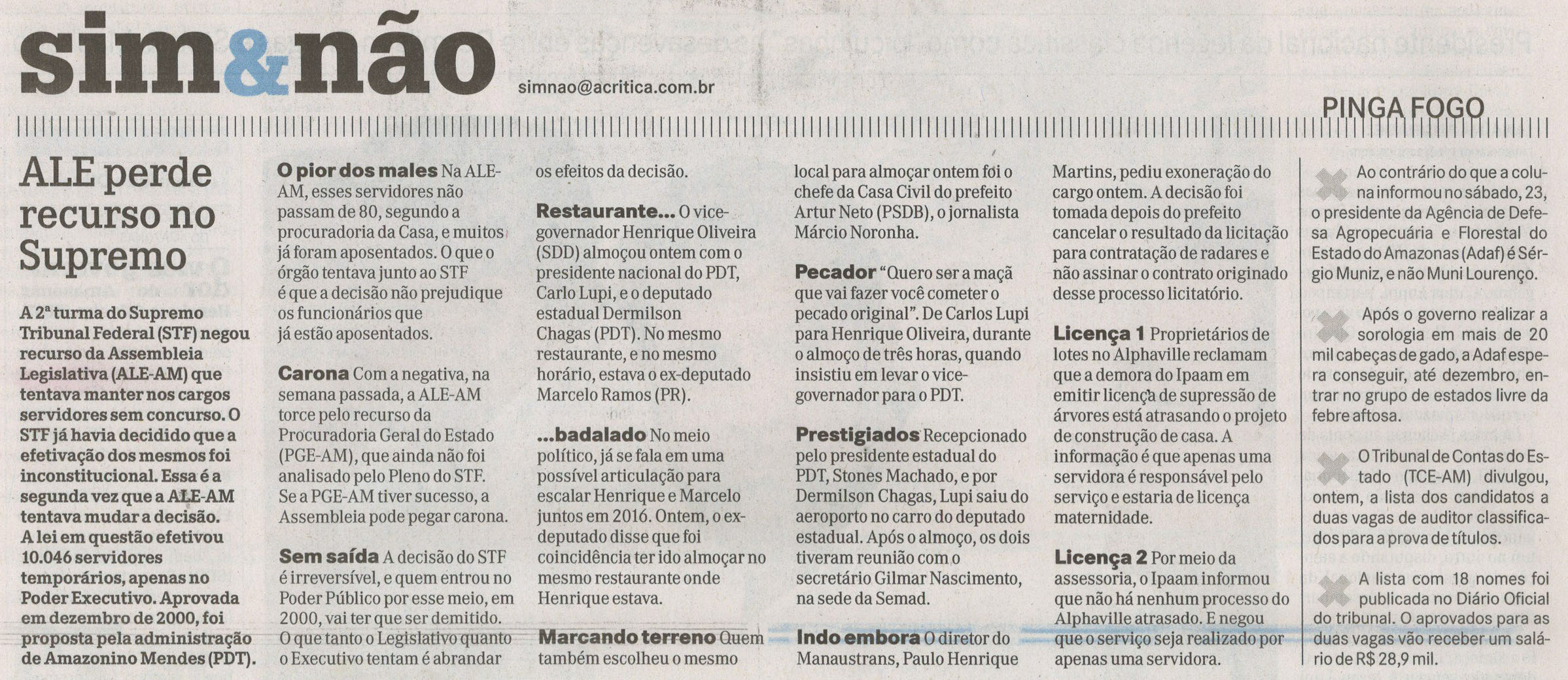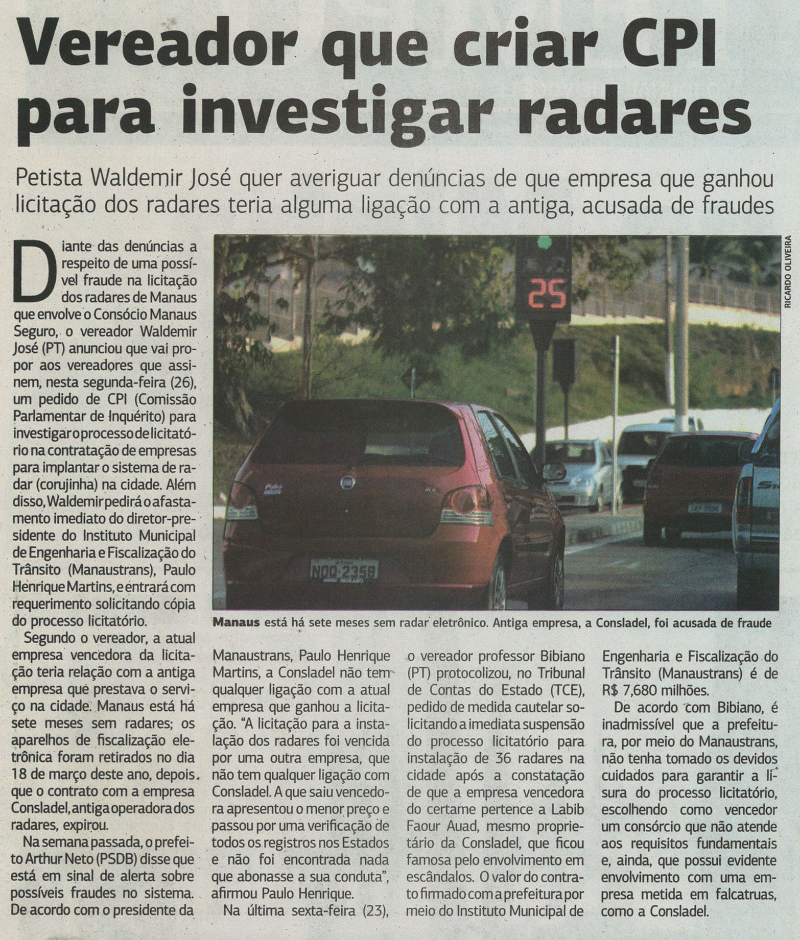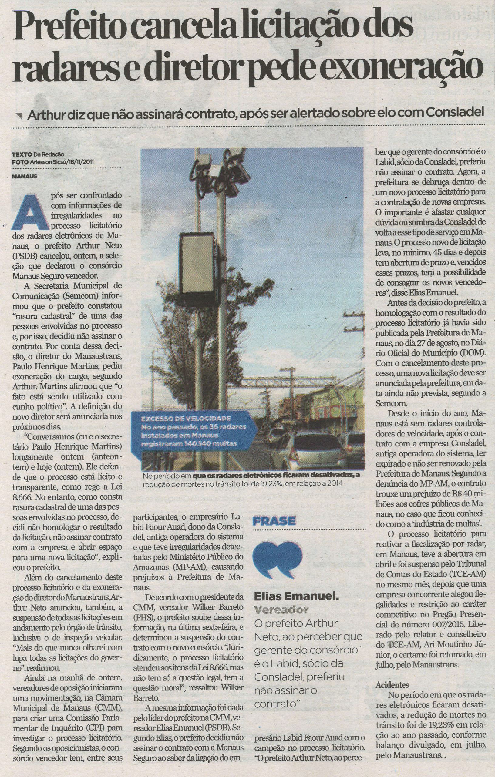 27/10/15 Diário do Amazonas Prefeito cancela licitação dos radares e diretor pede exoneração