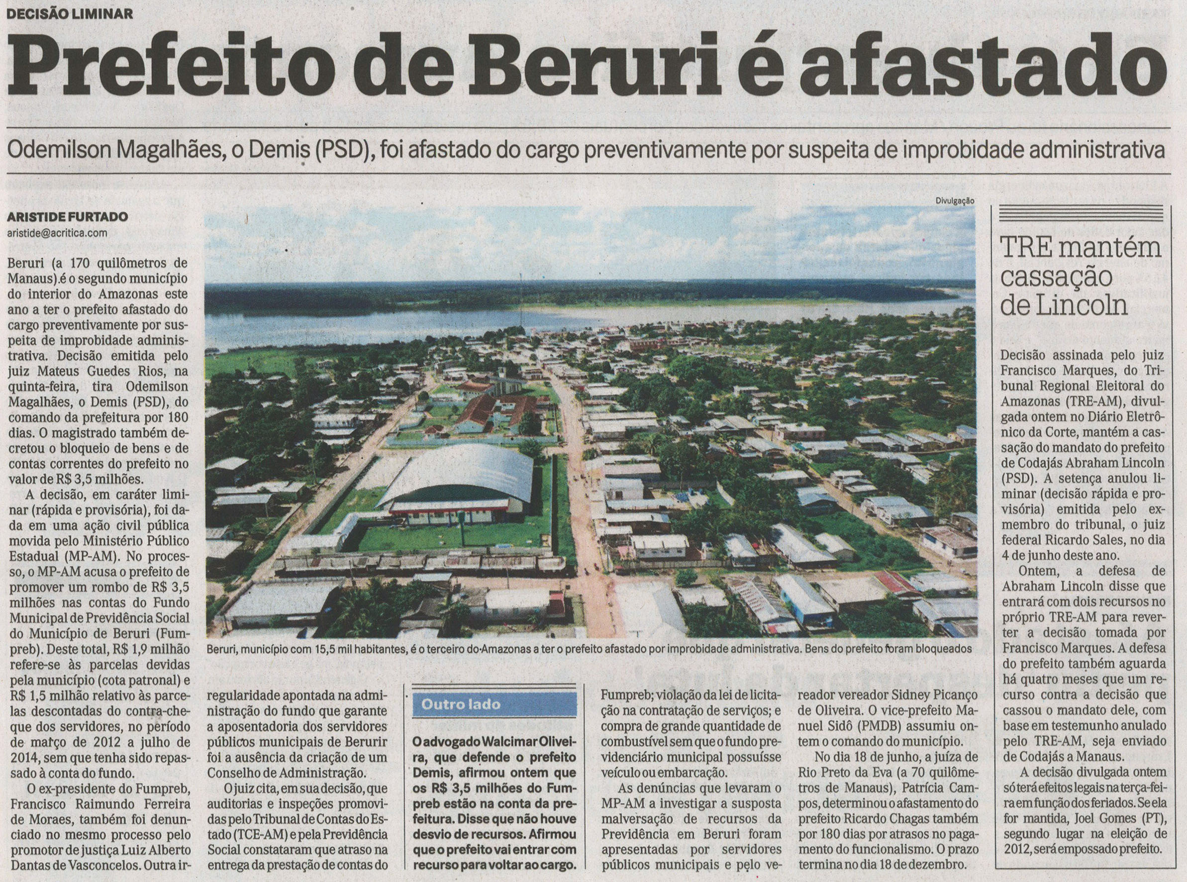 30/10/15 A Critica Prefeito de Beruri é afastado