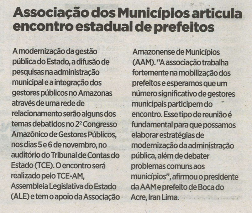 31/10/15 Diário do Amazonas Associação dos Municípios articula encontro estadual de prefeitos