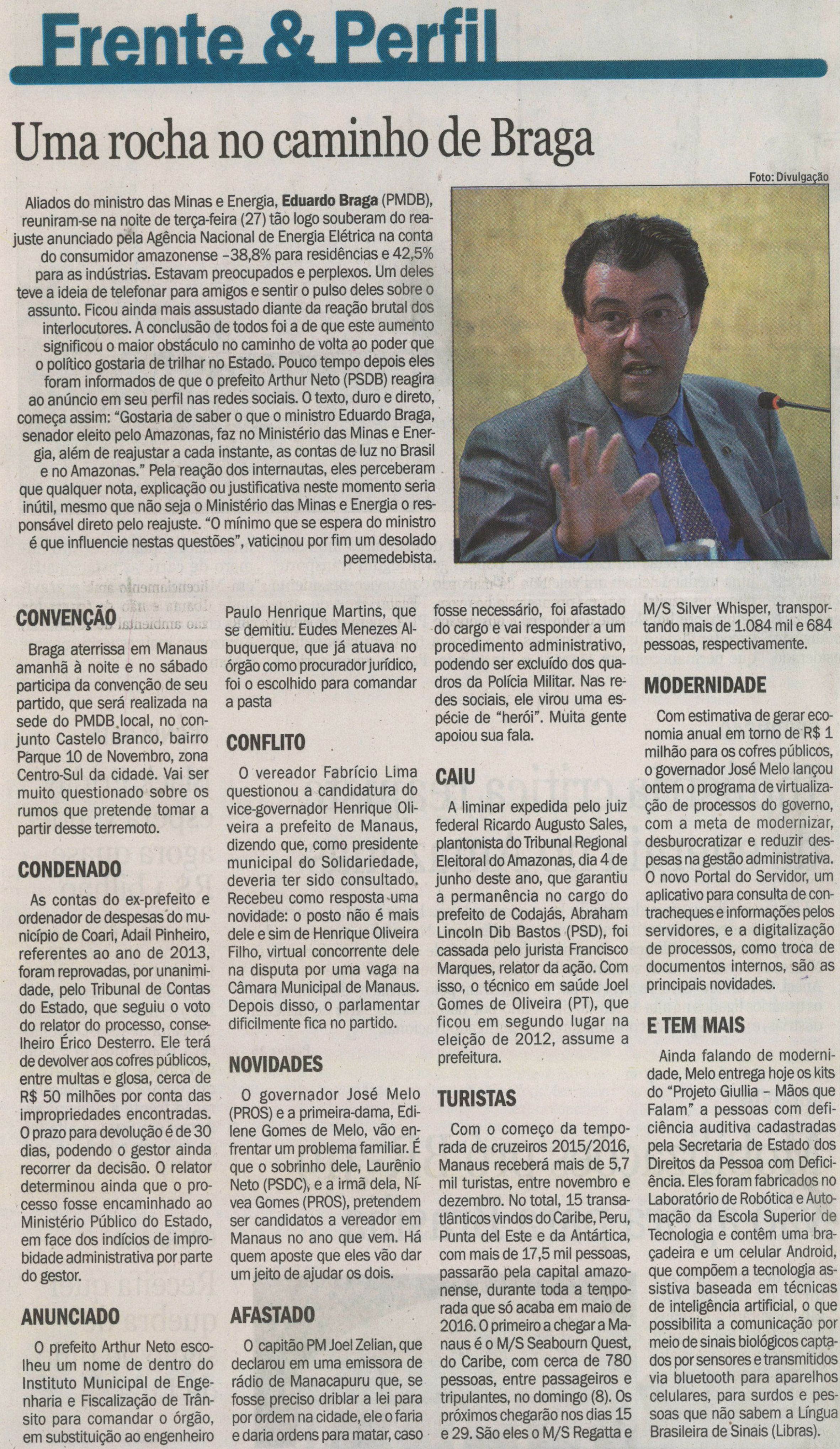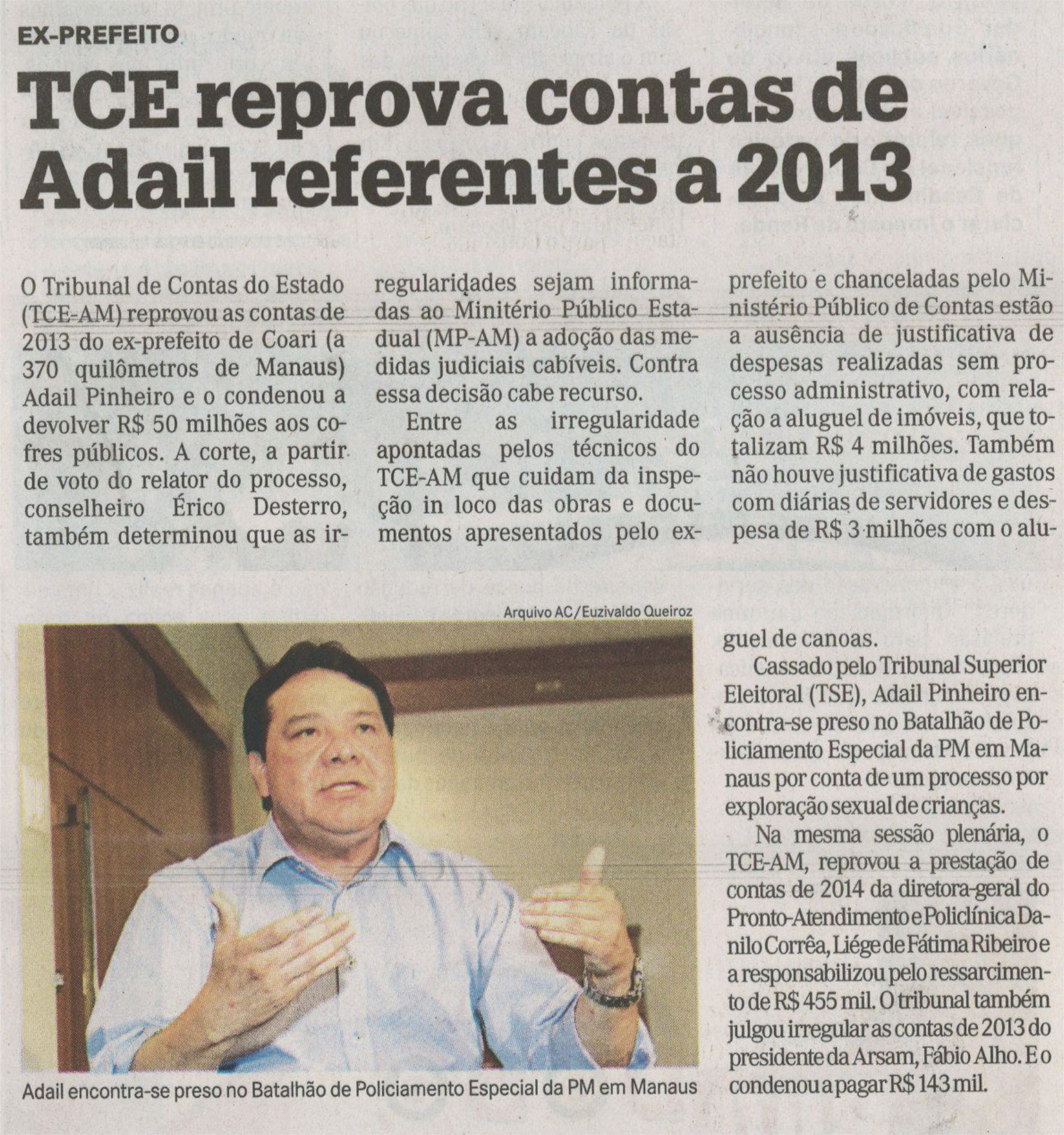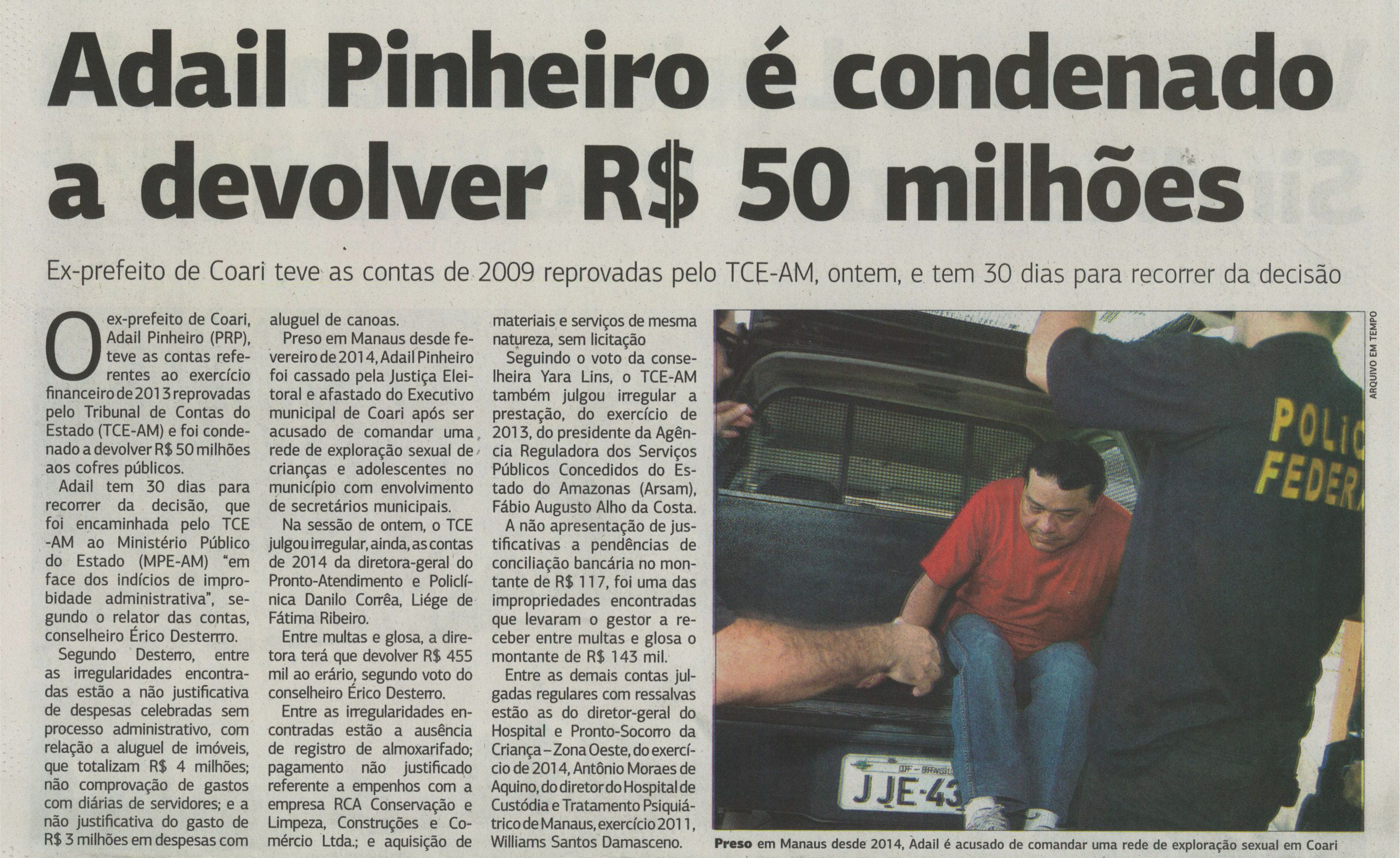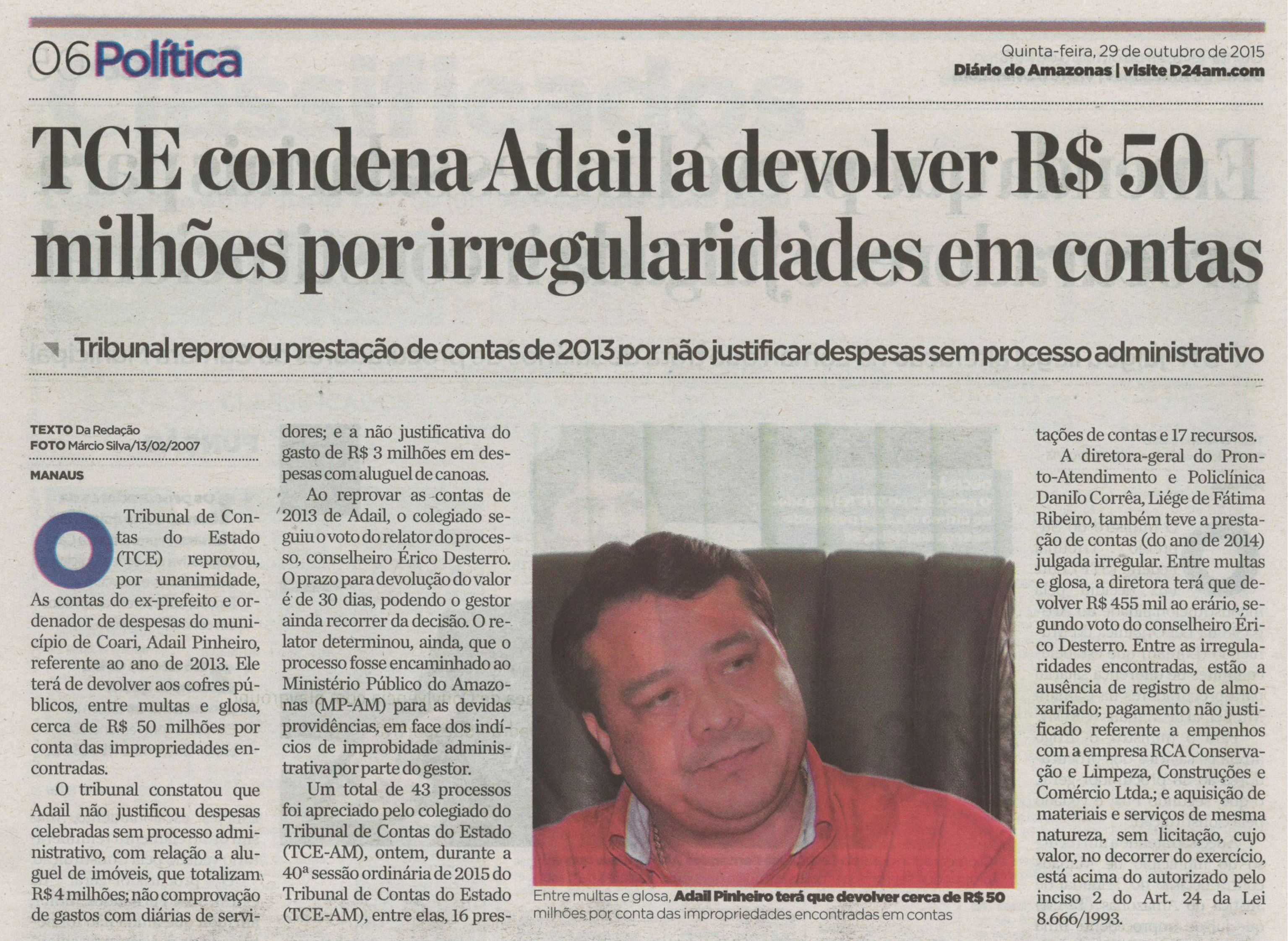 29/10/15 Diário do Amazonas TCE condena Adail a devolver R$ 50 milhões