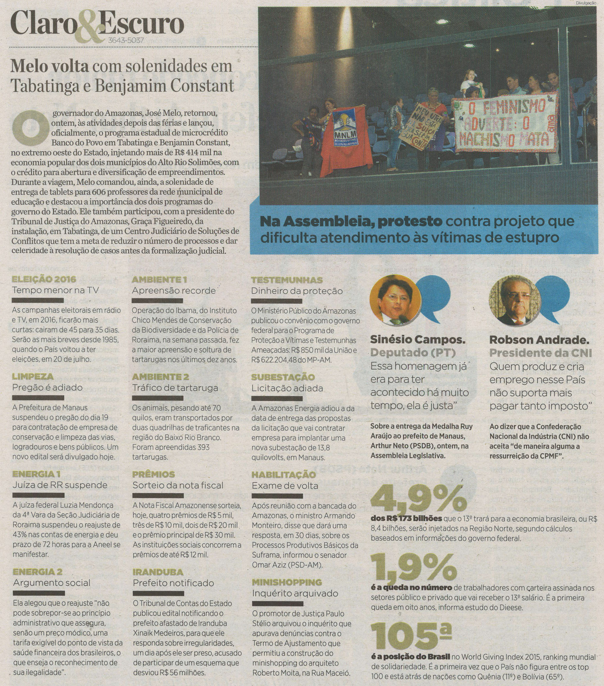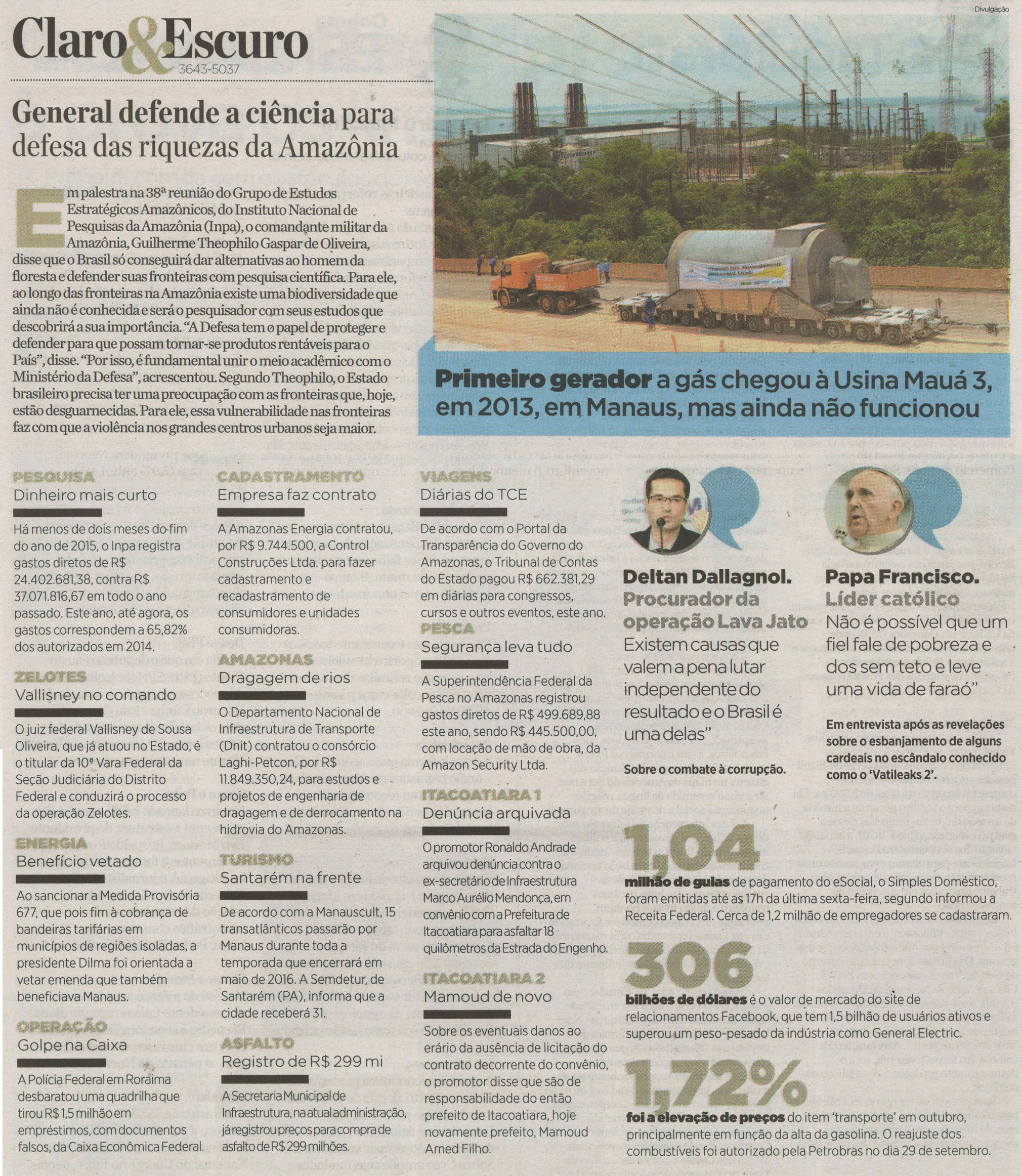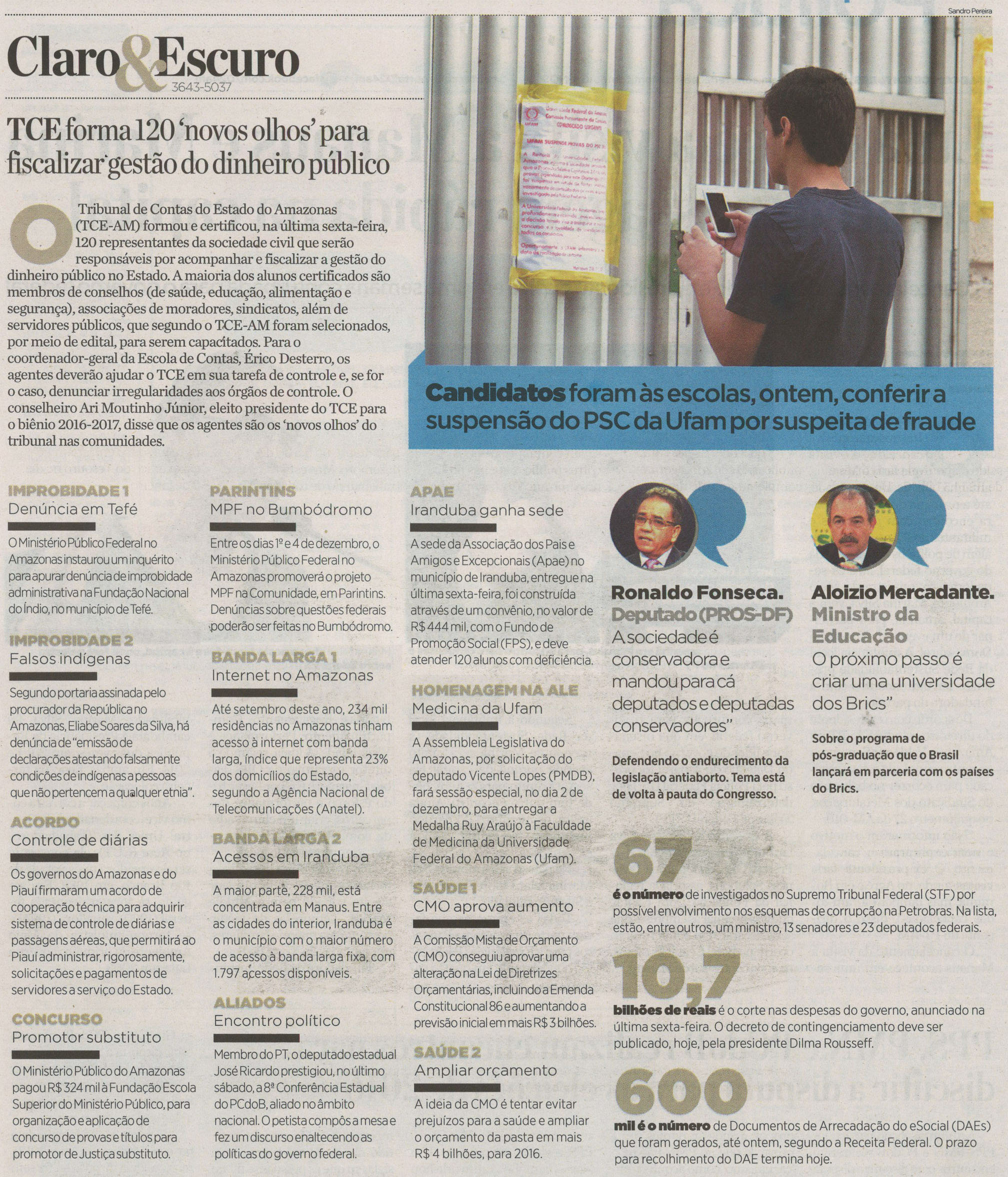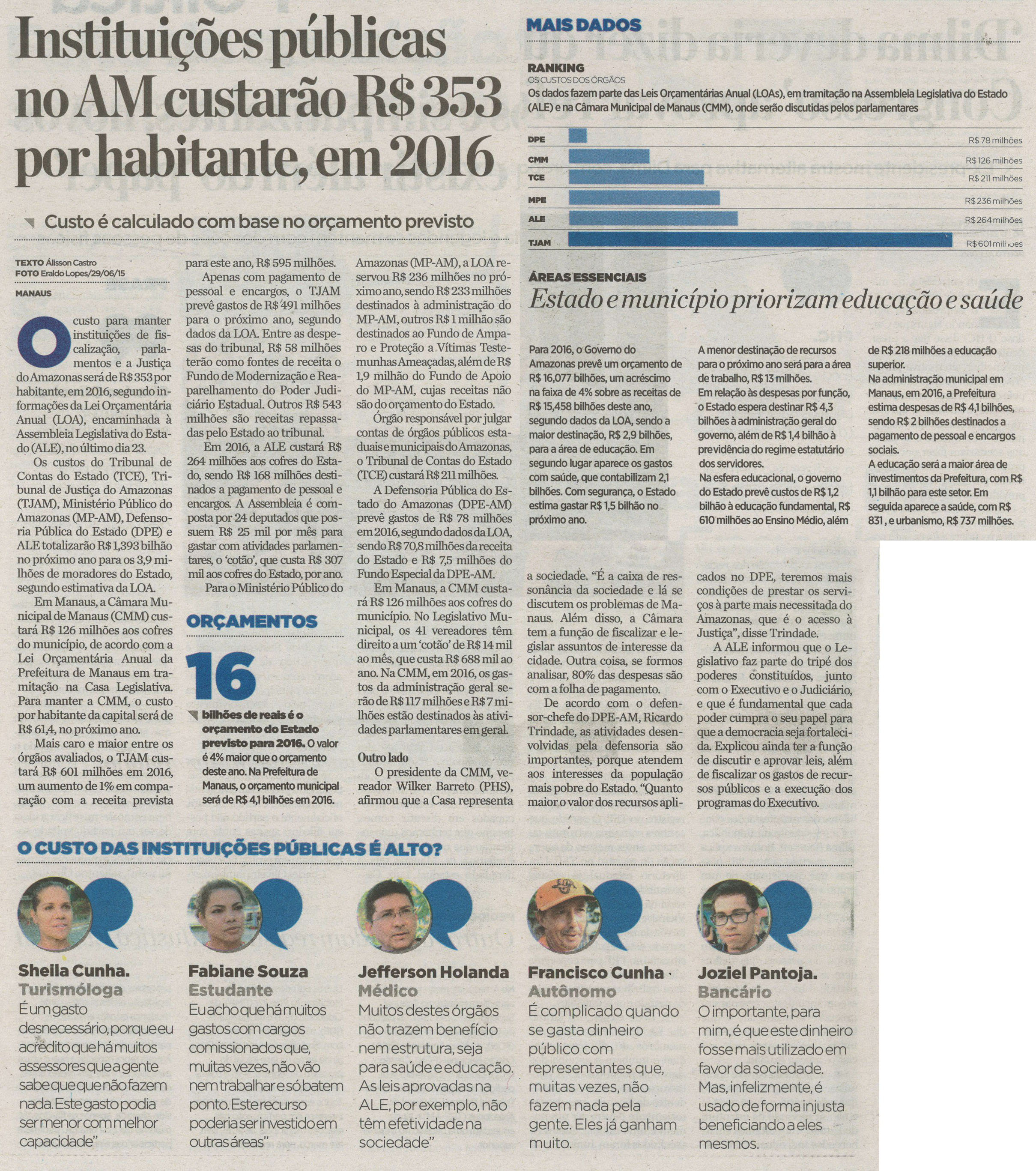 1°/11/15 Diário do Amazonas Instituições públicas no AM custarão R$ 353 por habitante, em 2016