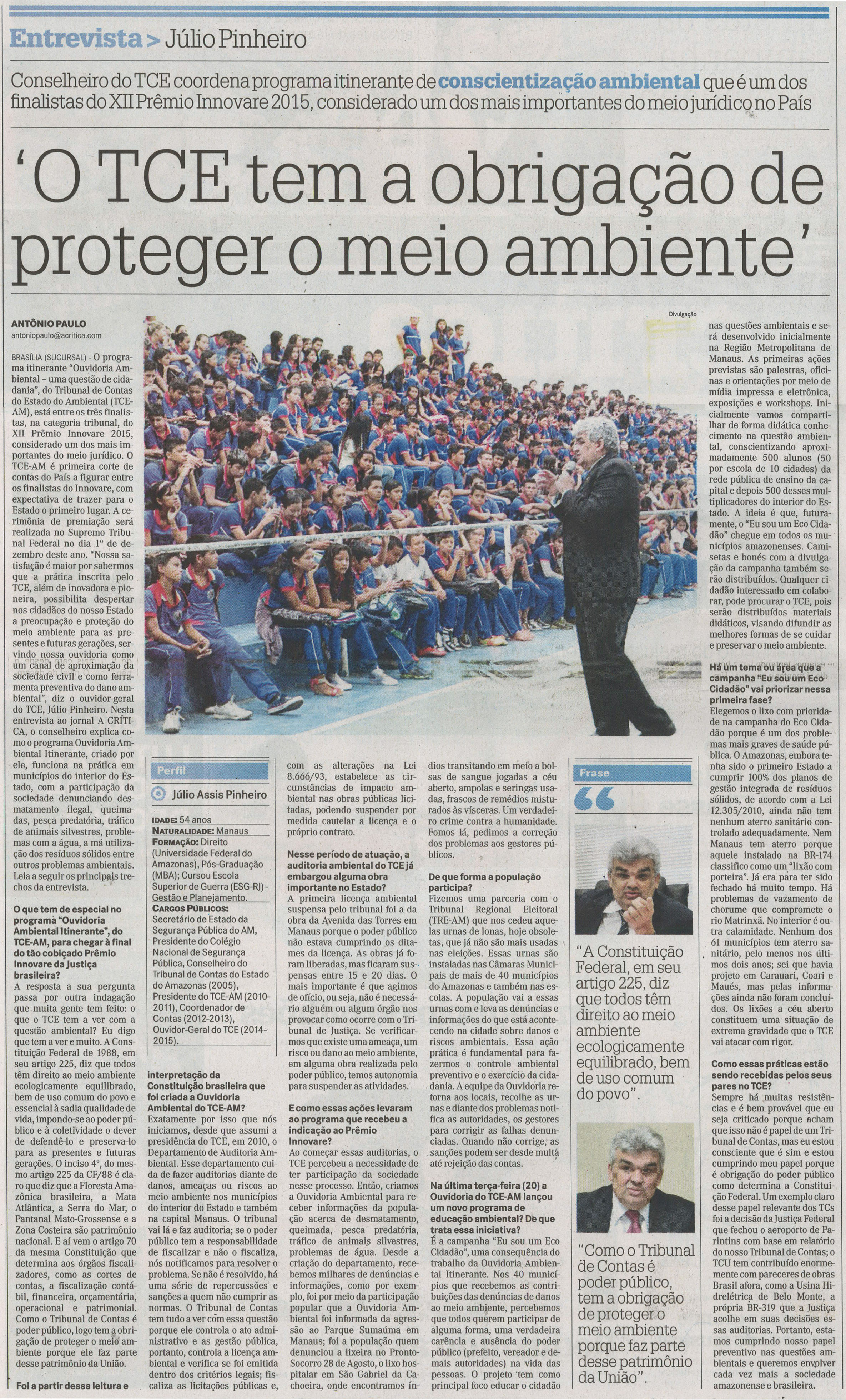 1°/11/15 A Crítica 'O TCE tem a obrigação de proteger o meio ambiente'