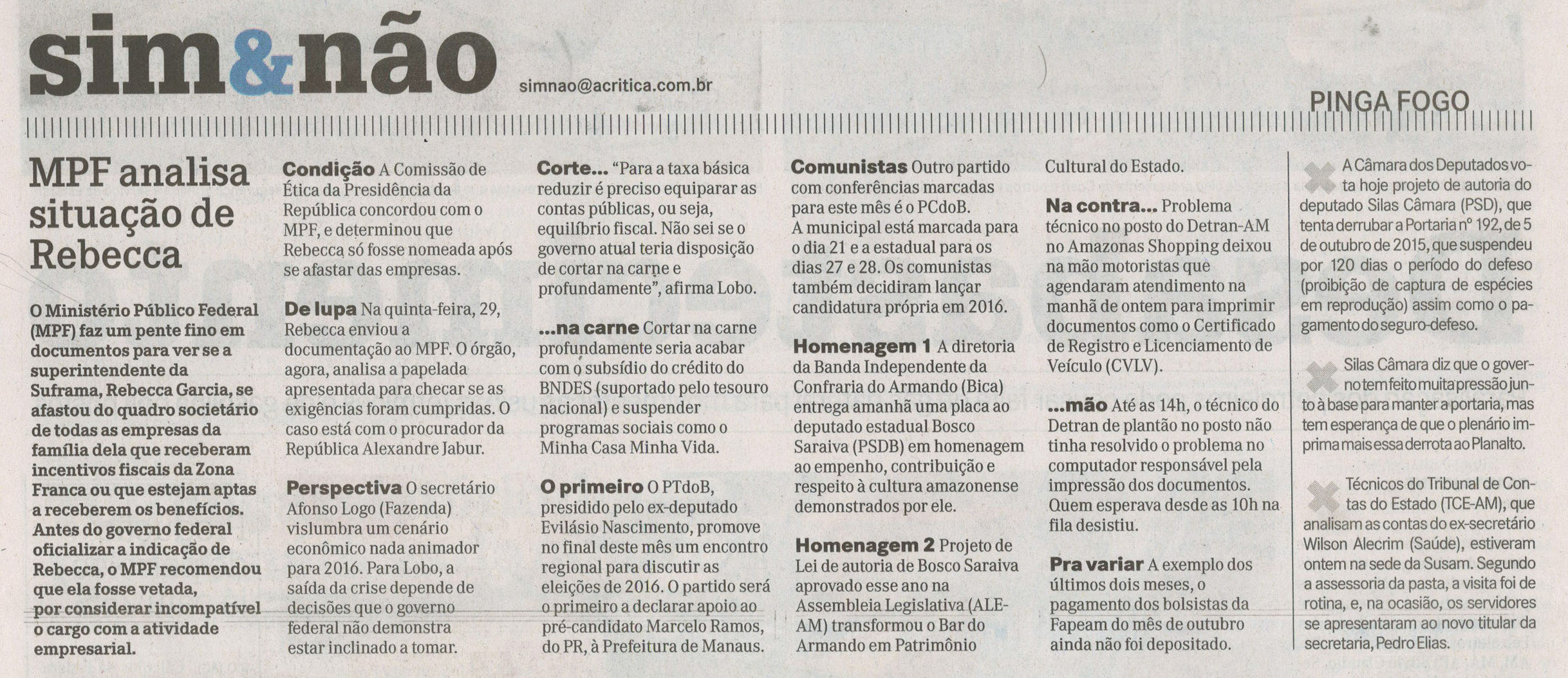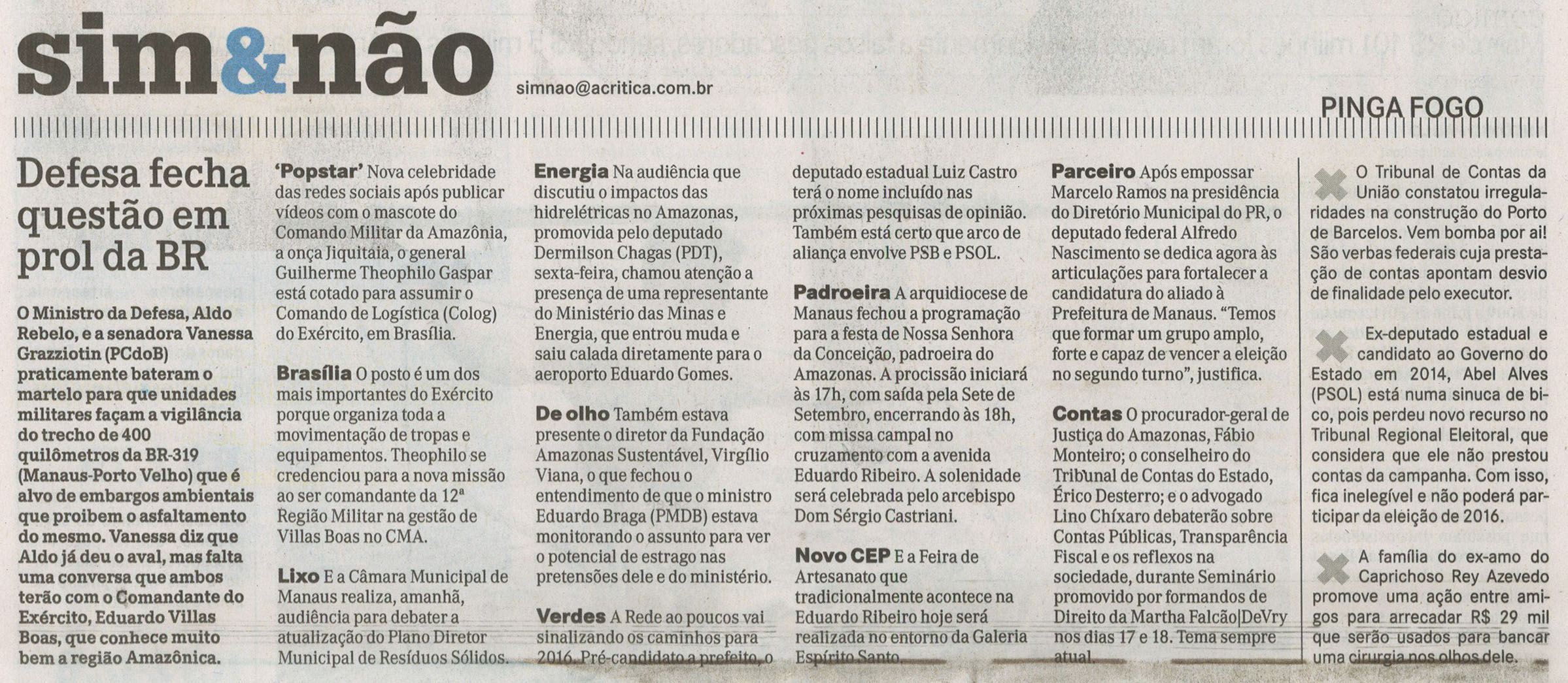 12/11/15 Amazonas em Tempo Coluna do Fernando Coelho
