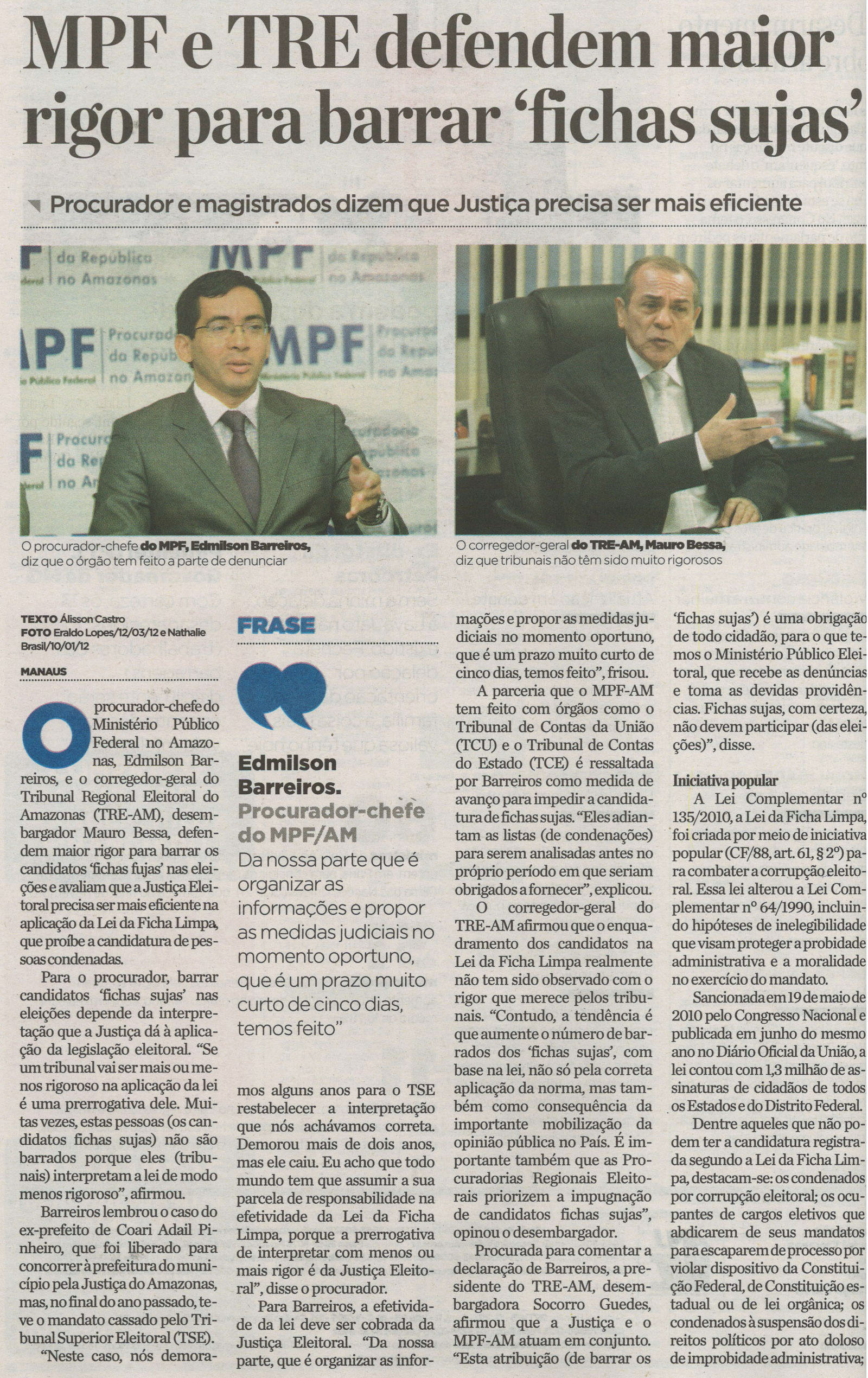 9/11/15 Diário do Amazonas MPF e TRE defendem maior rigor para barrar 'fichas sujas'