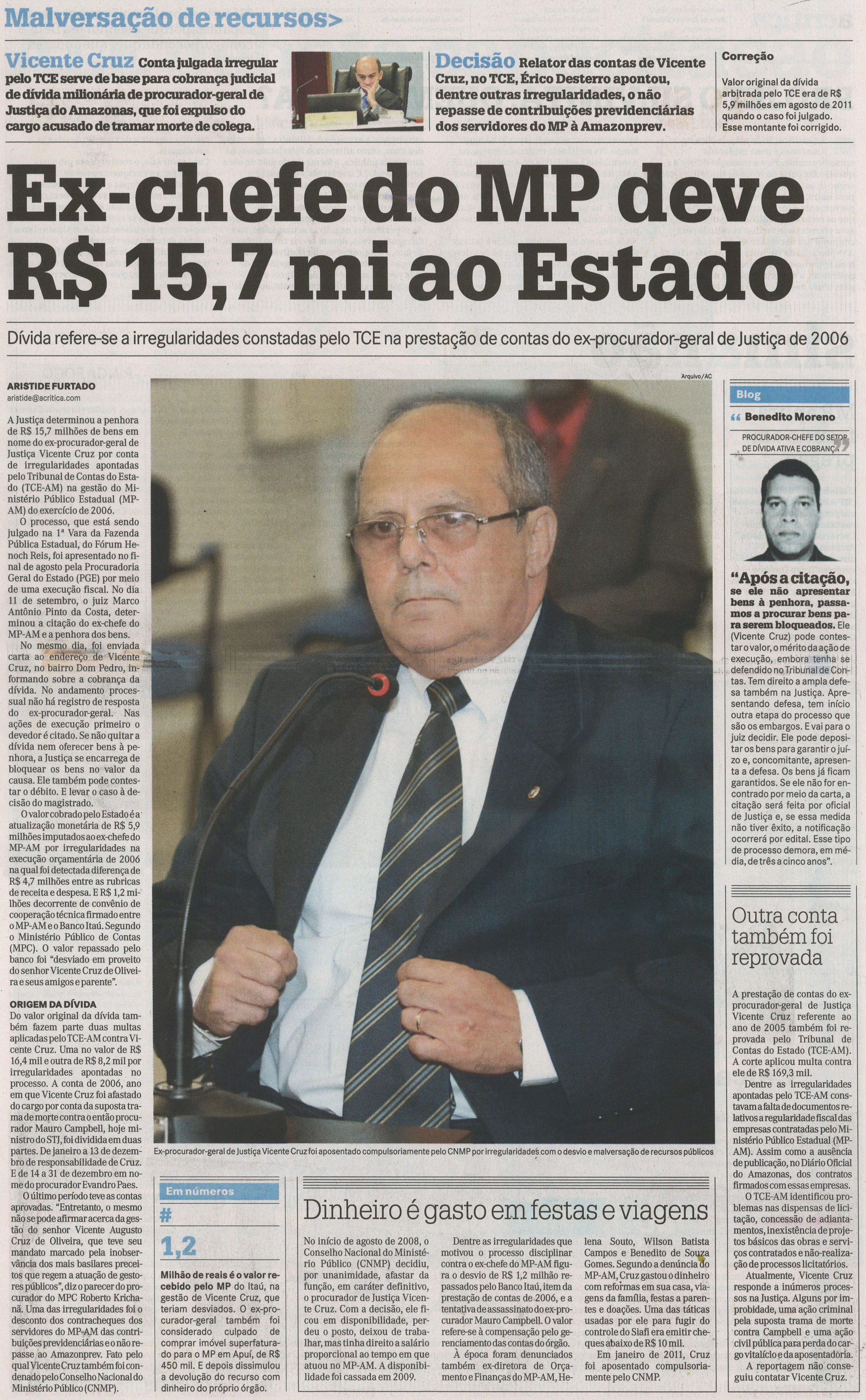 17/11/15 A Crítica Ex-chefe do MP deve R$ 15,7 mi ao Estado